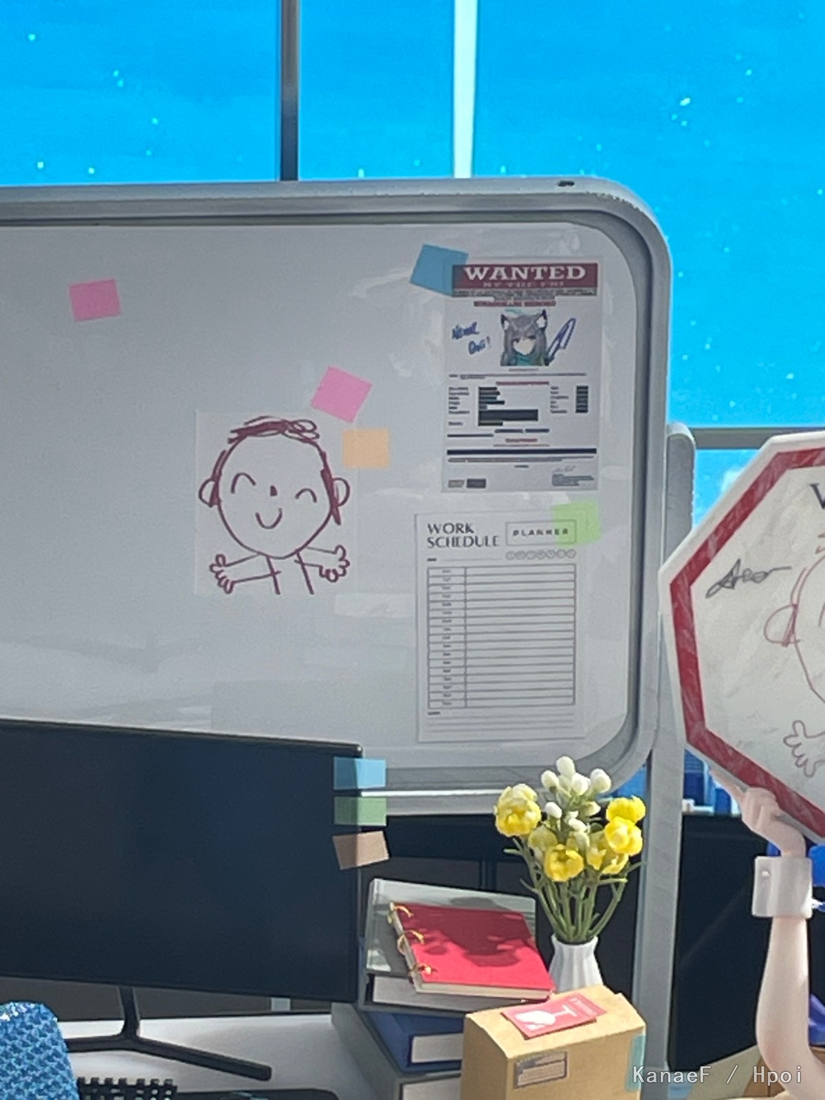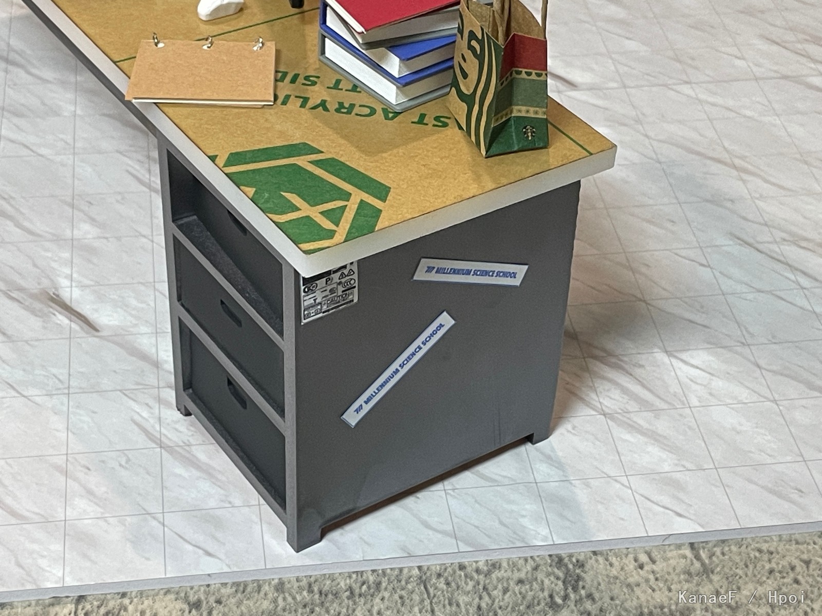 关于场景,是完整的计划了整个sensei办公室的内容,所以从桌子到还没被100kg压塌的办公椅,还有白板,都是严格按照游戏原图里的造型来设计的,最后3D打印+板材切割+上色。其他的话就是办公室小配件。