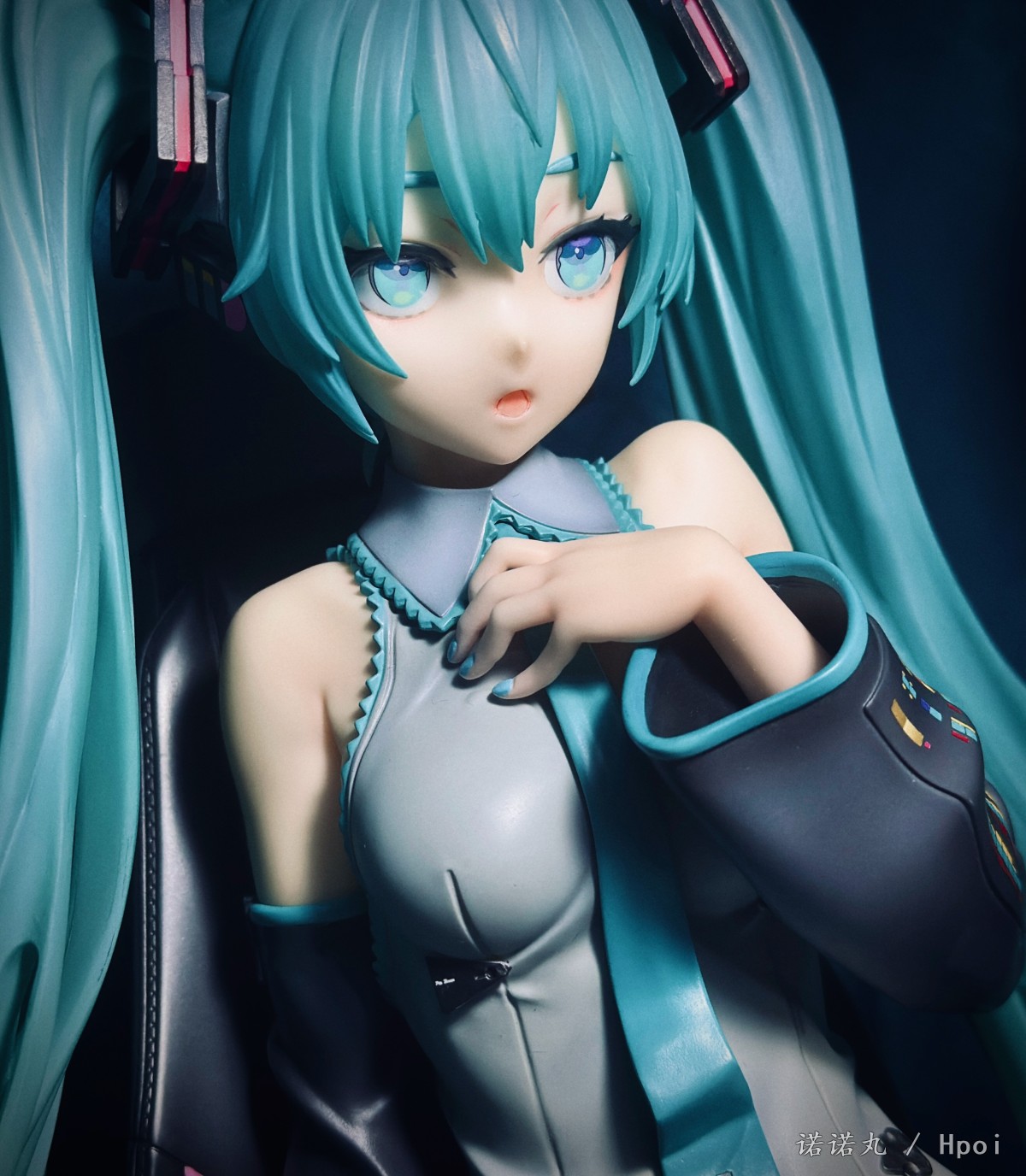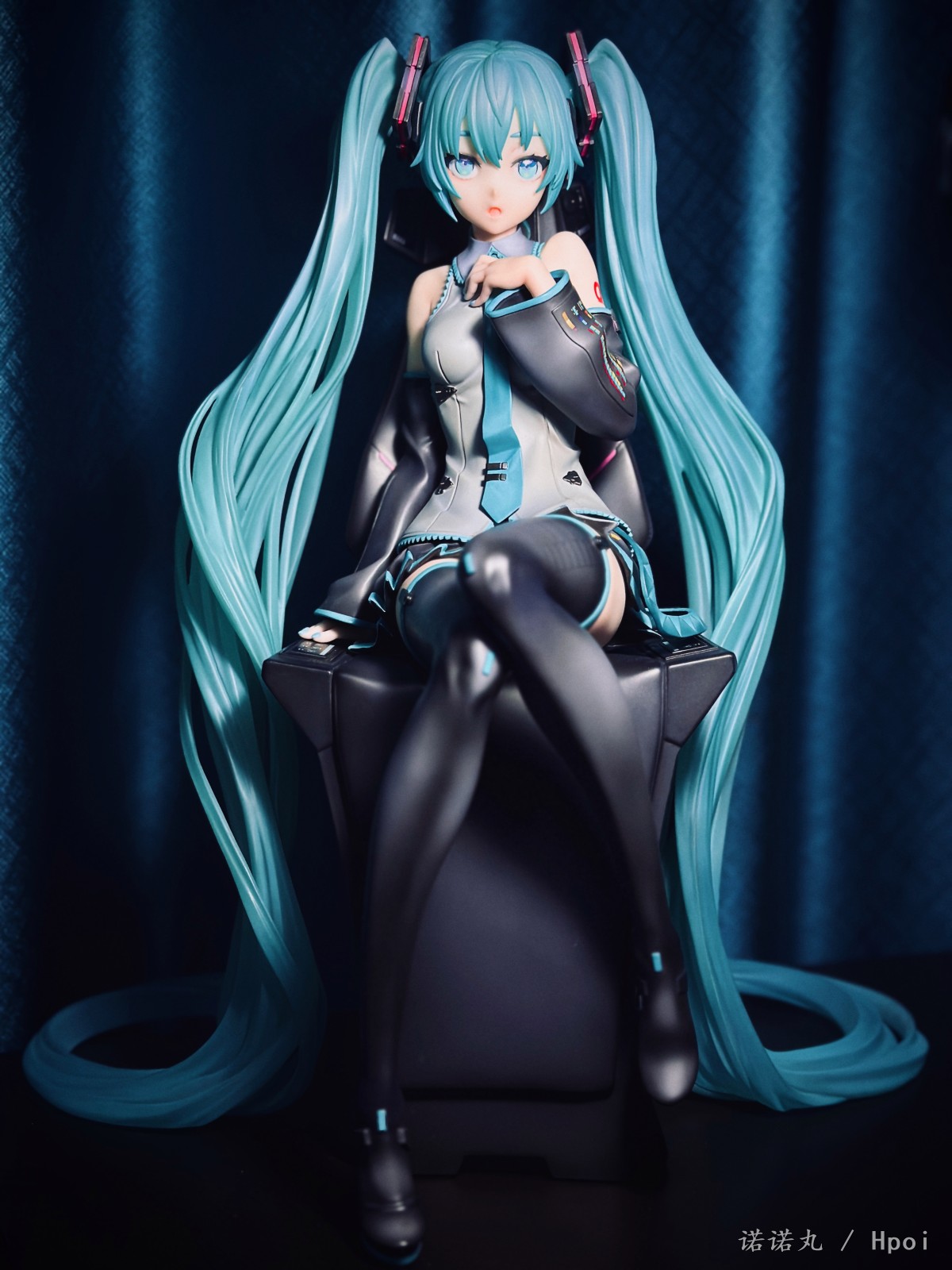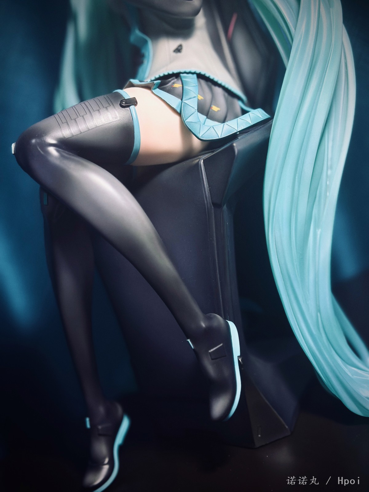 人生第一次买雕像,大概也是肉眼可见的最后一次买,而且抽到了普通版全球80体中的那独一无二的39号,非常幸运,可以说这是我必然可以也一定会带进自己坟墓里的东西。 如果说咬牙买了豪华版,说不定39就不是我了,而且在让我再加4K买一块石头做的假音响,我觉得真没必要,有这钱回头买一套配色相近的真喇叭放后面不好吗。 虽然椅子是宝丽石的,但绿毛本体应该还是轻飘飘的pvc,而且p1s以涂宝丽石雕像的方式涂pvc,在细节上并不考究,肌肤也完全没有手感漆,看起来偏黄。 不过毕竟是雕像厂,型可以说特别好,一双极为漂亮切诱人的美腿,加上恰到好处的姿态与神态,虽然产品介绍说是“成熟的大人的Miku的美感”,但其实更多的还是给人一种楚楚可人,想要犯罪的极具诱惑力的清纯与性感相融合的气质,neco在搞不色但很色的风格上确实很有造诣。 虽然衣服加了一些neco风格的东西【其实说的就是意义不明的三角配饰】,但确实还是难得的公式服产品,希望大家都能感受到Miku公式服最原汁原味的美,在未来推出更多好看的公式服Miku。