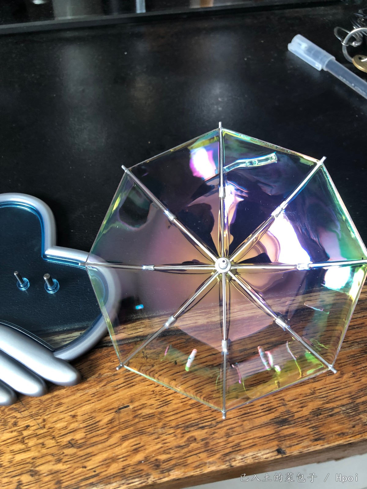 透明+镭射涂装雨伞,五光十色。伞柄不是太稳,转动时会来回抖动