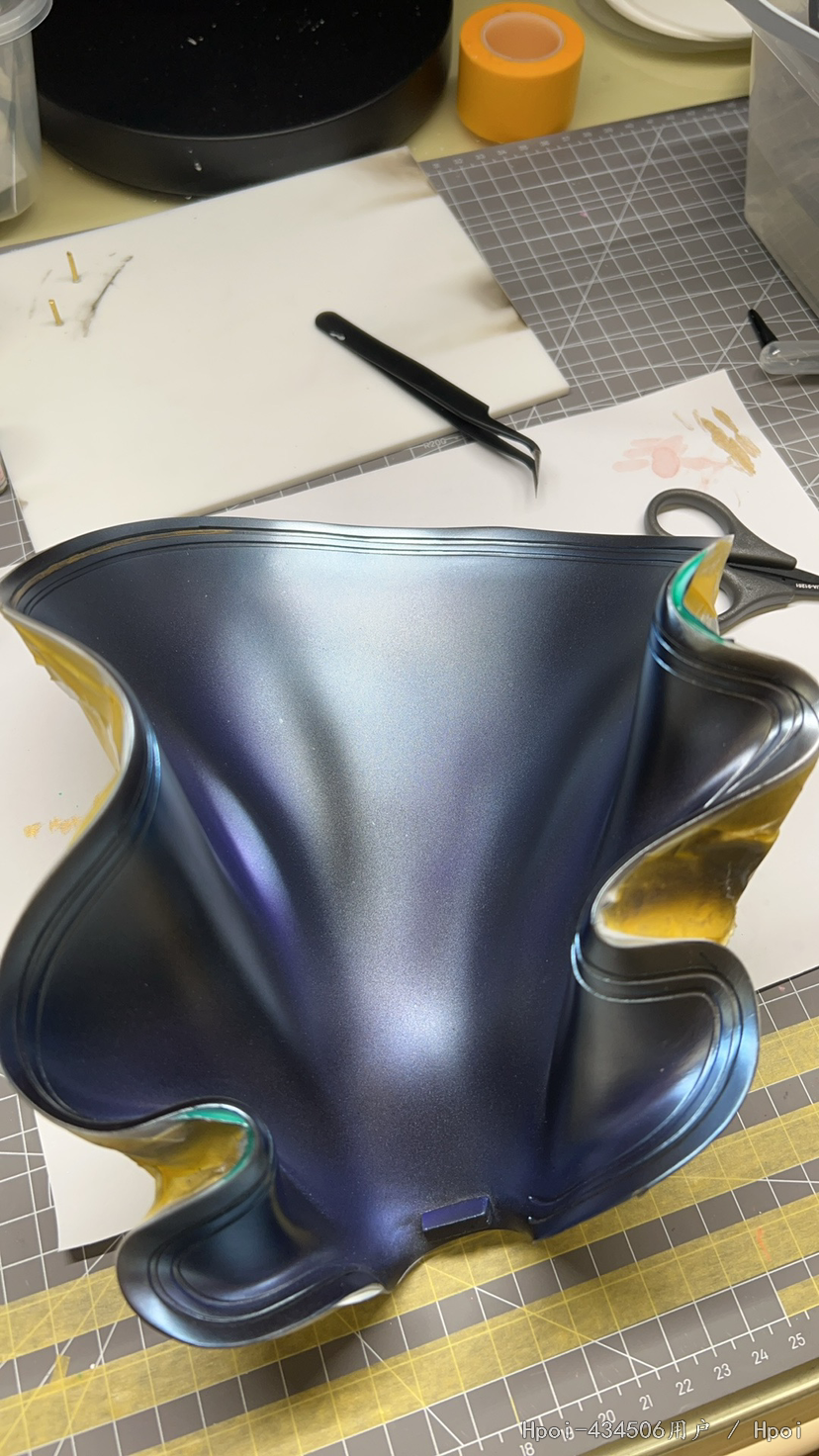 新手,模年前就修好了,拖延症拖到现在才做完😂。裙子颜色还喷深了。这个大裙摆真是要了我的老命,应该先喷金边再遮盖喷蓝色,结果步骤反了多做了不少遮盖,属实给我盖麻了。