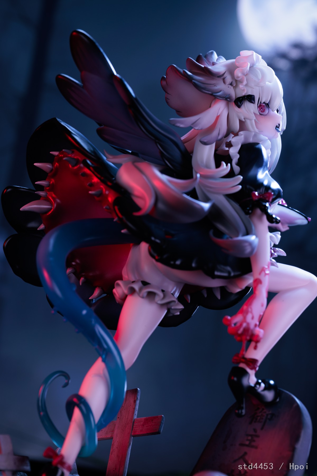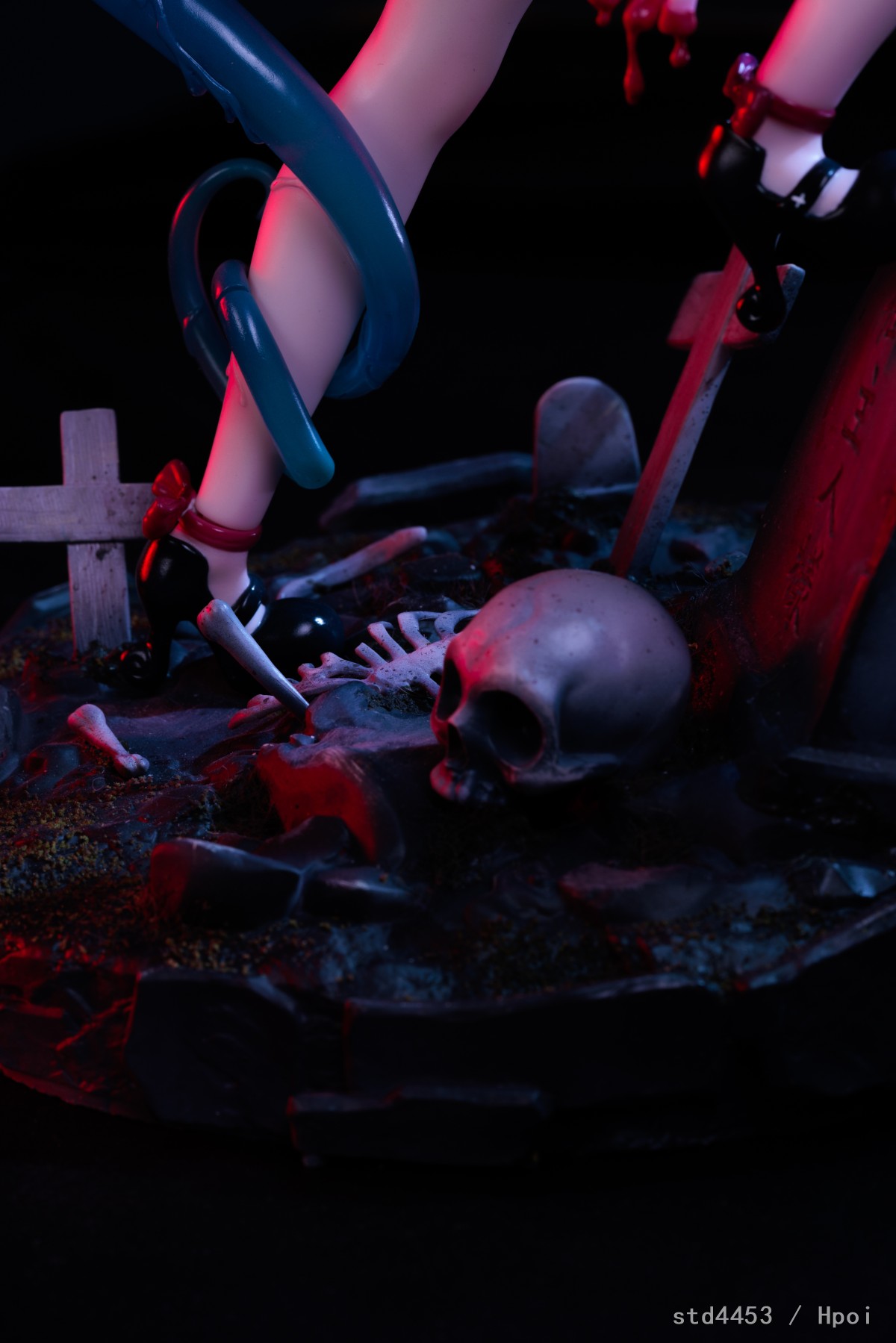 整体上想要拍出一种恐怖与可爱并存的感觉,于是掏出了经典的电视进行屏摄,并通过打光制造了一点鲜血淋漓的效果,最后加入了亿点小特效。