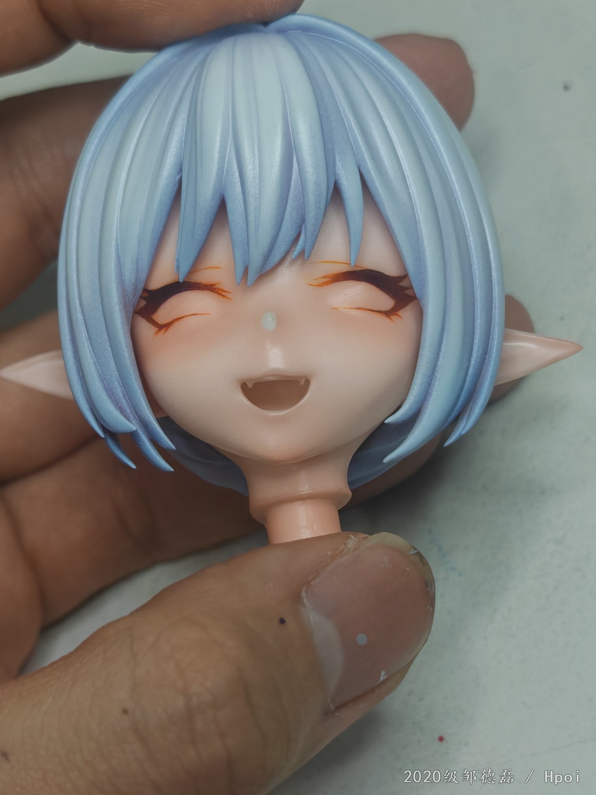 对对,我知道,这个脸肯定要从新画的,水性漆没干,边缘糊了