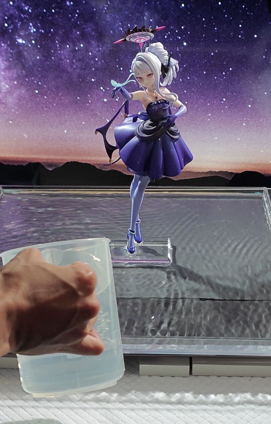 水可是好东西,可以完美反射背景的紫色星空同时不会像是镜面底板那样吸引大量的灰尘