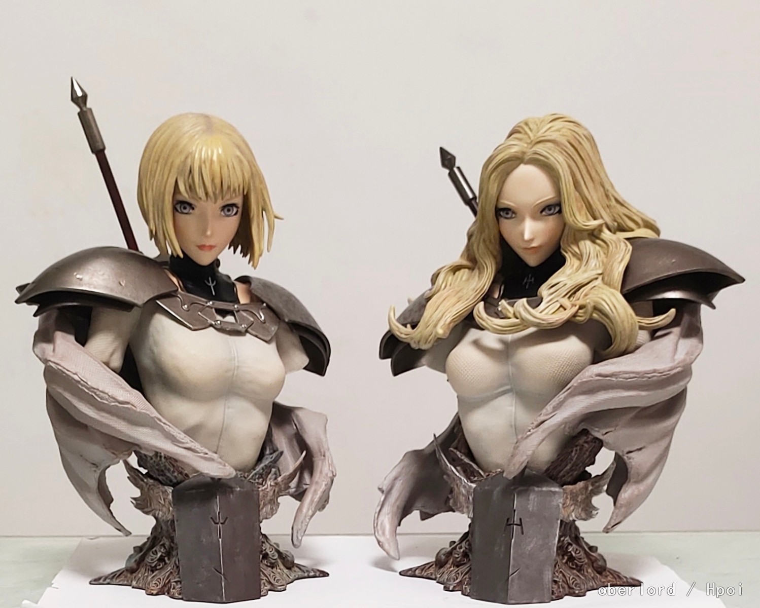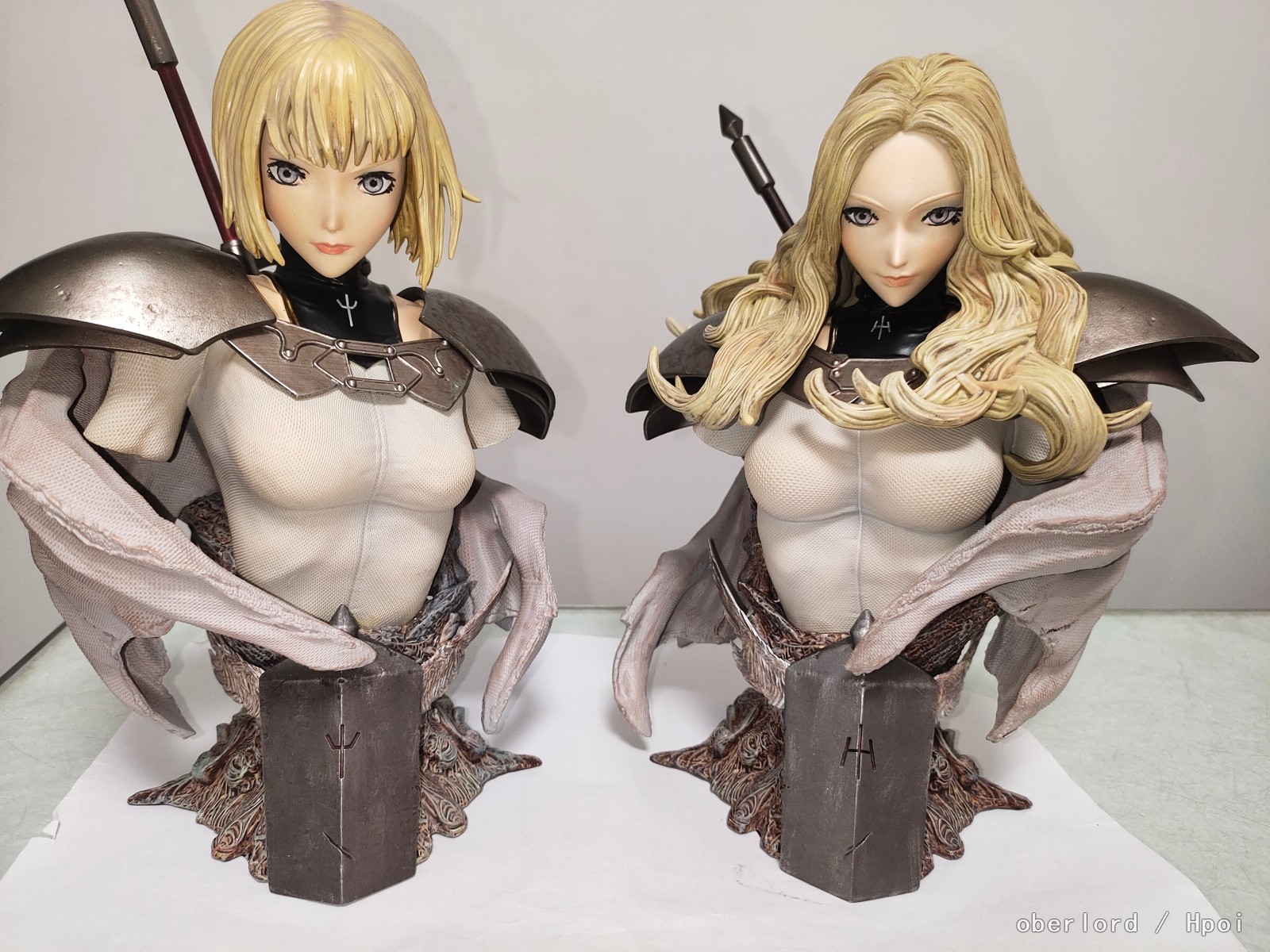 如果你不是很喜欢大剑最好不要买,实物涂装细节是有的,但是这个大小和价不是很值当。比想象中小很多,粗看大概就25*20*10的规格,做工方面头雕差强人意,盔甲做旧还可以,底座的质感很好。猎魔战纪这类风格稍微救了一下头雕可以给6分,有的问题当做旧就行了,如果是美少女番这种头发和脸问题就挺大的只能3,4分。摆起来效果还可以,宝丽石材质的东西都是实物比照片好,喜欢大剑或者这个风格的话这个可以买,石油厂另一个大雕挺好的,涂装要细很多。整体一对6.5分吧,要是玩雕像能有个7,8分,这个正好是低头的1/4放在上层在三维50cm左右的旁边当个点缀挺好。