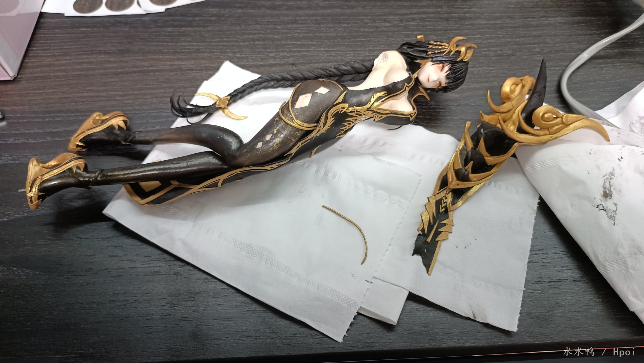 四年多前找朋友做的超轻粘土吧,这个月回家看到发霉了,一个月前看完全一点迹象都没有,可能是暴雨多了吧,同柜子的手办和雕像都没出什么问题,超轻粘土材质还是太短寿了啊,即使正常5-8年也就寄了,何况是在广东呢,没办法了,直接加水上刷子看看还能不能救一救吧,毕竟碎碎平安总比病原体强