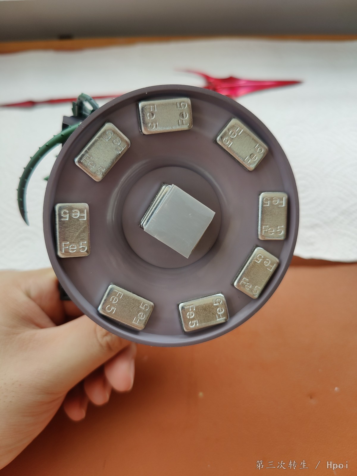 加盖太麻烦,垫了块胶板来辅助承重