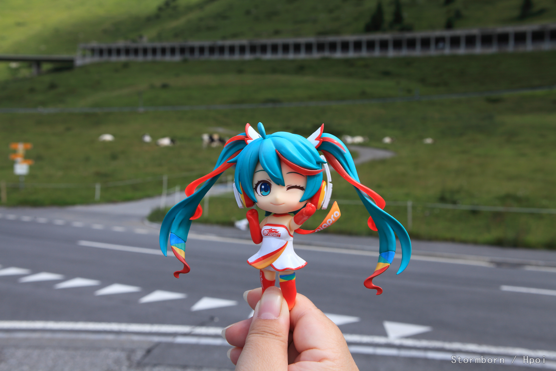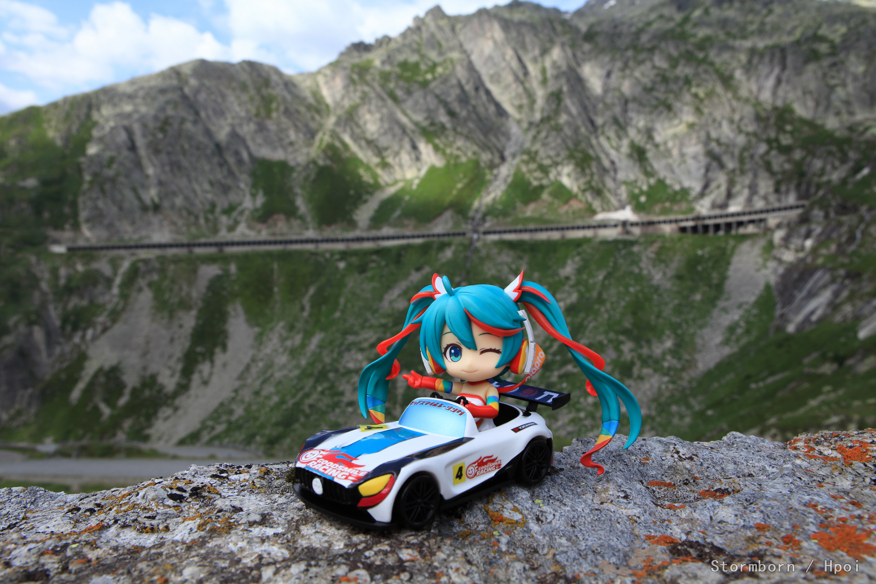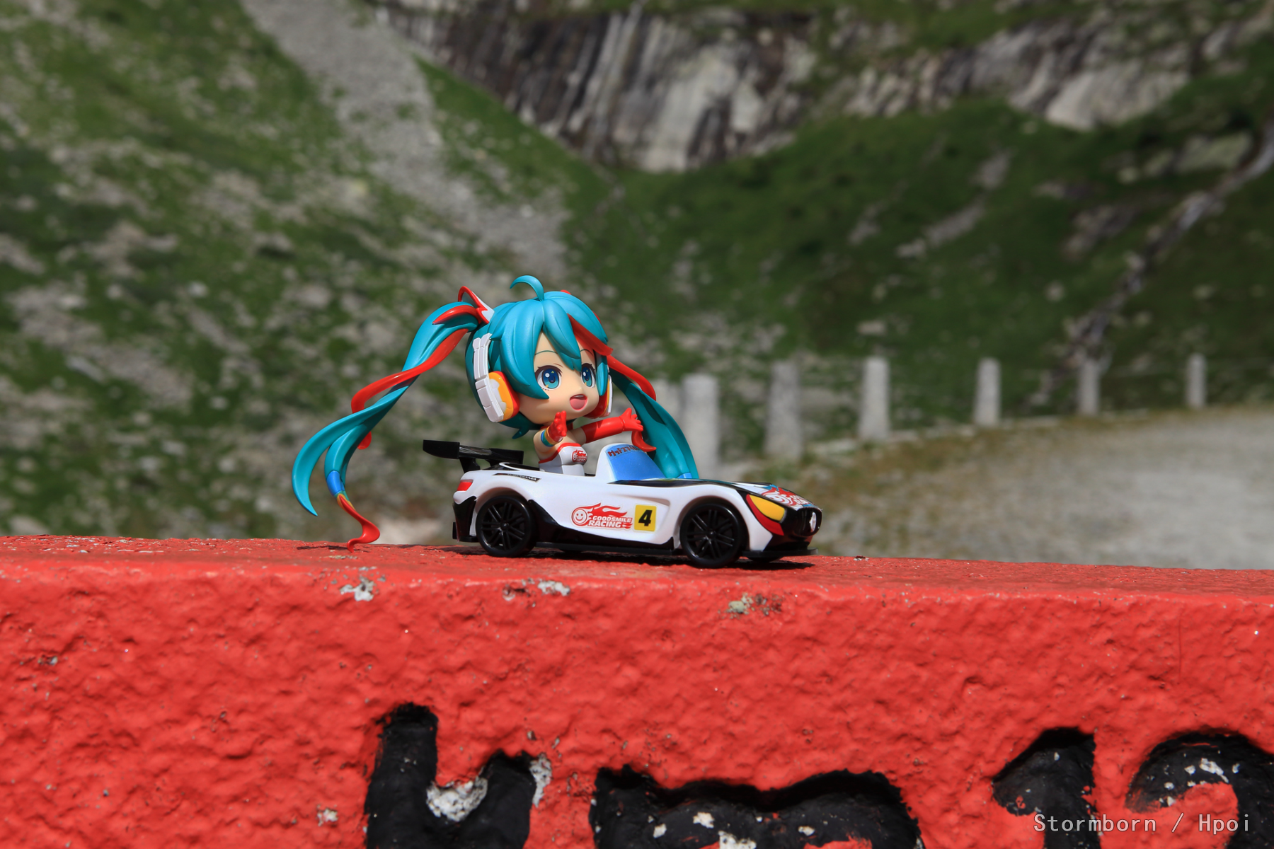 想在这里拍一张人扛着旗站在车旁边,没找着地方放。