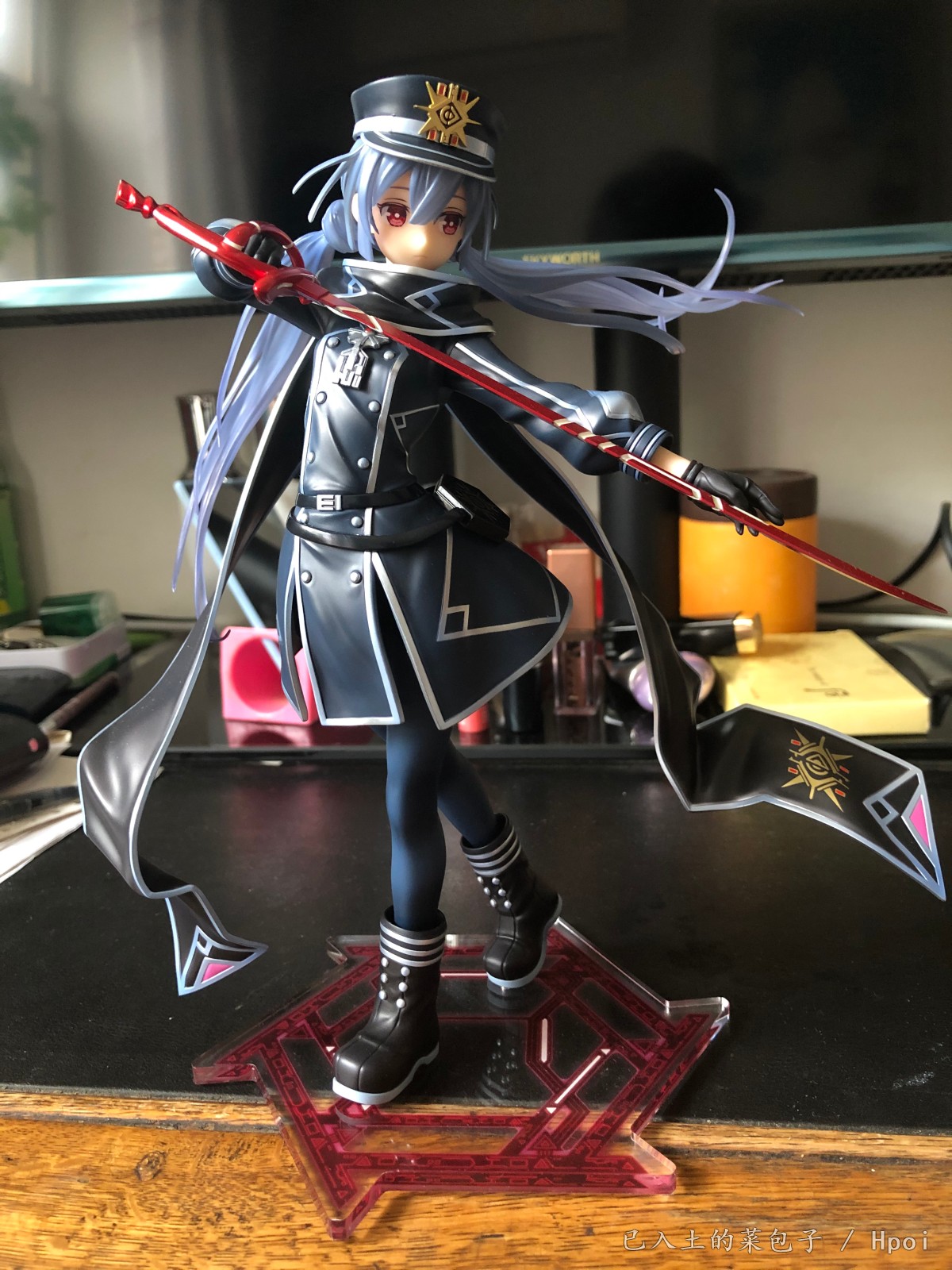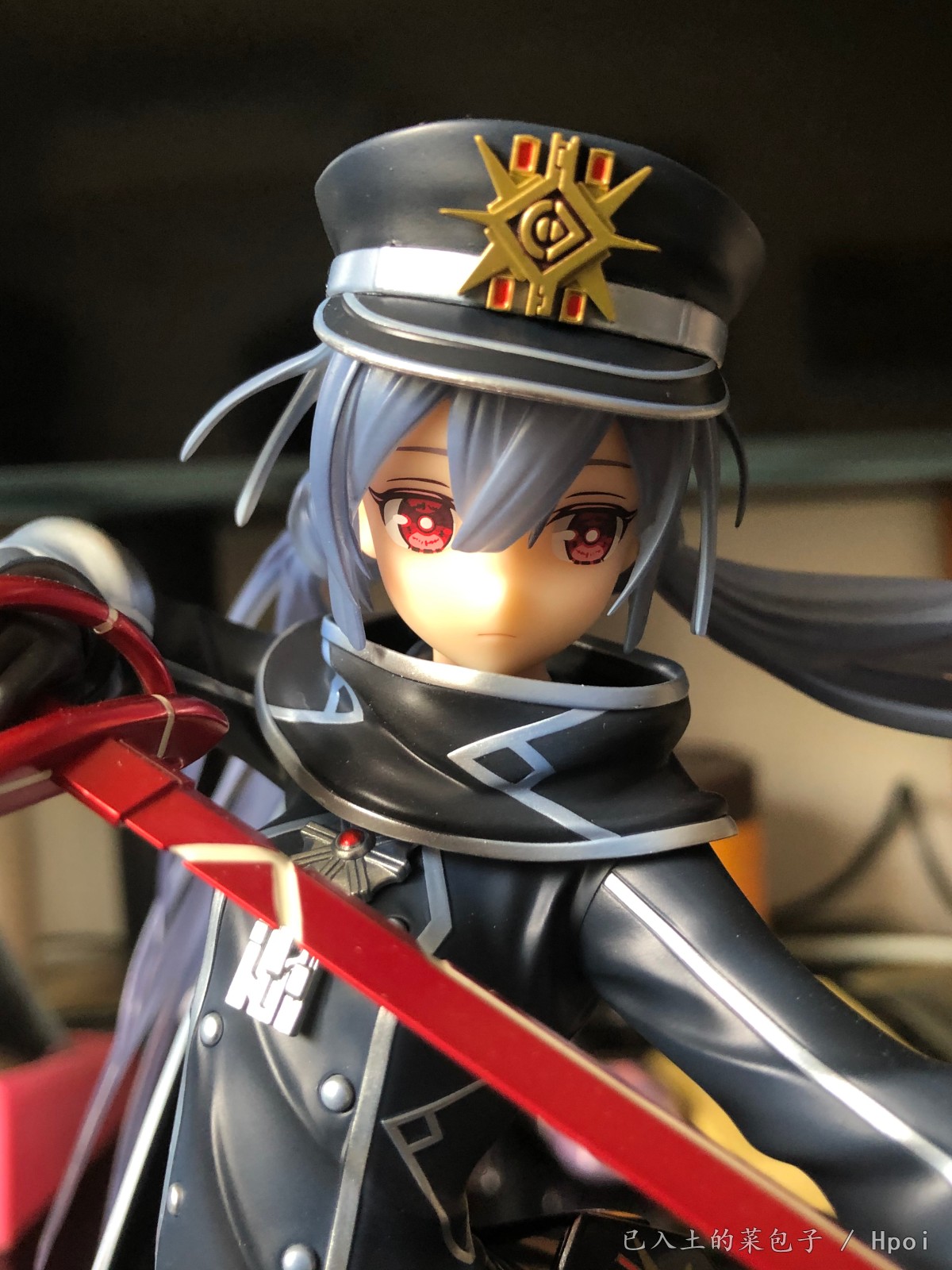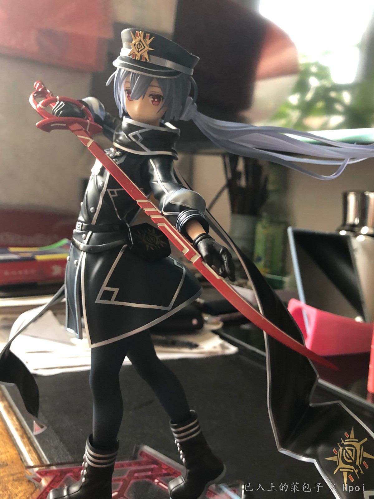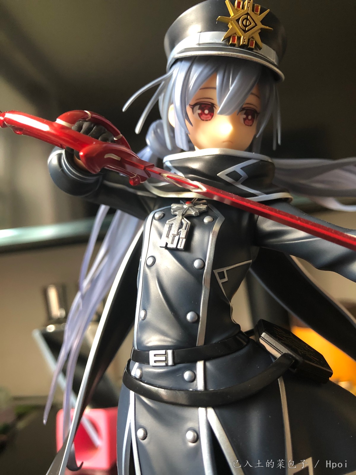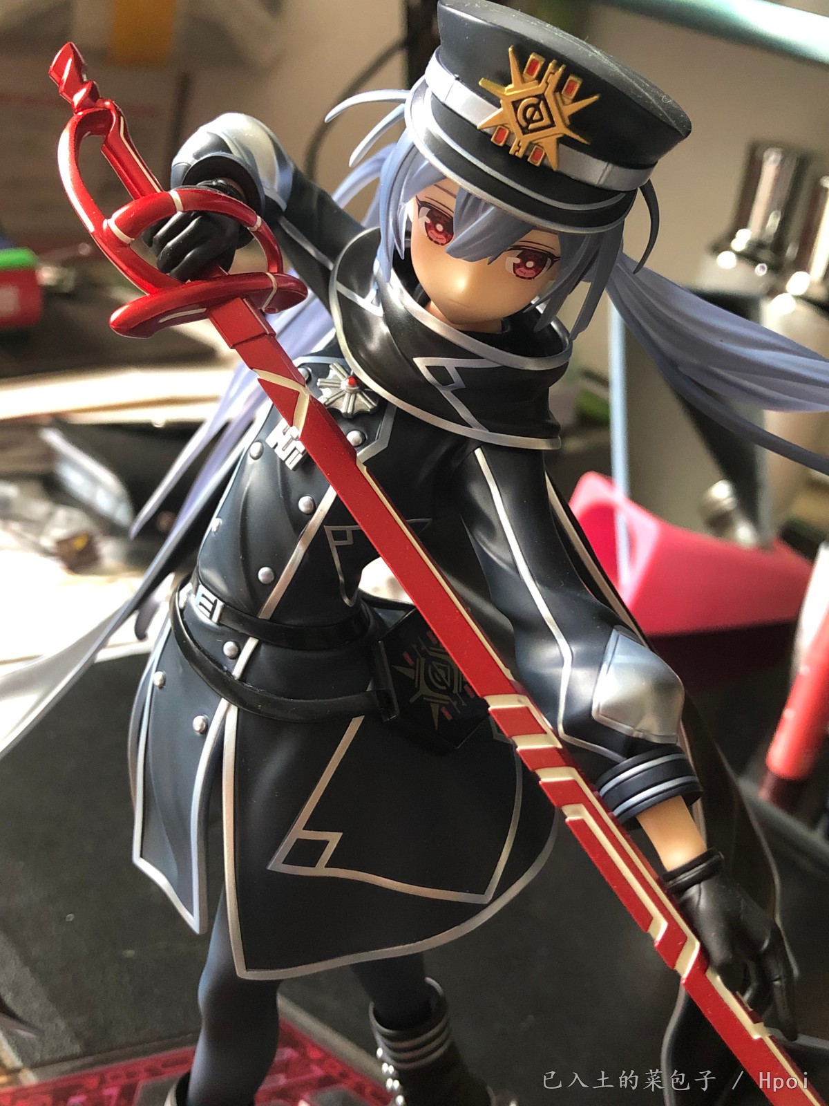 军服+单手抚刀+飘逸双马尾萝莉=实物造型非常的帅气;