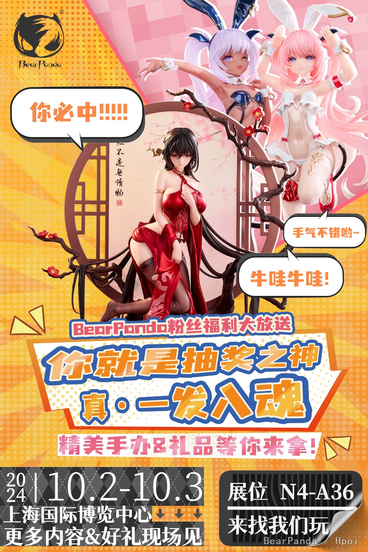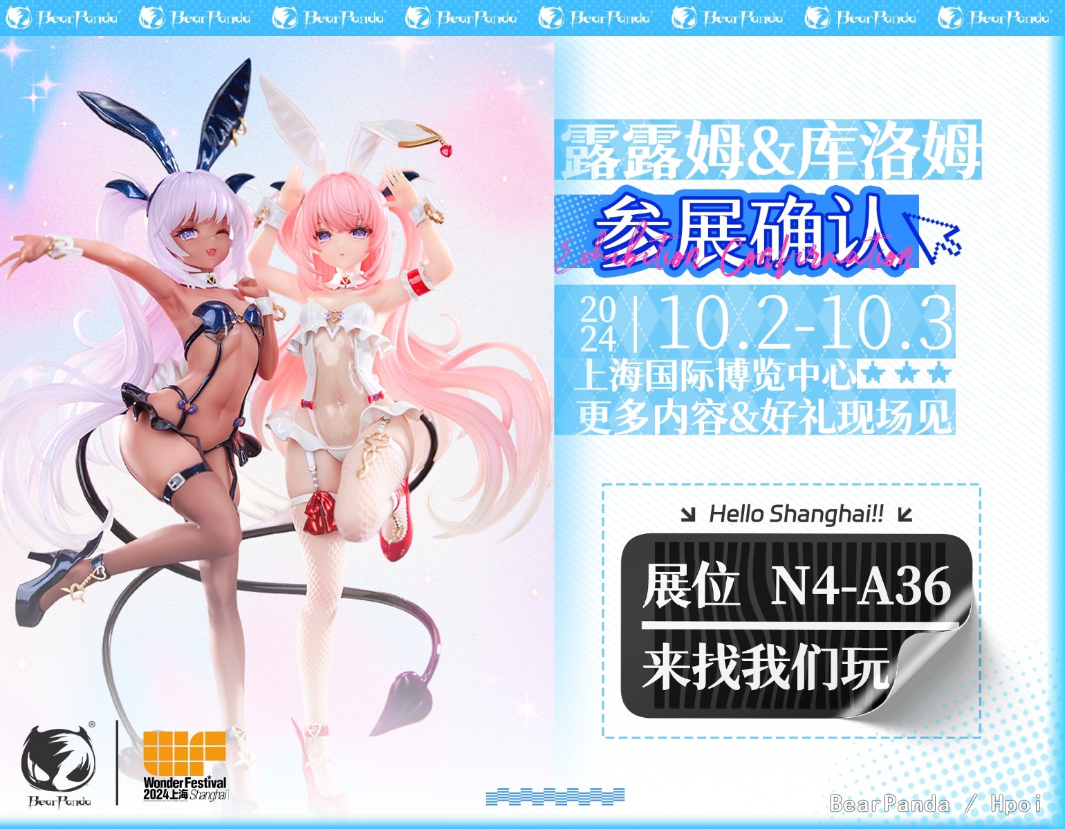 【WF2024上海】全国最大手办爱好者的盛宴即将开启!BearPanda现场多款重磅正版IP产品抢先看!!更有多款1/2比例兔女郎限量雕像展示中,我们诚挚邀请您参加本次展会的手办抽奖活动!只要您到场参与,就有机会赢取精美手办!我们在N4-A36不见不散。