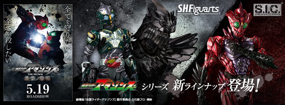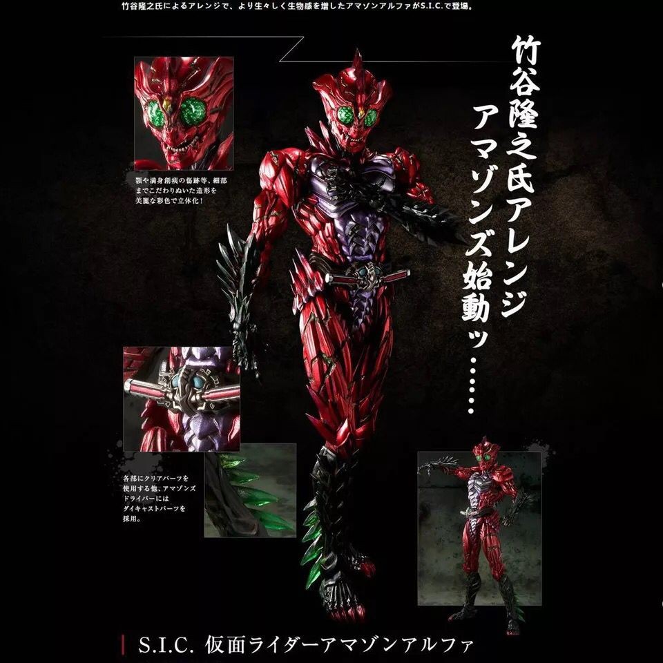 竹谷隆之氏によるアレンジで、より生々しく生物感を増したアマゾンアルファがS.I.C.で登場。顎や満身創痍の傷跡等、細部までこだわりぬいた造形を美麗な彩色で立体化!