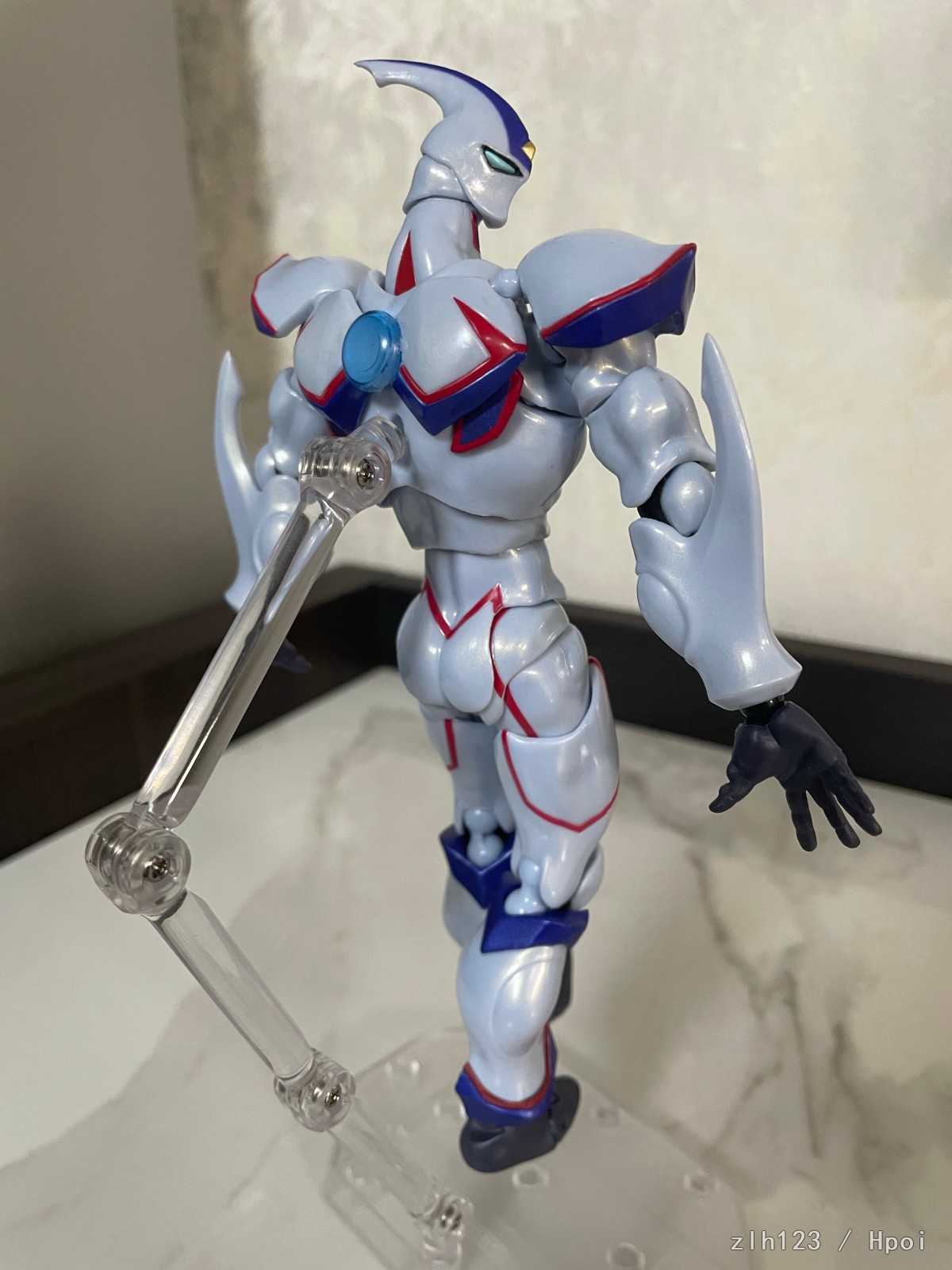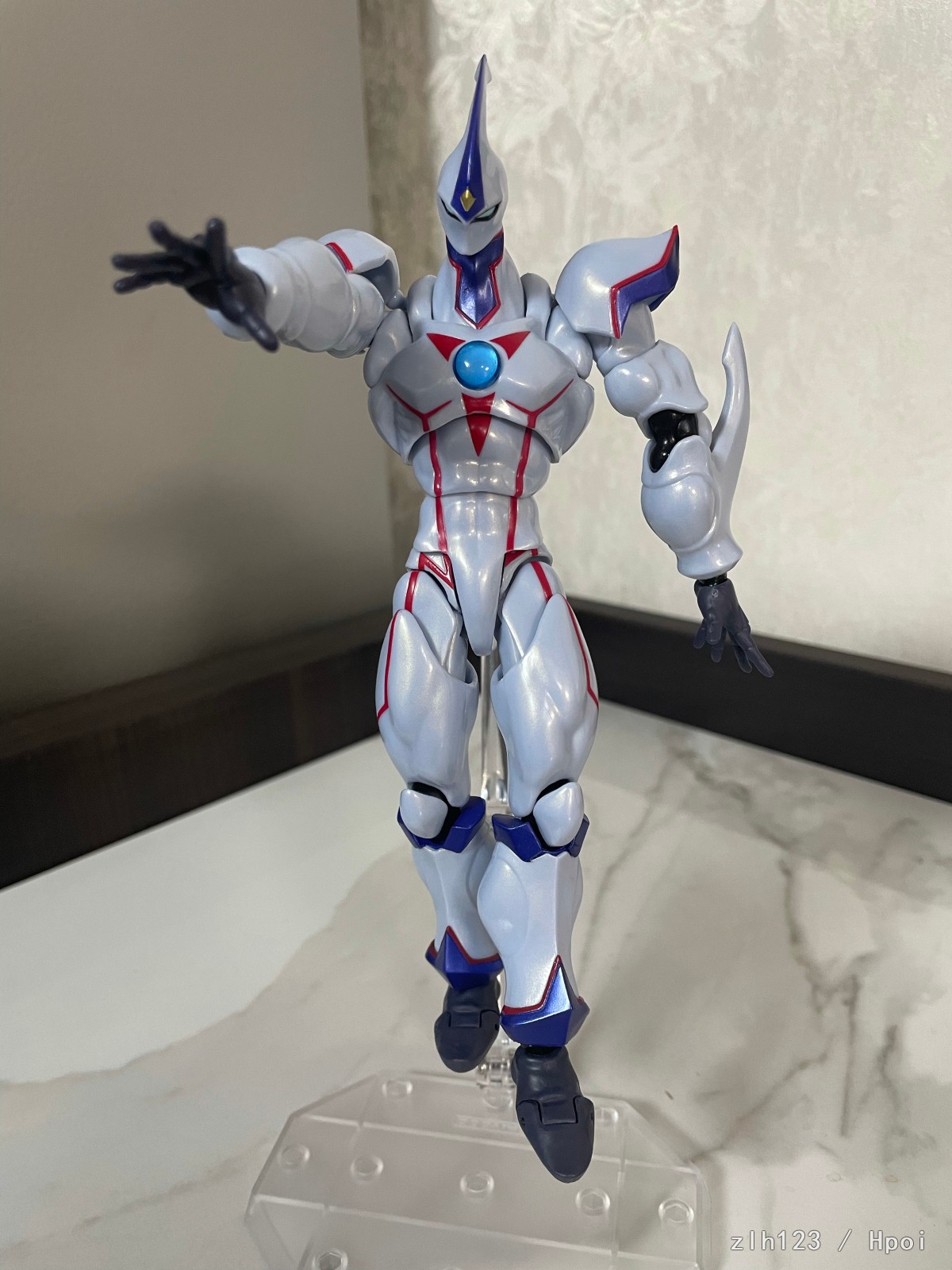 而且挺大的,快有20cm了,和一番赏站一起基本等比。虽然肯定是没有十代和蟹哥那么差的,但品控方面多有问题,身上时不时能找到一些色斑瑕疵,配件不算特典计数牌的话就纯是手型战士。
