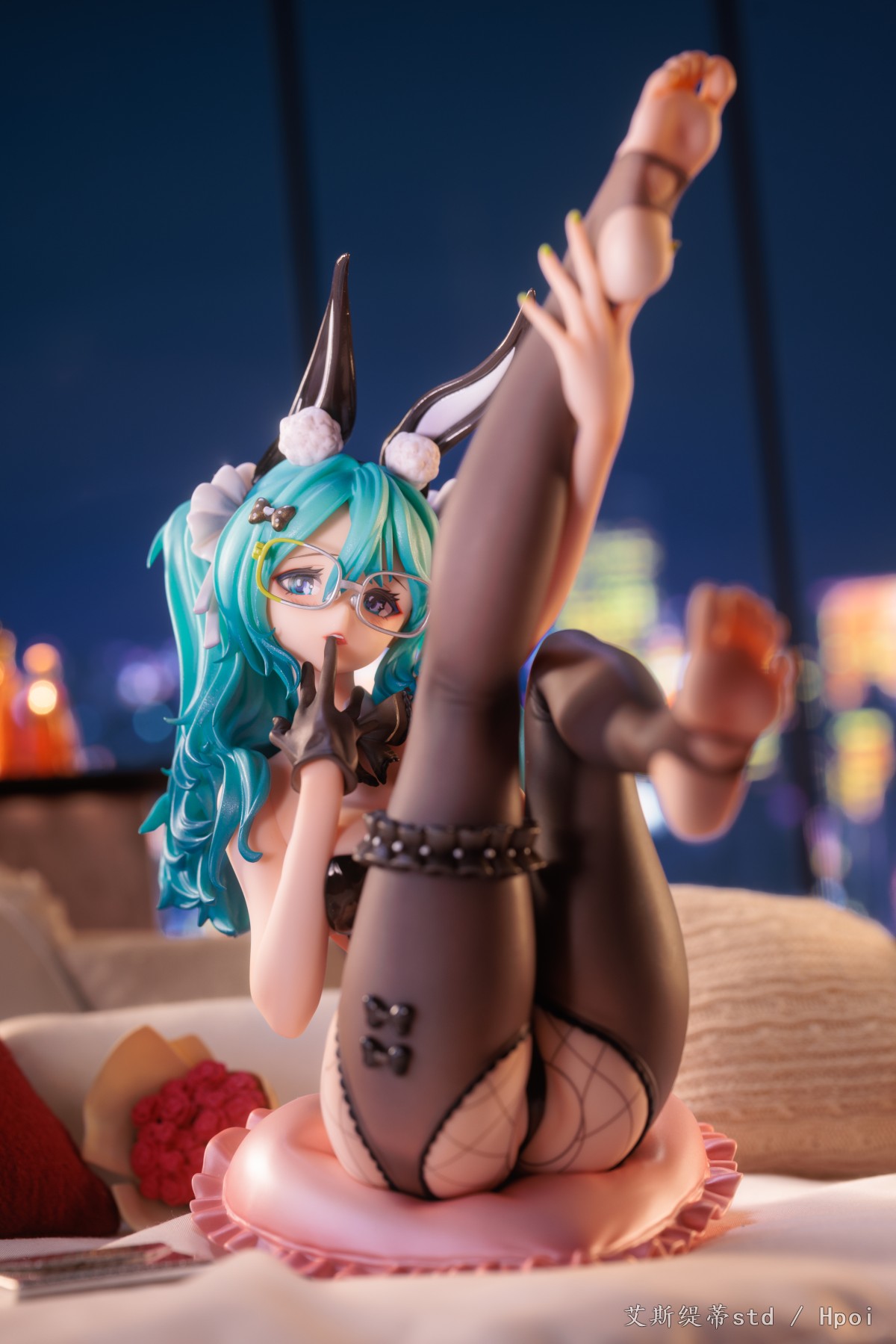 洗完澡出来,她已然换上了今天的战斗装——一副无框眼镜、兔女郎内衣,还在网袜外面套上了丝袜——正在向我挑逗。