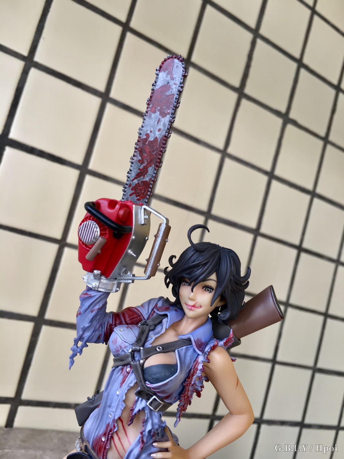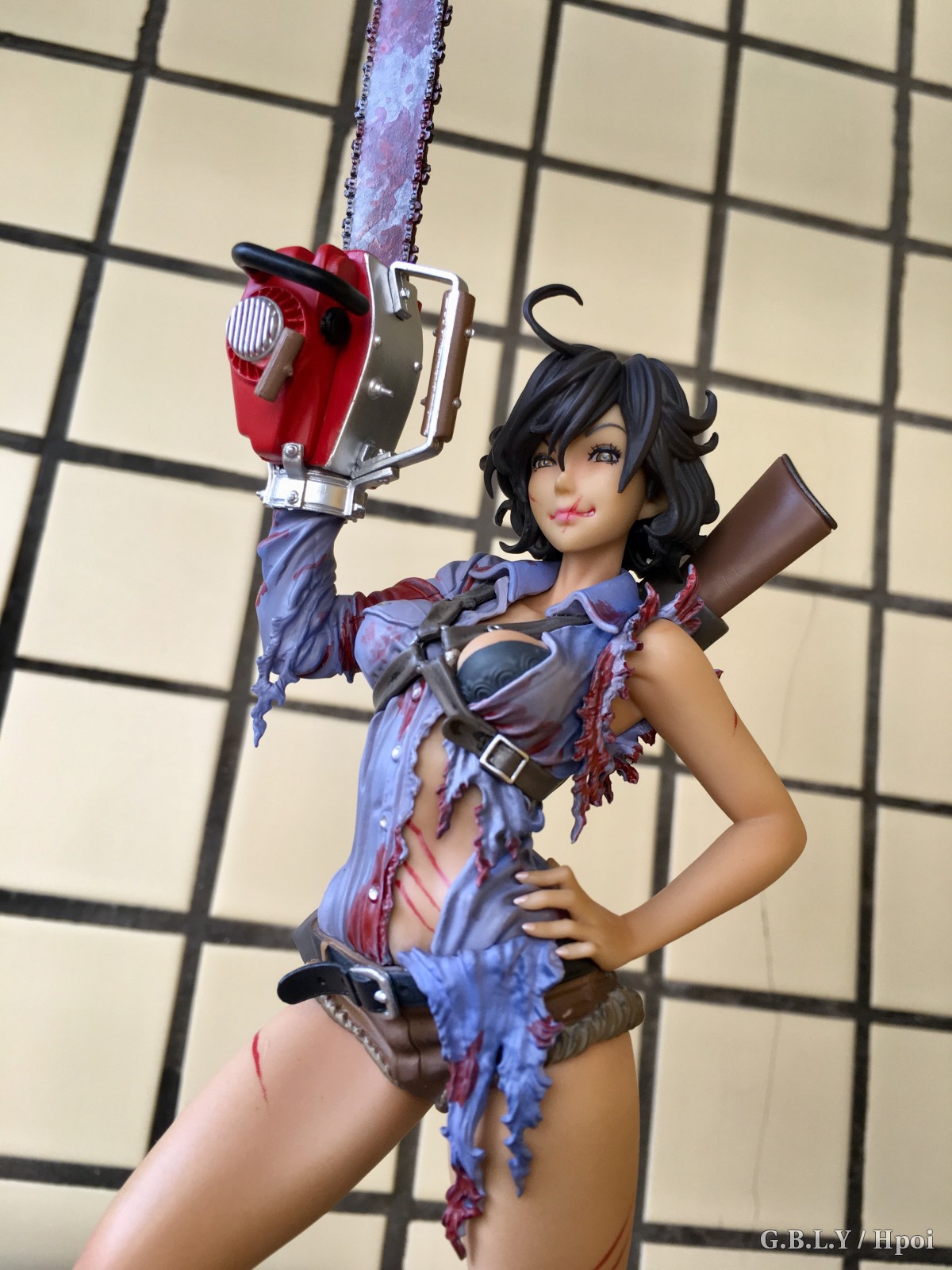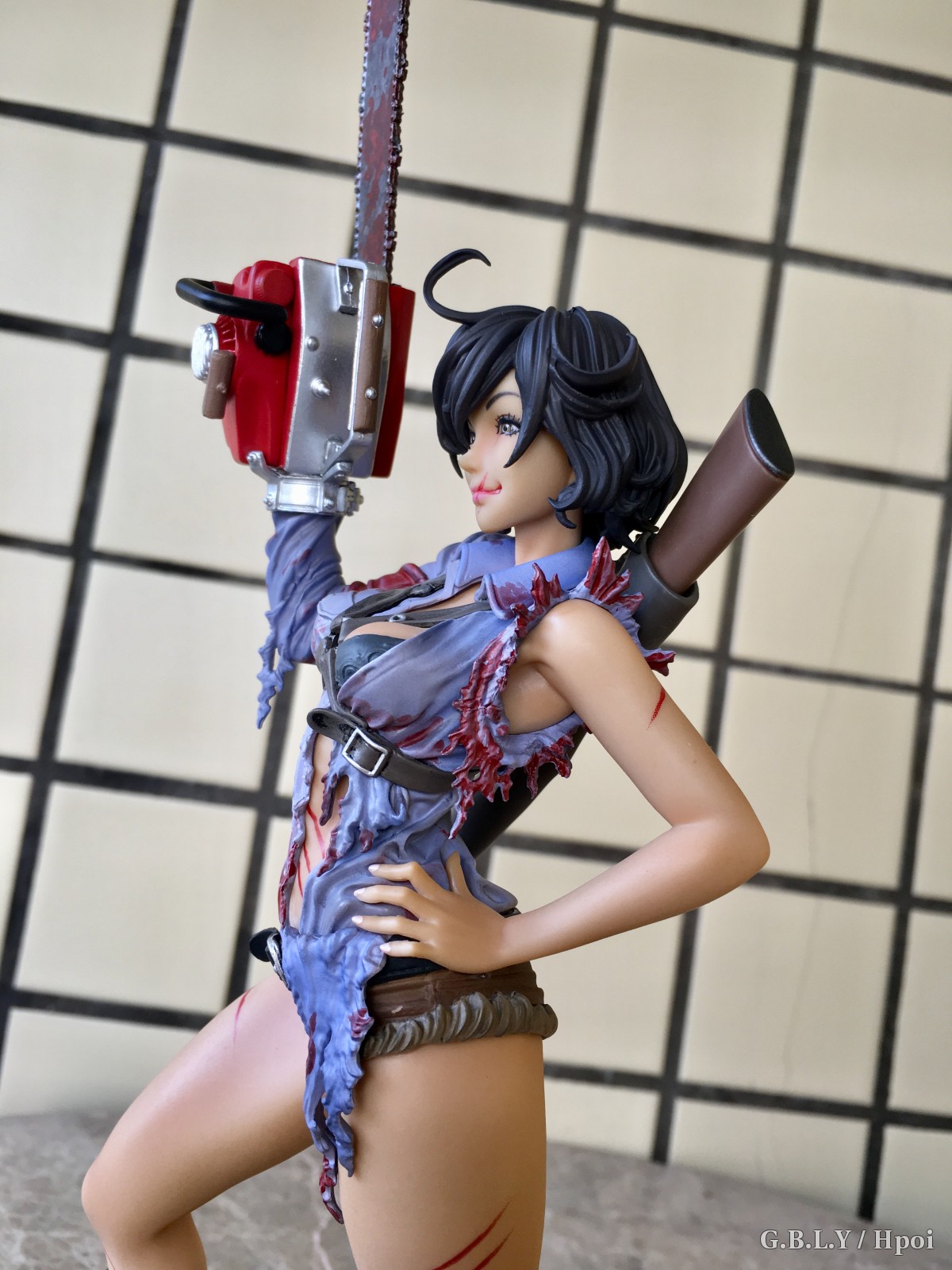 涂装的话这个就比较贼了,血迹靠这种细碎笔触还原出来你根本没有挑瑕疵的空间相当省心。。褶皱阴影依然有淡淡的涂装。肤色表现就寿屋通常发挥了比较平淡也不细滑不过这款小麦色有质感buff刚好盖过。猎枪和电锯发动机这两块太干净了和整体不太搭比较遗憾。