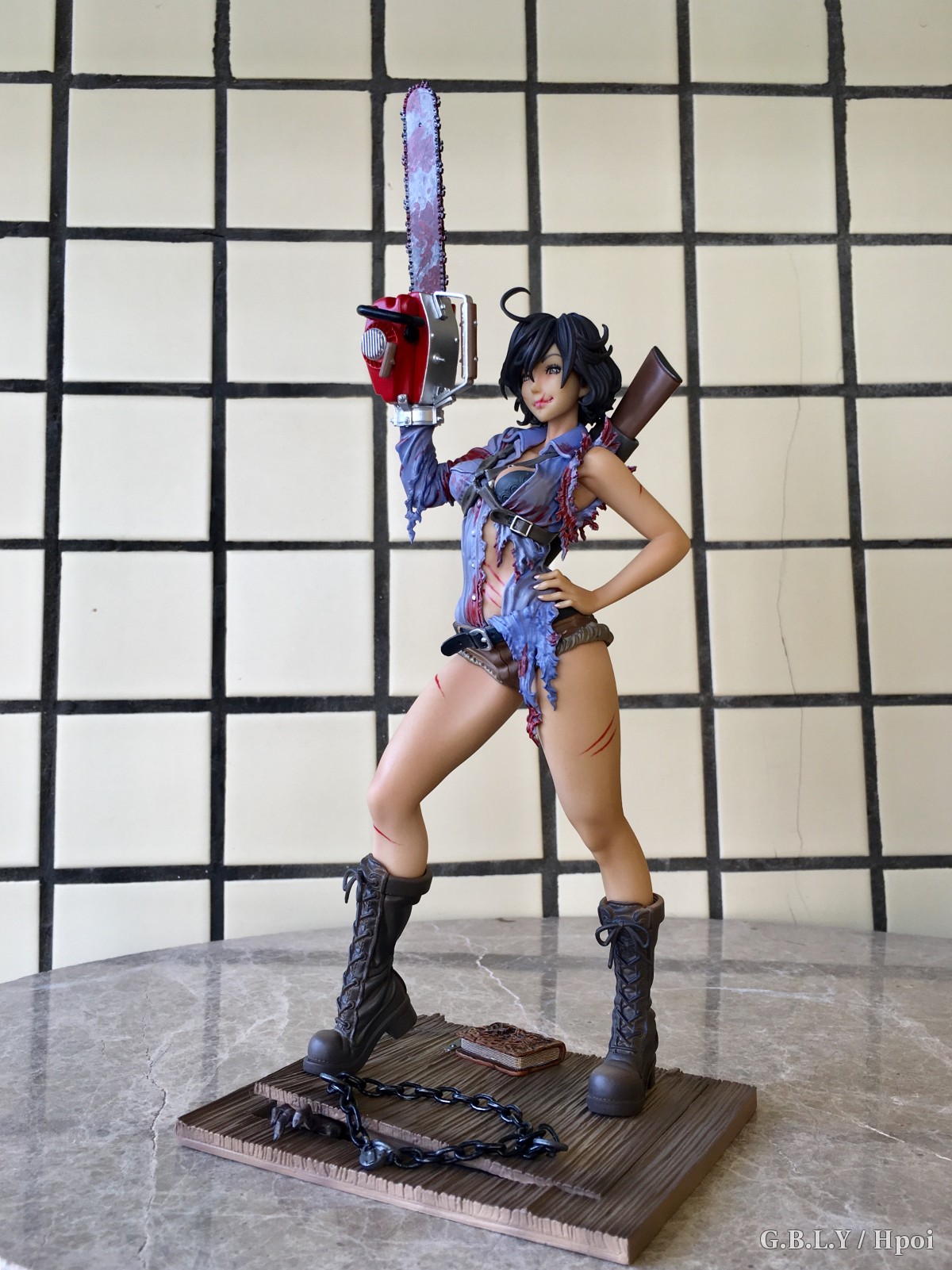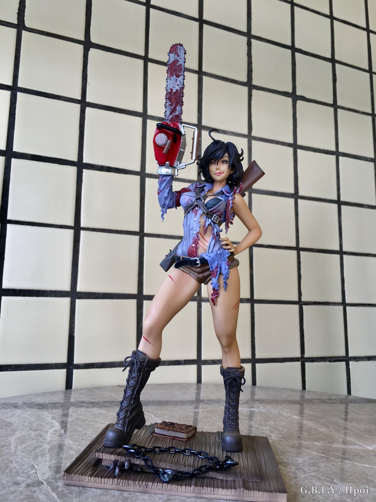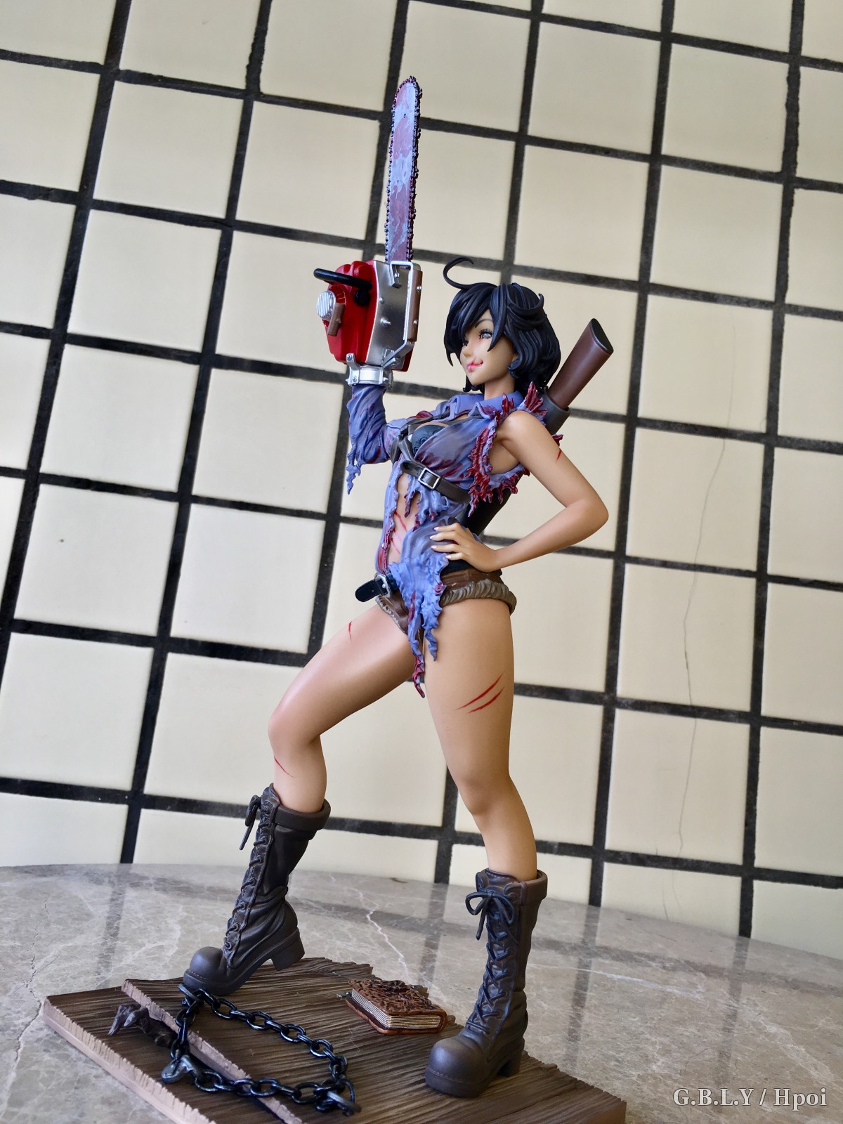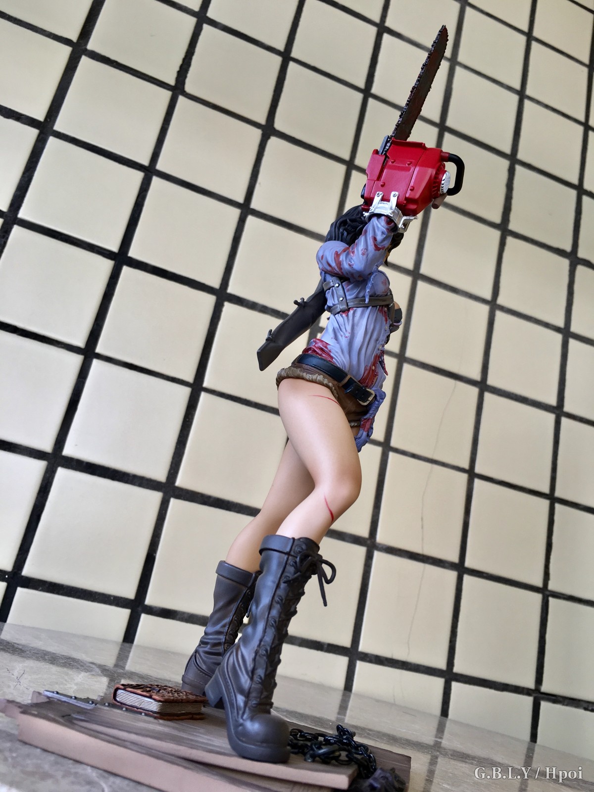 涂装的话这个就比较贼了,血迹靠这种细碎笔触还原出来你根本没有挑瑕疵的空间相当省心。。褶皱阴影依然有淡淡的涂装。肤色表现就寿屋通常发挥了比较平淡也不细滑不过这款小麦色有质感buff刚好盖过。猎枪和电锯发动机这两块太干净了和整体不太搭比较遗憾。