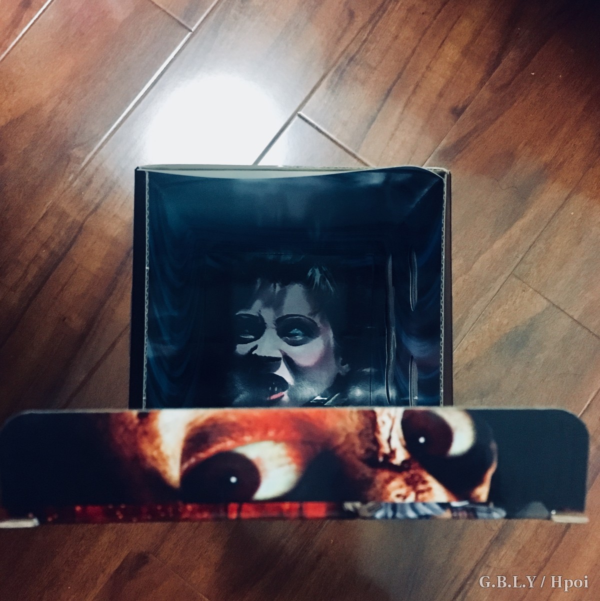 底座还原了电影里的经典场景地窖入口,锁链、伸出来的怪手和地上的书都是贯穿系列的标志性元素,这也一向是这个系列的加分项了;顺带拍了3张盒子的细节给你们感受下包装设计上的细节。