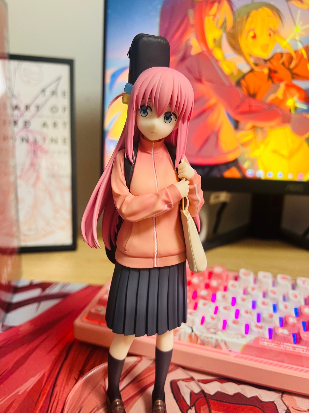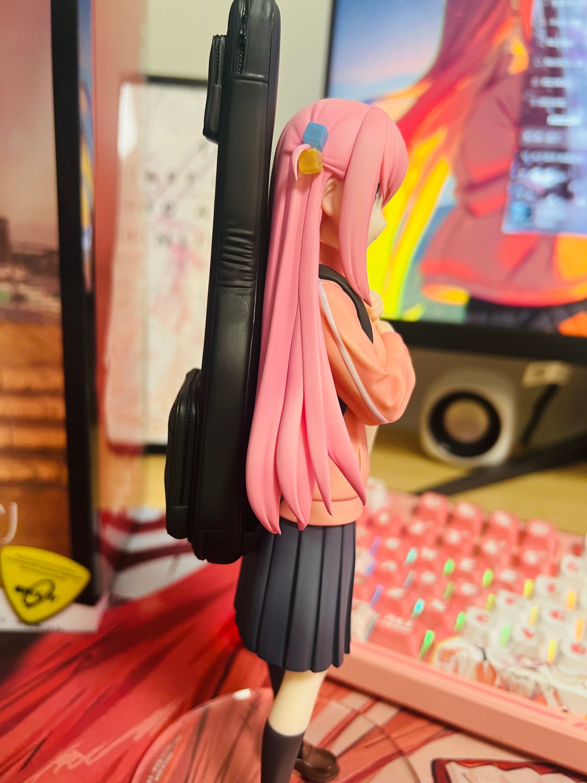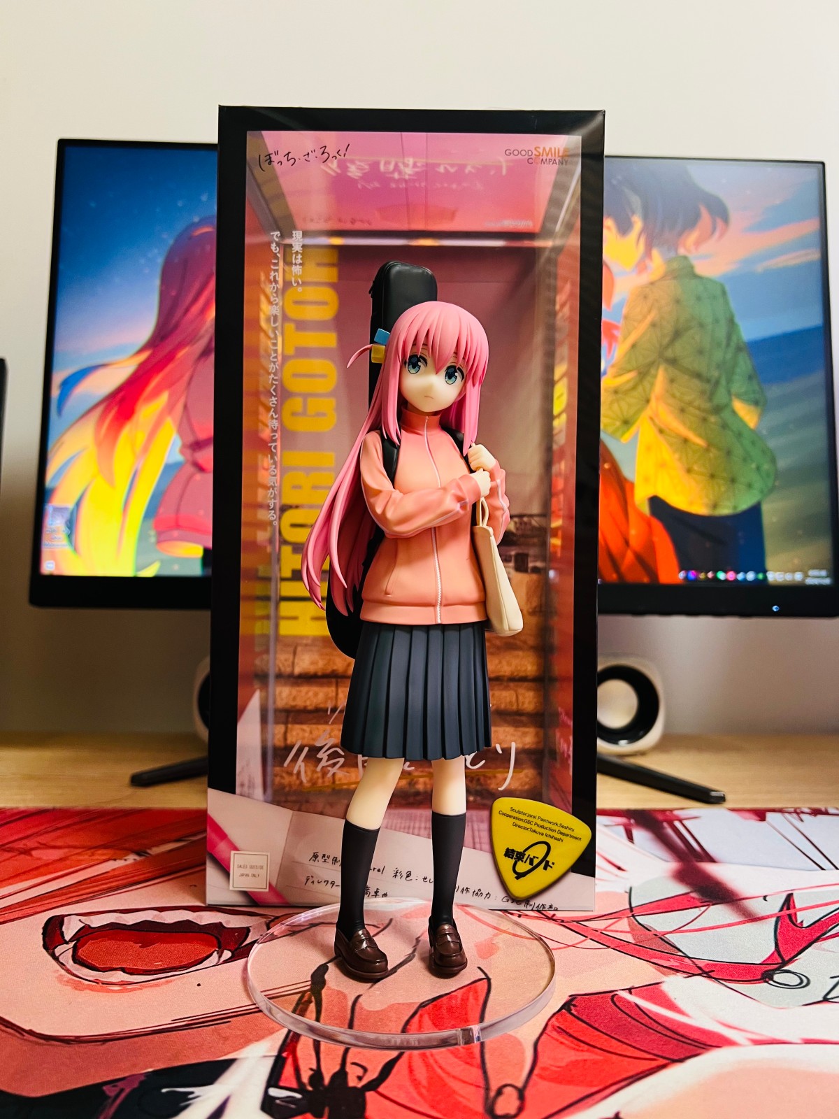 第一次买手办 两年半前接触的第一次少女乐队也是孤独摇滚 当时还是觉得角色绘画特别可爱 刚好泛式也安利了 就比较期待的去看了番剧 一整部四小只塑造得各有各独特的情绪价值 看爽了 本来之前一直觉得一个手办塑料小人好几百块 挺浪费钱的 虽然现在也觉得qwq 怎么说呢 想了想喜欢那就是无价的 金钱没有消失 只是变成了我喜欢的样子 9月26开始关注的这四只系列 当时已经来不及收单了 蹲了一个月才680拆检价捡漏到全新未拆的波奇 更是第一次感受到了倒🐶们的强度 炒价持久不下 凉出荷时在叔叔up主测评评论区底下收的同乡大佬原价转单 总体来说还是挺幸运 两只热度最高的不用花溢出的价格就能入手
