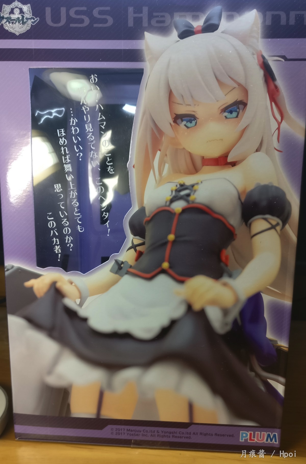 首先到手箱子基本四四方方,手办没有中奖。整体来说,表情跟底座是加分点,头上的分模线属于可以接受的范围,扣分项有2,一个是细节的处理上,衣服上的细节个人看起来应该是手涂的,但是上色的时候对边界的处理不是很好。其次就是作为伪船模爱好者,哈曼的舾装个人感觉细节上还有待改善(没有做旧,塑料感太强,另外这个舰底红貌似色号不对?最关键的。船尾上的分模线没有处理啊喂!这个忍不了啊)。整体来说,这个做工对这个价格不能说是物超所值,舰娘的价格普遍偏高是没办法的事。