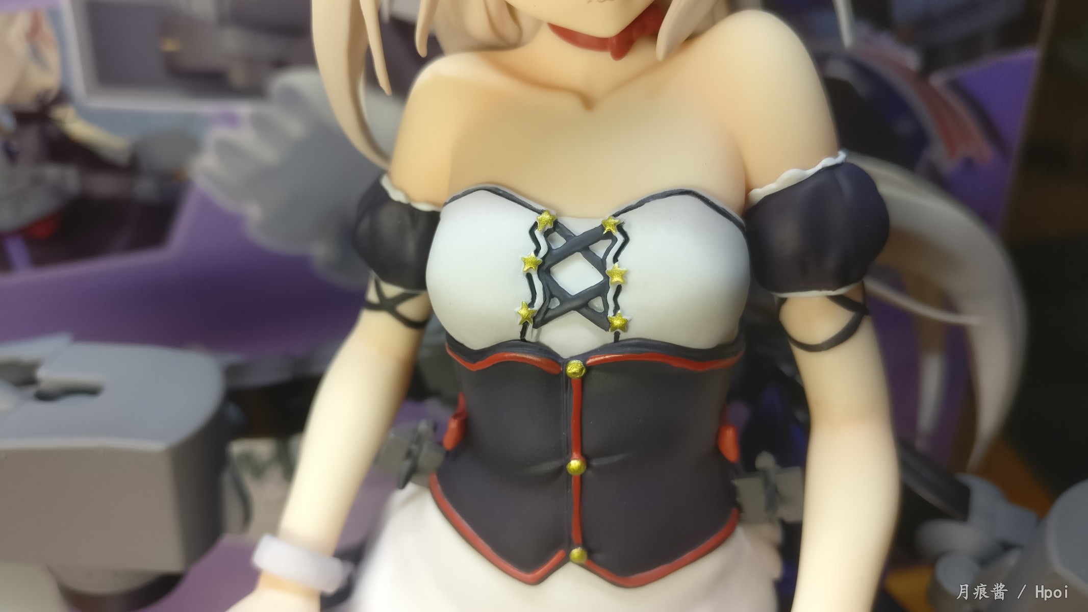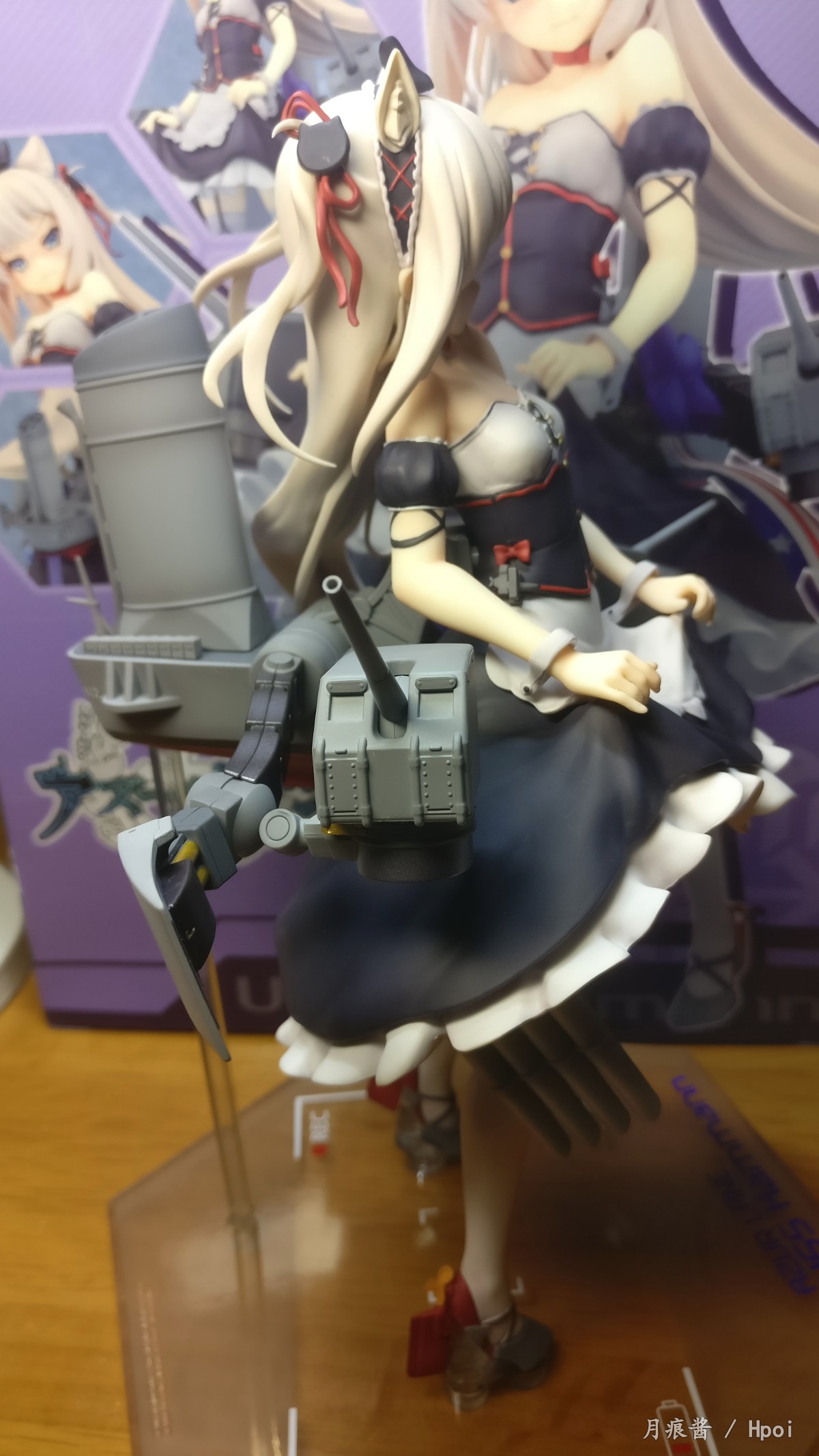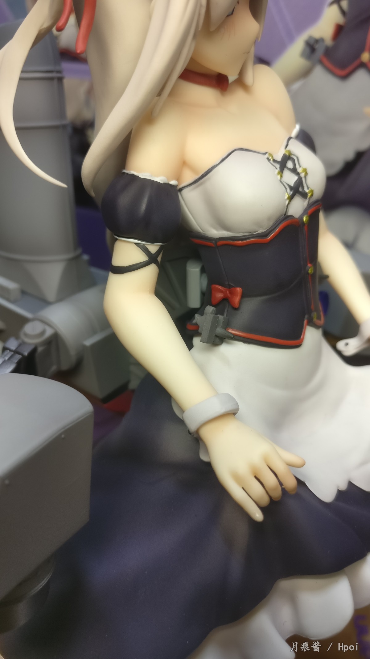 另,为了拍绅士视角,因为支撑不稳还来了一次自由落体QAQ,亏着不高,最后只是在背后裙子跟舾装接触的地方有个小坑加少量的轻微蹭色,用油性漆稀释剂稍微擦拭就擦掉了。