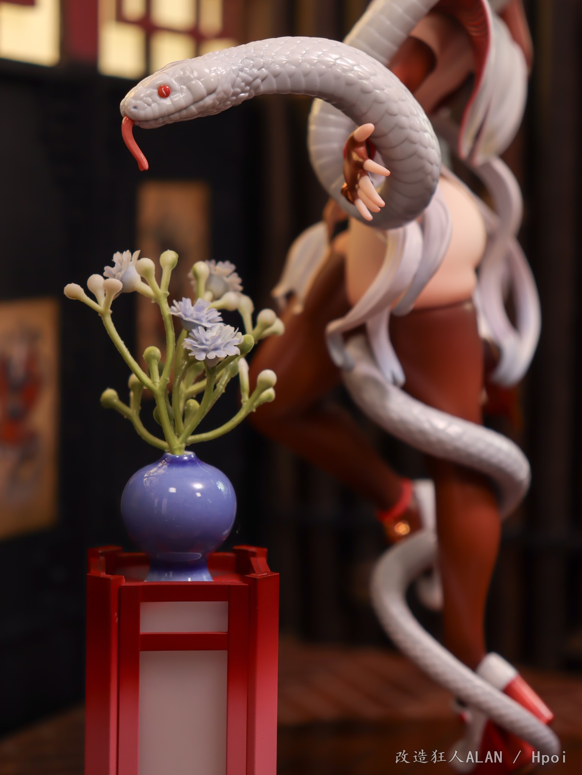 值此新春佳节,向大家奉上SSR FIGURE的异人馆 柳柒摄影,手办细节生动到位,缠绕在身上的白花蛇更是精美无比,正好契合了最近的蛇年春节主题ヾ(≧▽≦*)o