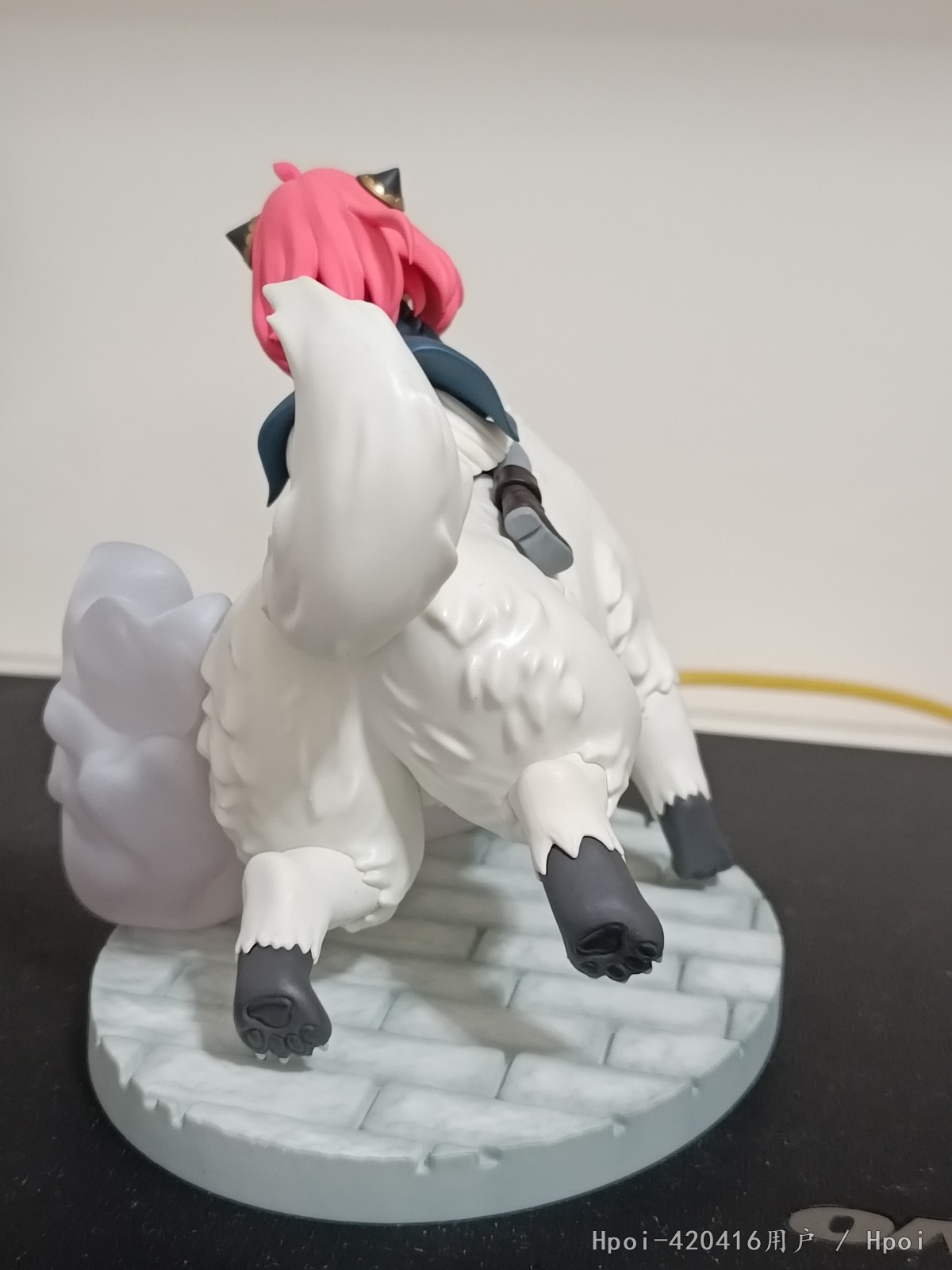 狗和地台有桩位连接,不是很好装,但是也能直接装进去。阿尼亚和狗没有桩连接,是通过狗背上开的几个槽卡上去的,但是阿尼亚的手臂和卡槽有点差距,需要自己掰一下手臂才能卡进去(当然不排除个人中奖),卡好后阿尼亚倒着放都是不会掉的。