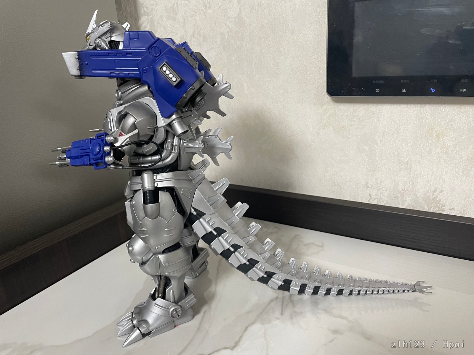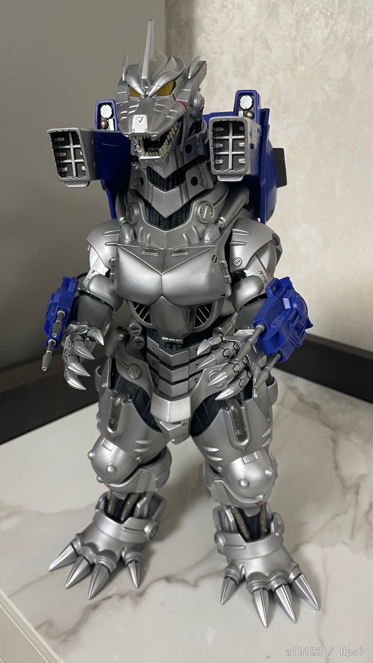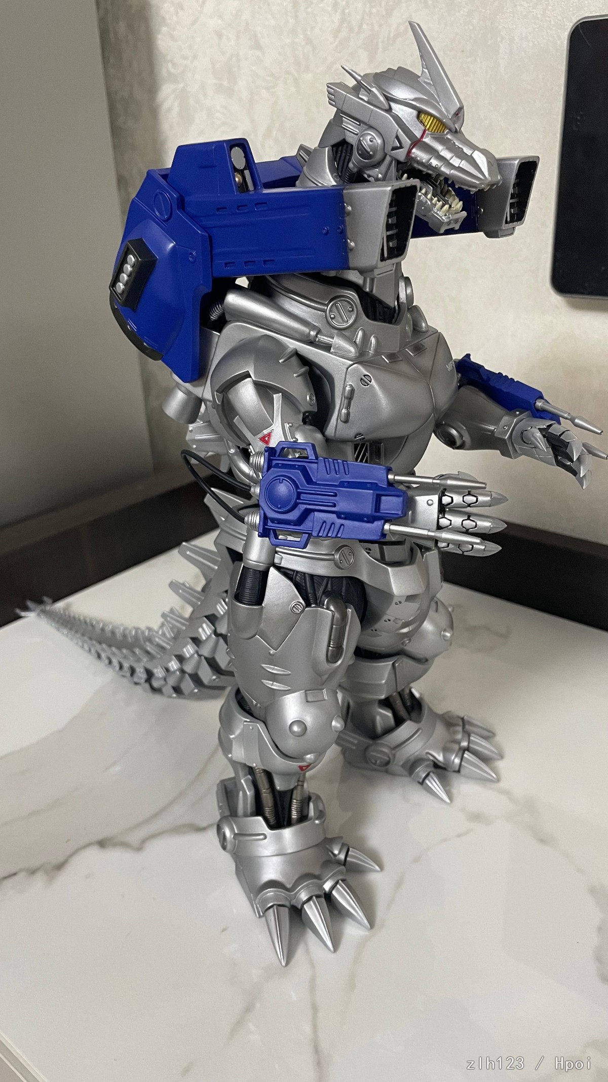 高度超过30cm,比预期中大。主体部分由于软胶材质原因质感还是略有欠缺,这方面确实是不如超合金的;武装是硬质材料效果不错,手腕和手臂可以旋转,可惜脚踝处就不能调整了,同样由于软胶材质原因,头上角和身体会有歪斜,用下吹风机加热之类应该能调整过来。