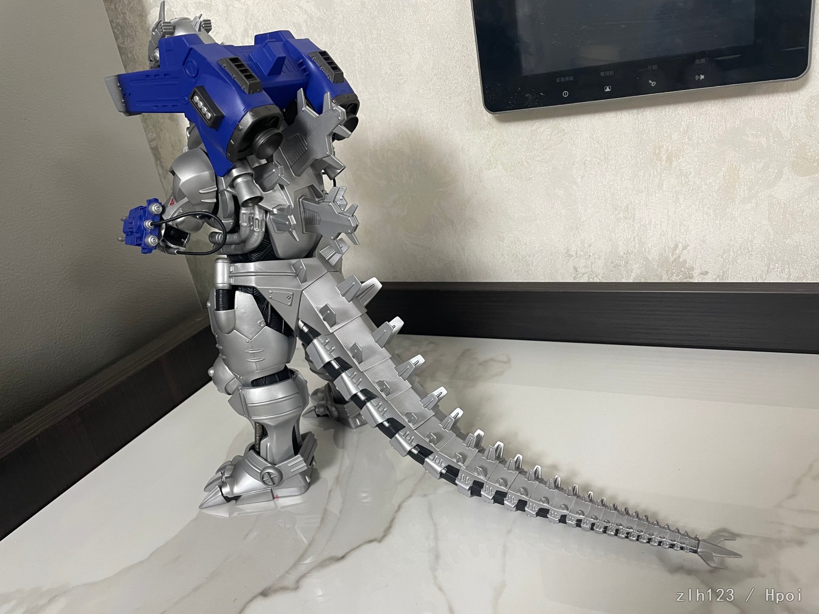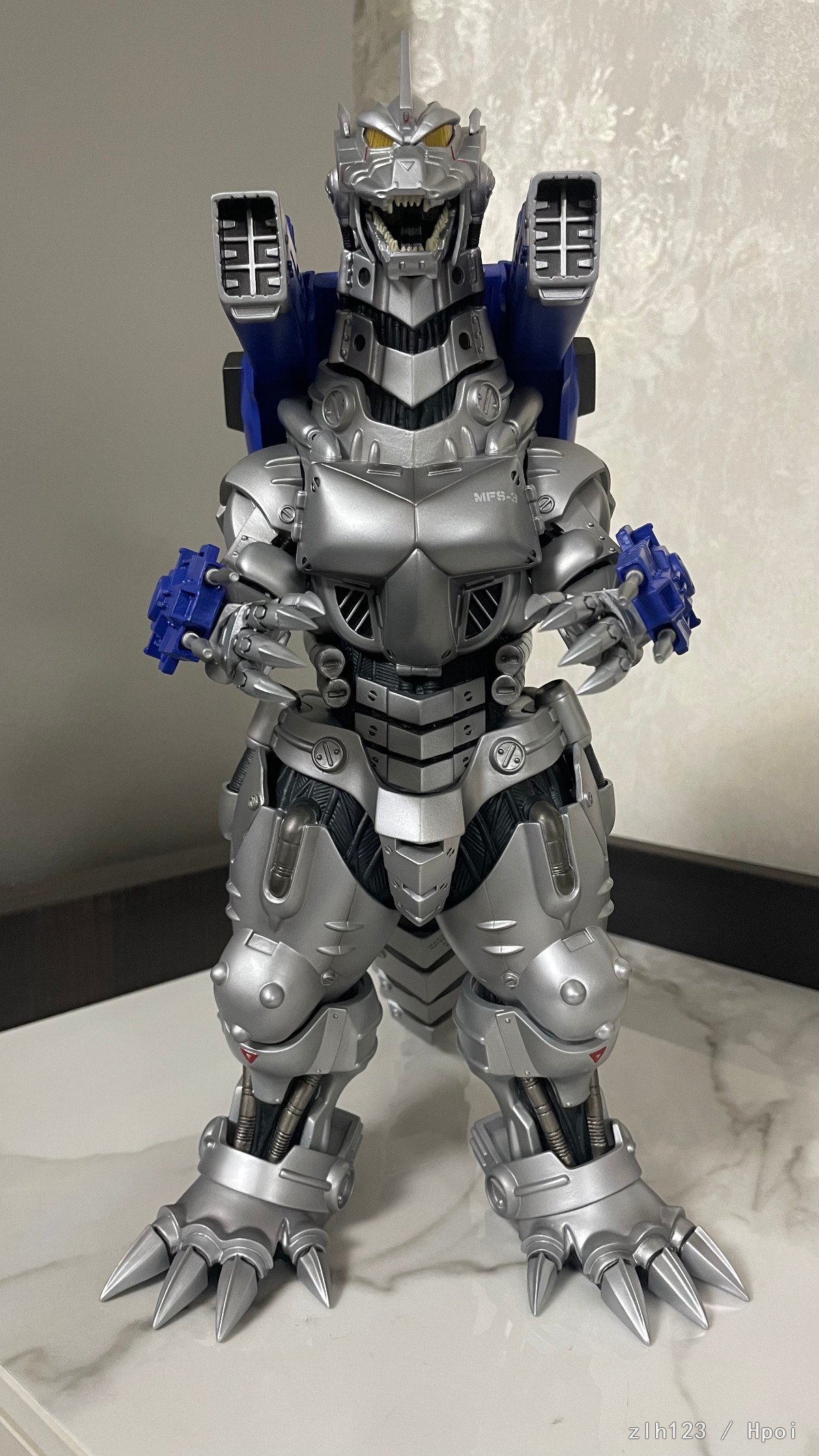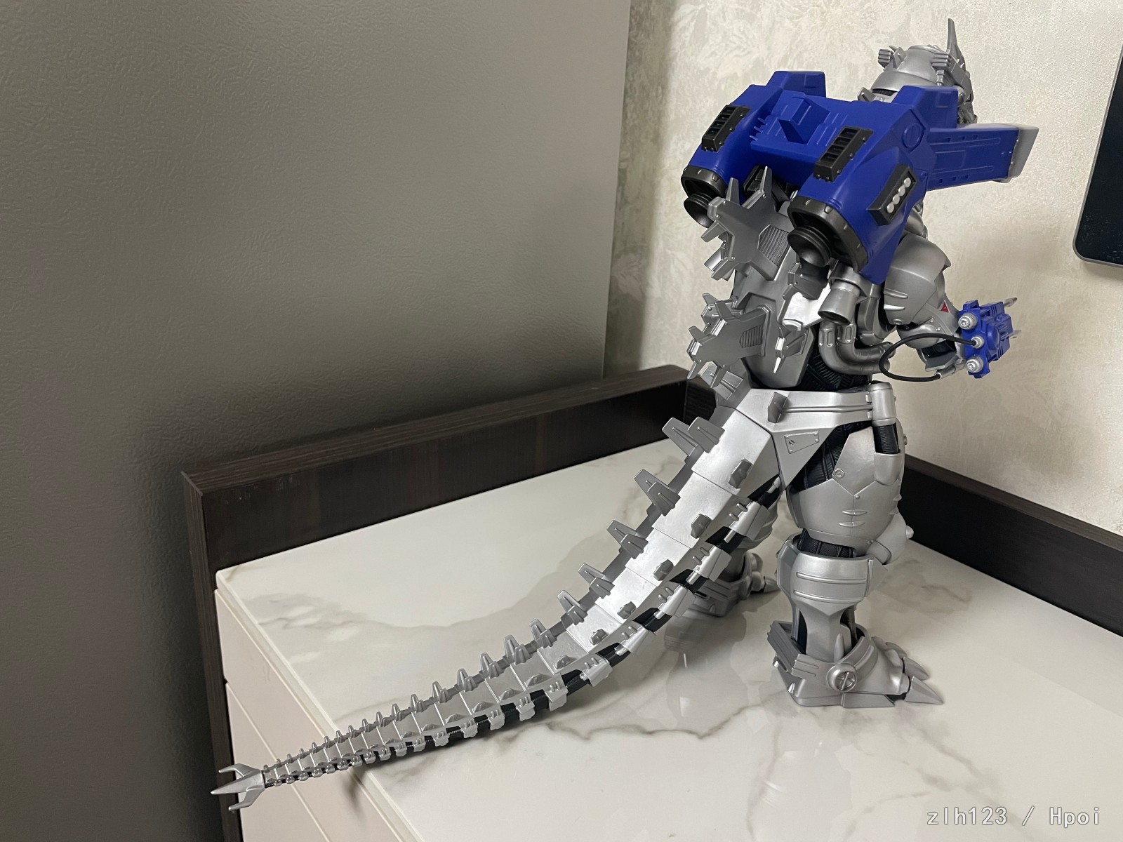 高度超过30cm,比预期中大。主体部分由于软胶材质原因质感还是略有欠缺,这方面确实是不如超合金的;武装是硬质材料效果不错,手腕和手臂可以旋转,可惜脚踝处就不能调整了,同样由于软胶材质原因,头上角和身体会有歪斜,用下吹风机加热之类应该能调整过来。