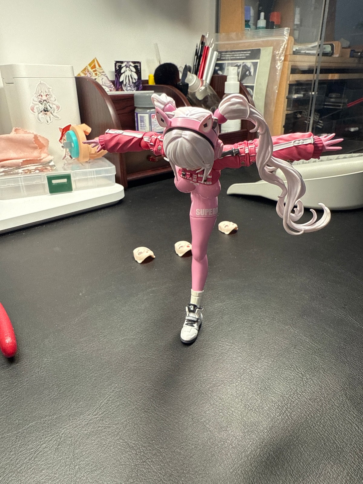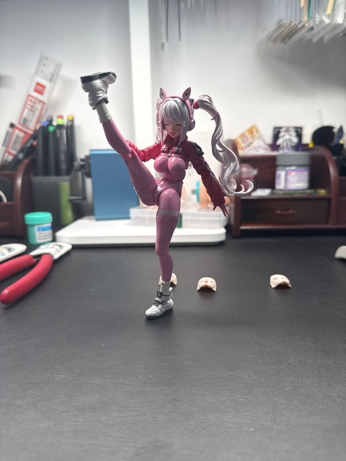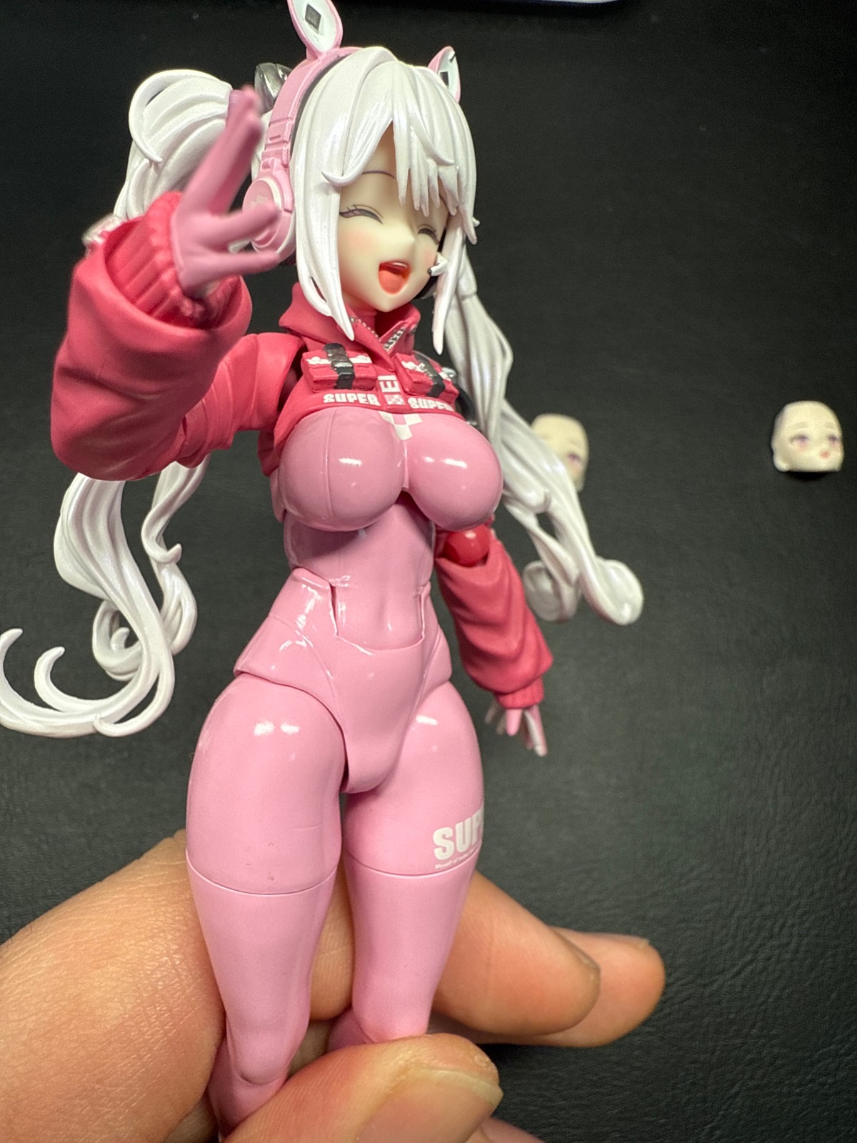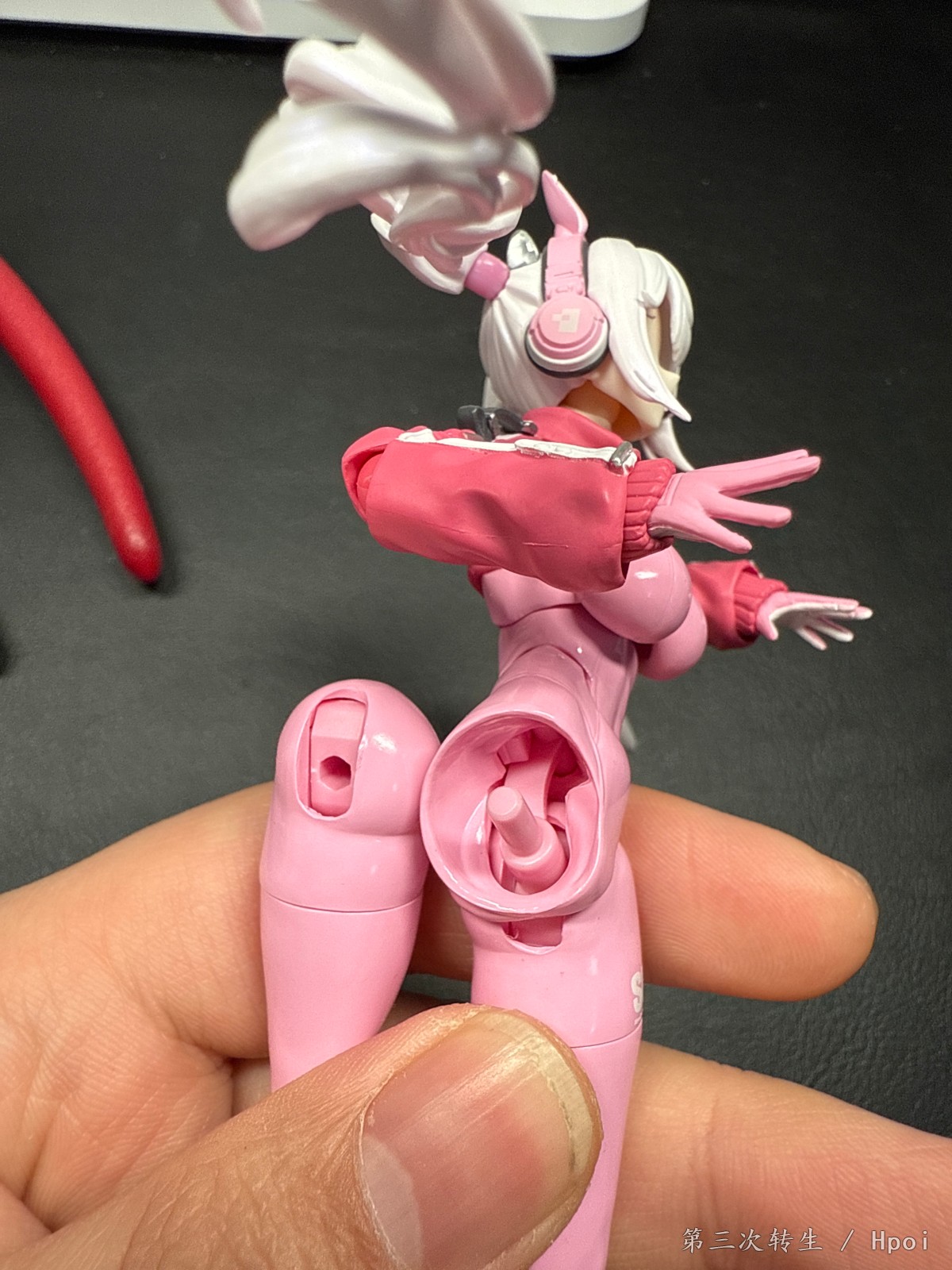 照片果子16拍的,拍照垃圾,懂得都懂,台灯下拍的,凑合看下吧。起码不是死亡打光。视频是关节松紧度,主要是双马尾和腰部。以下是评论区发的内容。日本官网买的特典版到了,简单评价下,figma做工少有的神物。粉色胶衣质感不错,光油没有积漆现象。全身关节阻尼优秀,替换腿插拔力度适中即可卸下。头发有紫色珠光漆,发丝锐度高,没有积漆现象。上衣分件合理,上臂旋转无明显错层。替换手每个都附带插桩式球关节,插拔顺畅,替换体验不错。头发较轻且关节阻尼不错,不会出现头发不举的情况,且对日常把玩无影响。鞋子得益于人物设定,运动鞋带来了较大的接触面和更好的关节遮盖,不借用支架也不会倒下,日常把玩更容易调整重心。 腰腹阻尼感优秀,零件的分割位置有做胶衣褶皱细节来模糊可动位带来的割裂感。总之,这是件神物,完美达成了figma设计具备高可动,高手感,低关节外露的可动式手办的目标,成功从可动人偶到可动手办的水平。按照以往溢价规律的话,未来鱼上价格会在900-1.4k的价格水平