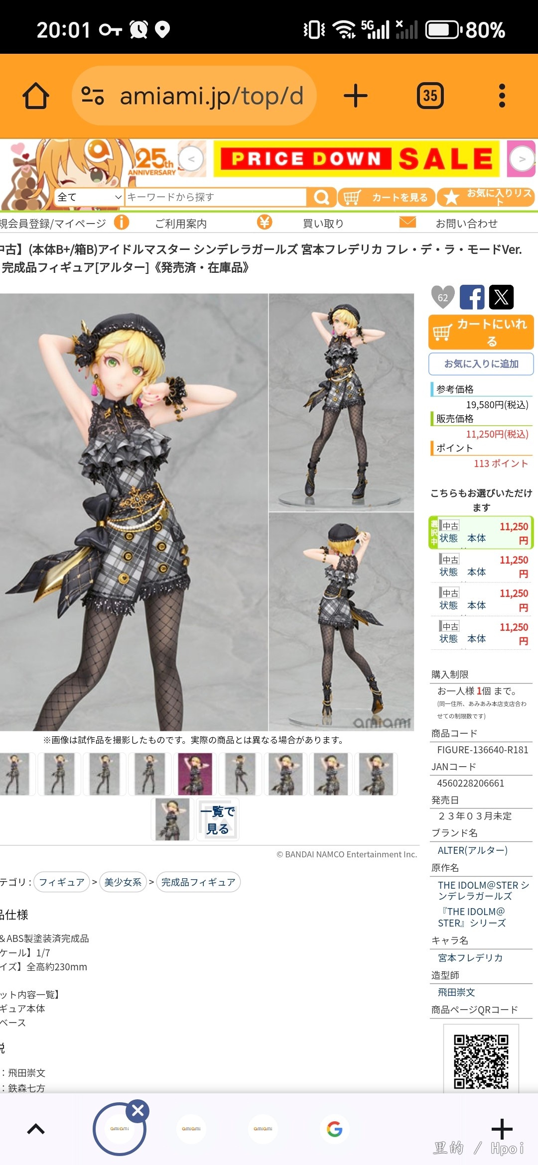 以alphamax举例,目前alphamax去年发售的所有手办二手价格都很坚挺,而像拼装机娘能从5000的原价(最初预订是5940打85折)涨到7000。alphamax自身手办质量的提升是一方面,但日本经销商们今年对于手办货量的严格管理是更大的原因。