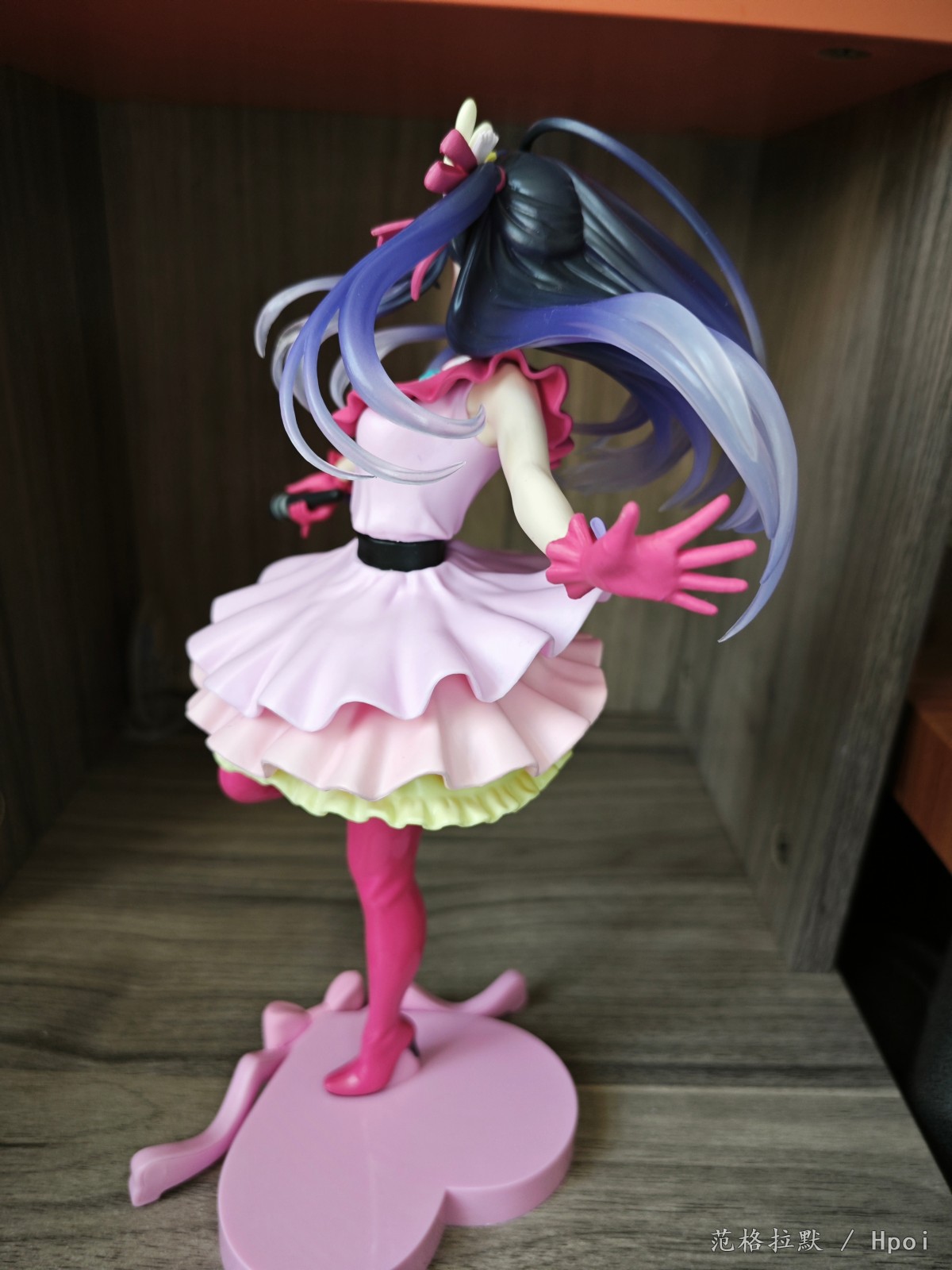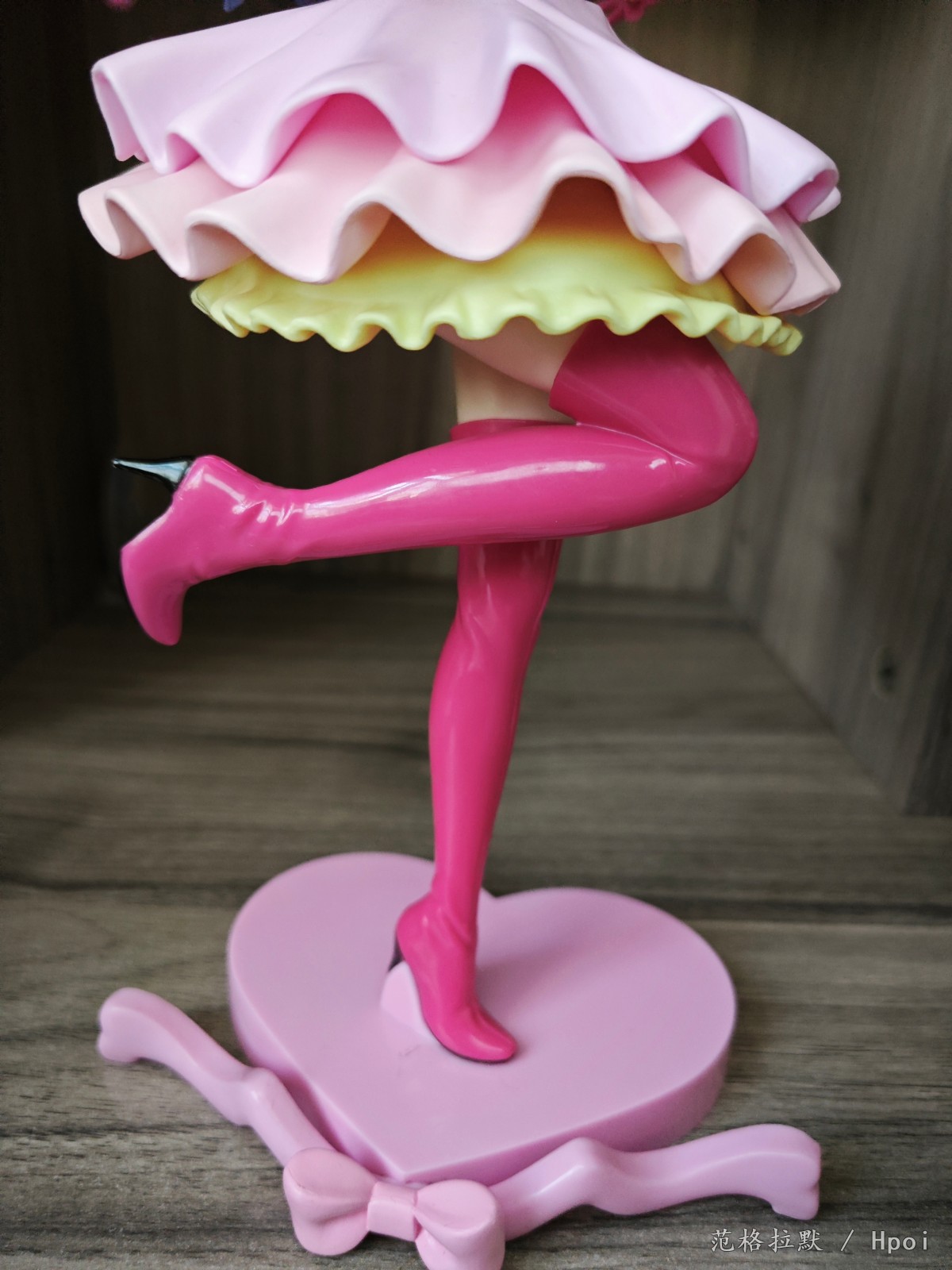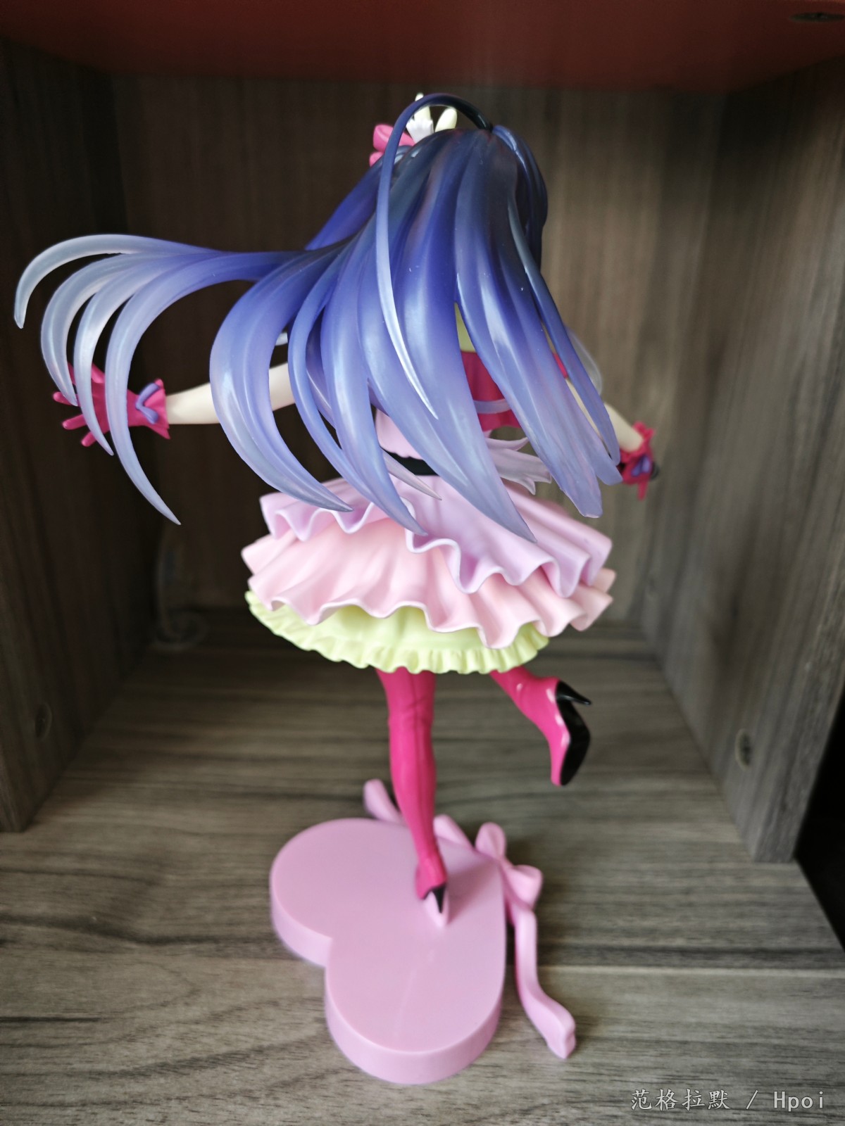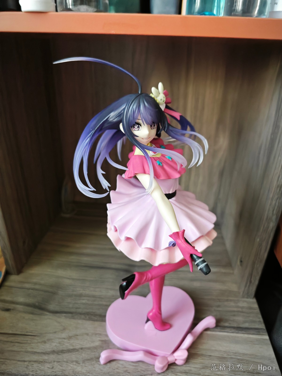 很大一只,有二十六七厘米,分为头,上半身,下半身和底座的组立式,得益于大比例做工,细节方面也很好。衣服的褶皱,裙摆的设计,头发的飘动。靴子两面漆的处理。以及飘逸渐变色的头发的涂装,面部眼睛的水贴也很正,整体做的都很到位。但最大也是美中不足的,缺点就是脸不太像。