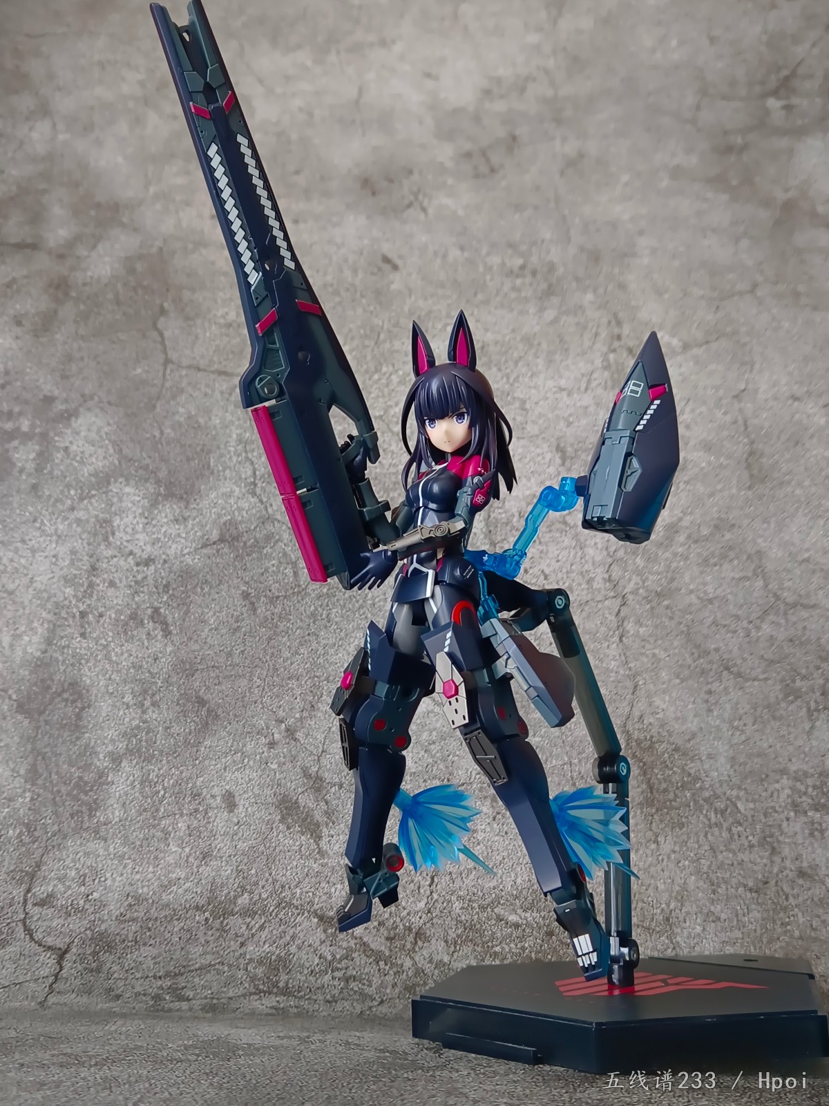 手臂护甲和腿上部分零件喷涂了金属色,本身应该是和浮游炮正面一样的浅绿色