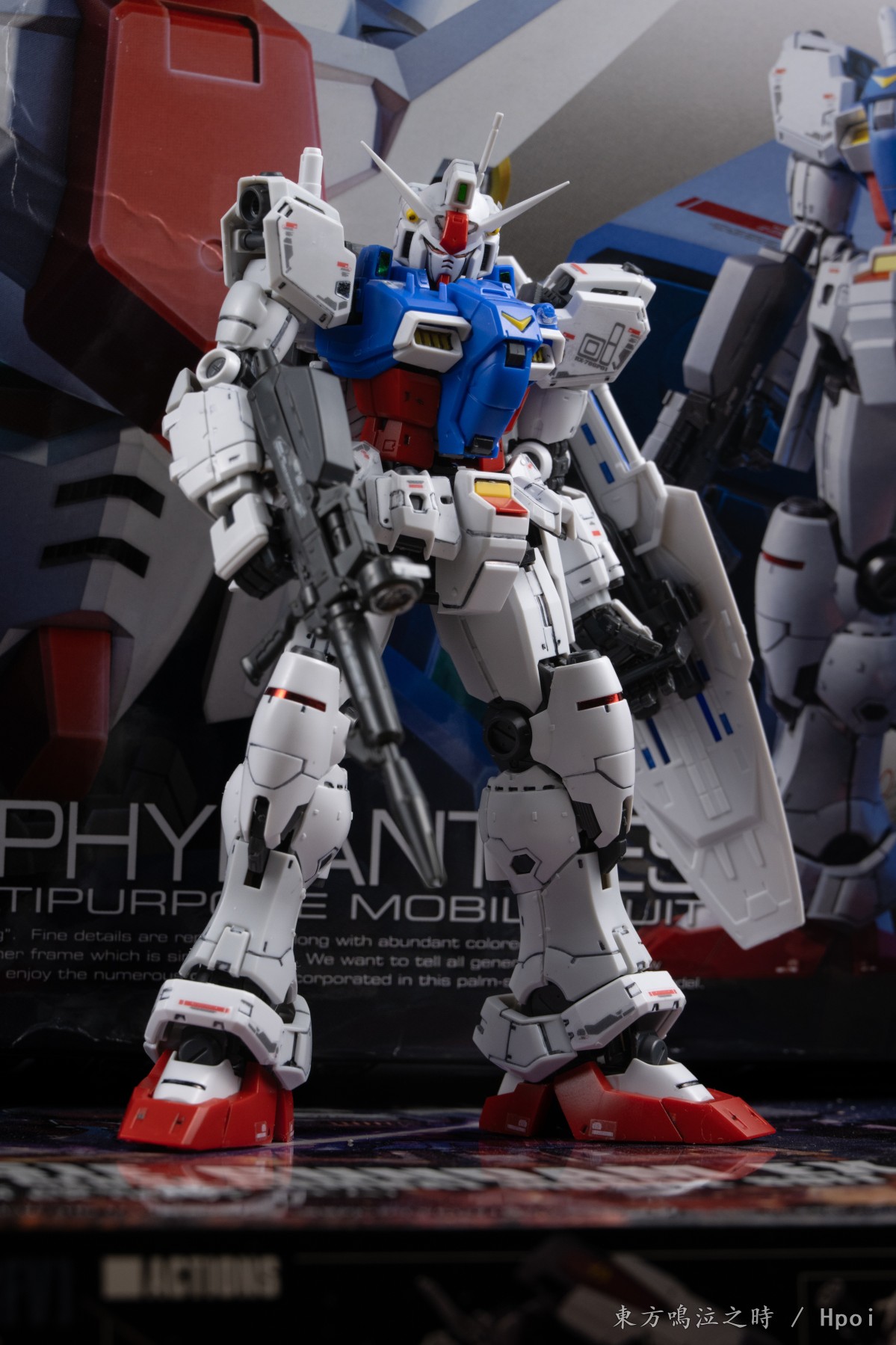 RG系列的第12款产品,此时期产品代表性特征为大量的成型骨架(四肢,胯部) 因此在我笨拙的拼装下部分区域出现了紧实度差异巨大的问题,故难以摆出多样姿势 且人不在家乡,工具极其匮乏,渗线依靠勾线笔,水口也等不到推刀赋予的抹除,完成后整体观感较差(指个人手艺给模型本身的美观度带来的毁灭性冲击)