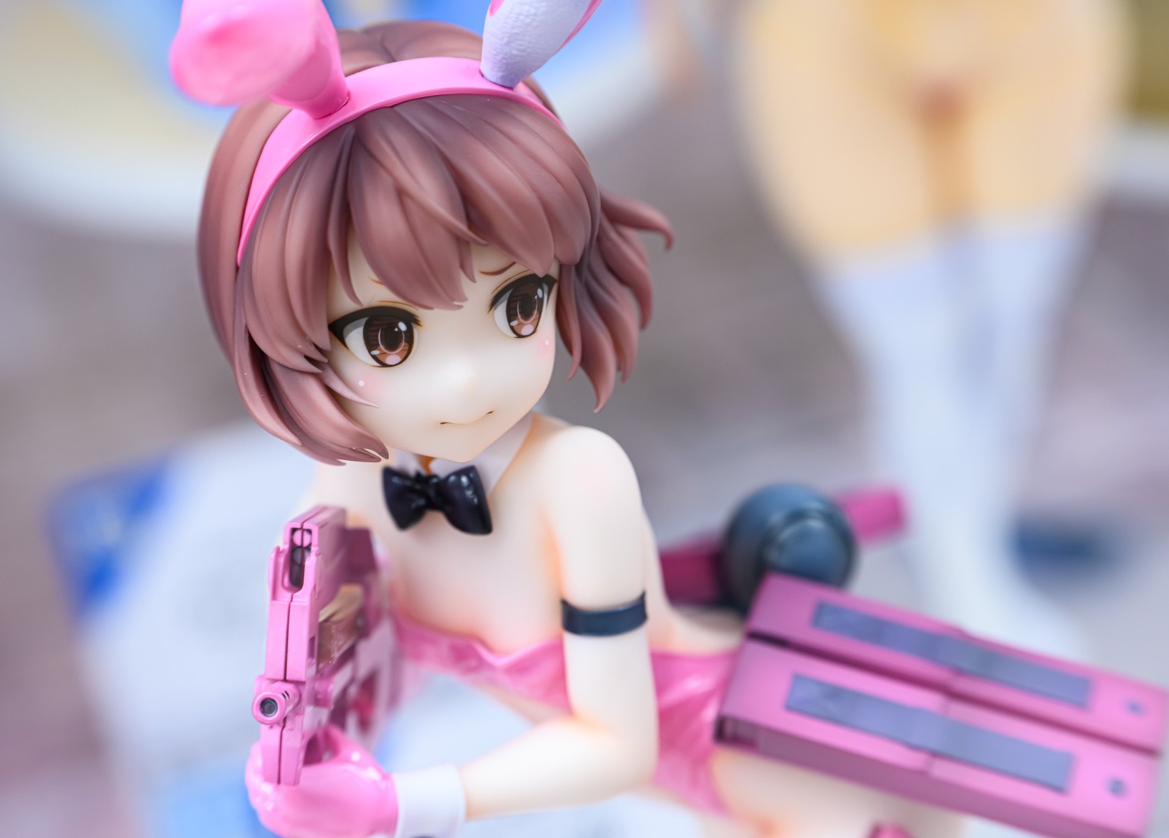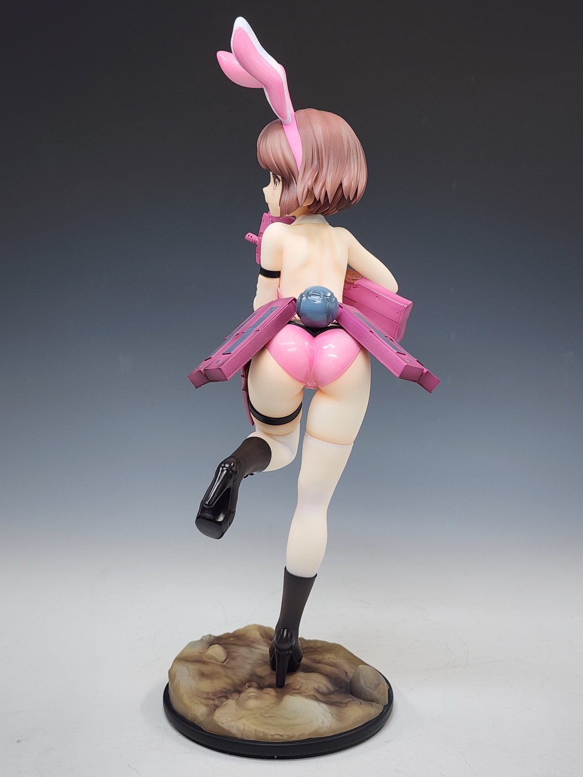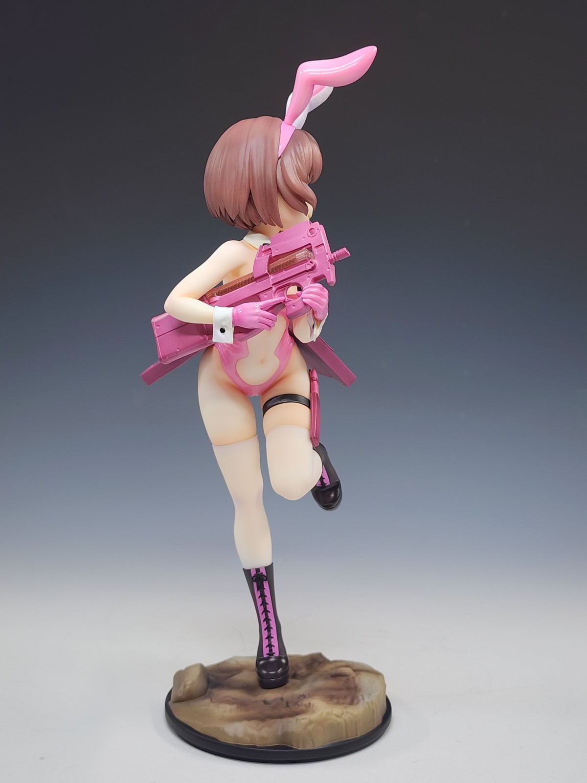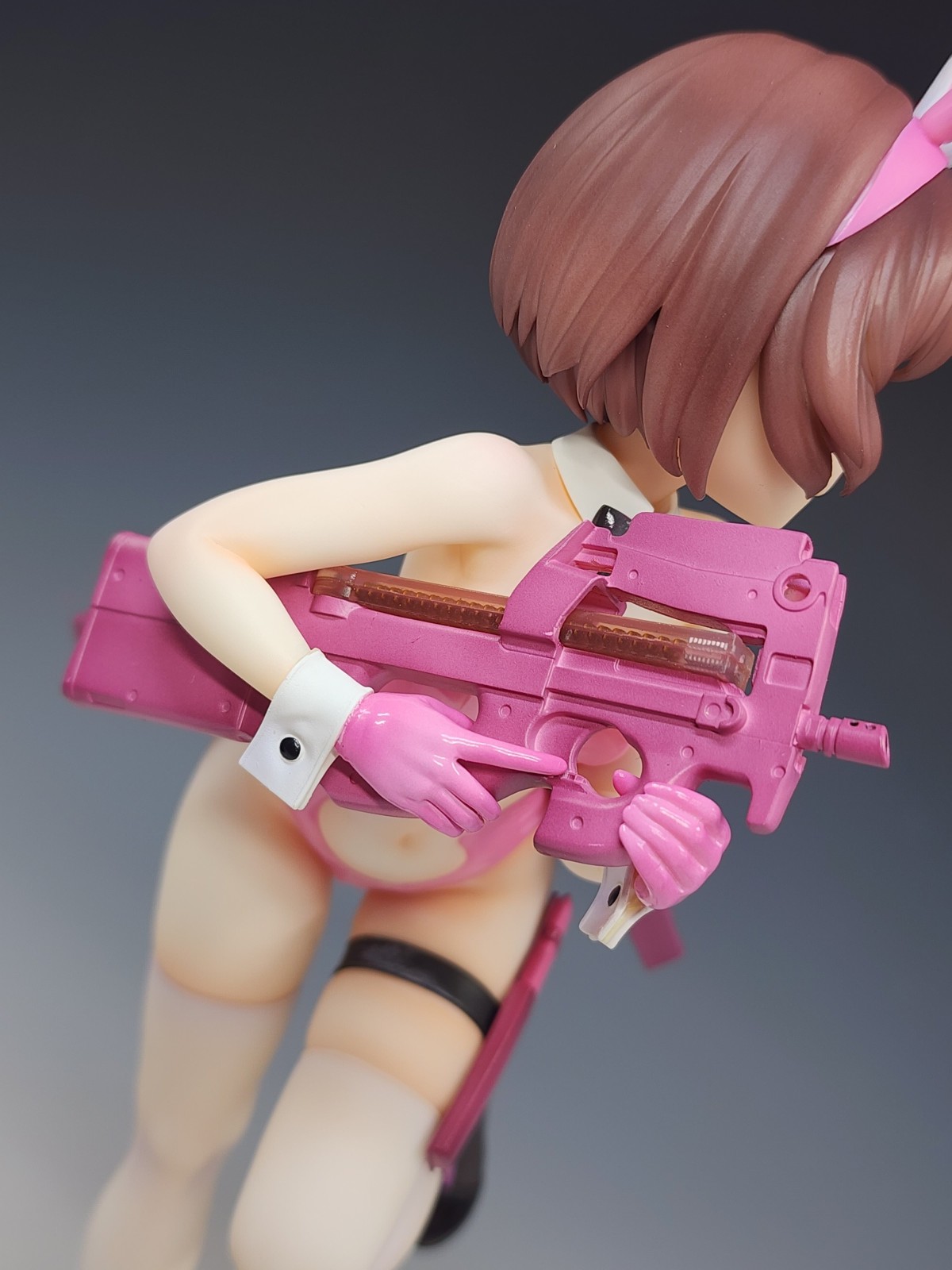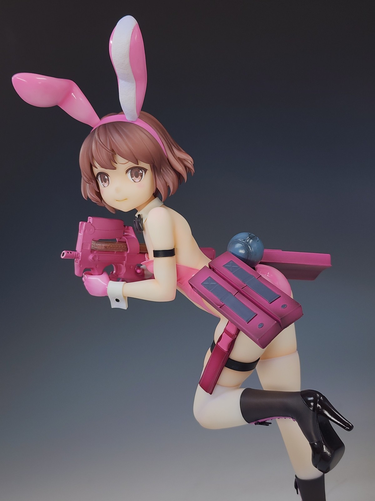 真是让人赏心悦目的原型呀,看了这个抽象原画才知道原型师有多发力,化腐朽为神奇。 兔女郎这种极端地强调身体曲线的装束,一般不是御姐这种自带前凸后翘的身材很难驾驭,而这体原型非常巧妙地利用角色设定腰部挂的弹夹和手上的P90整体营造了种前凸后翘的效果,这下子整体比例协调了曲线也有了,非常妙啊。 而且奔跑的姿势配上略带害羞的表情比起一般站姿,更有一种穿兔女郎打枪羞耻play的画面感。 像这样能够照顾到原设的特点进行兔女郎装束融合,这才是优秀的兔女郎化啊。