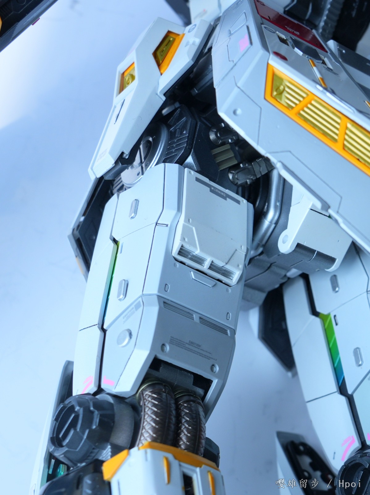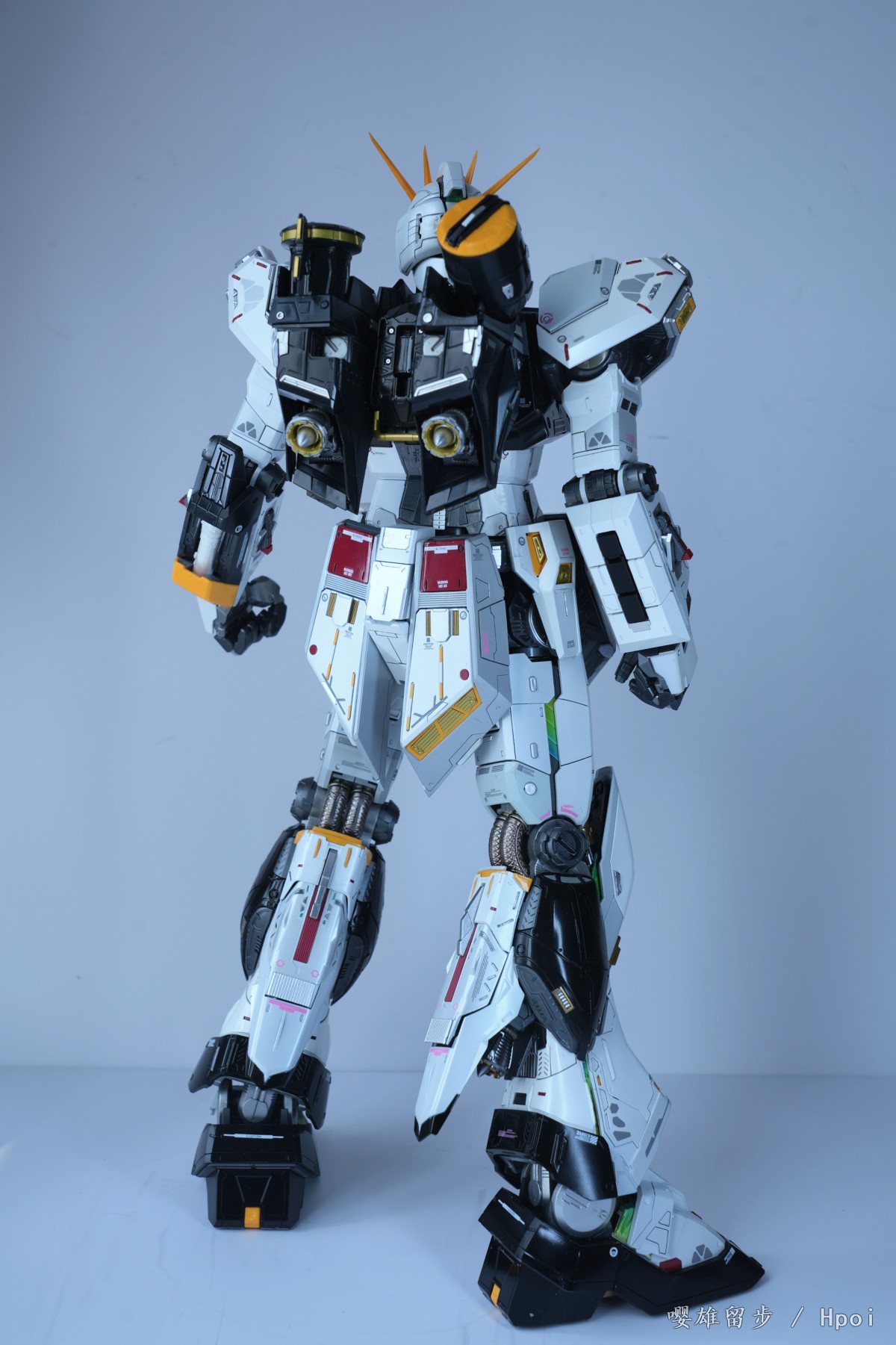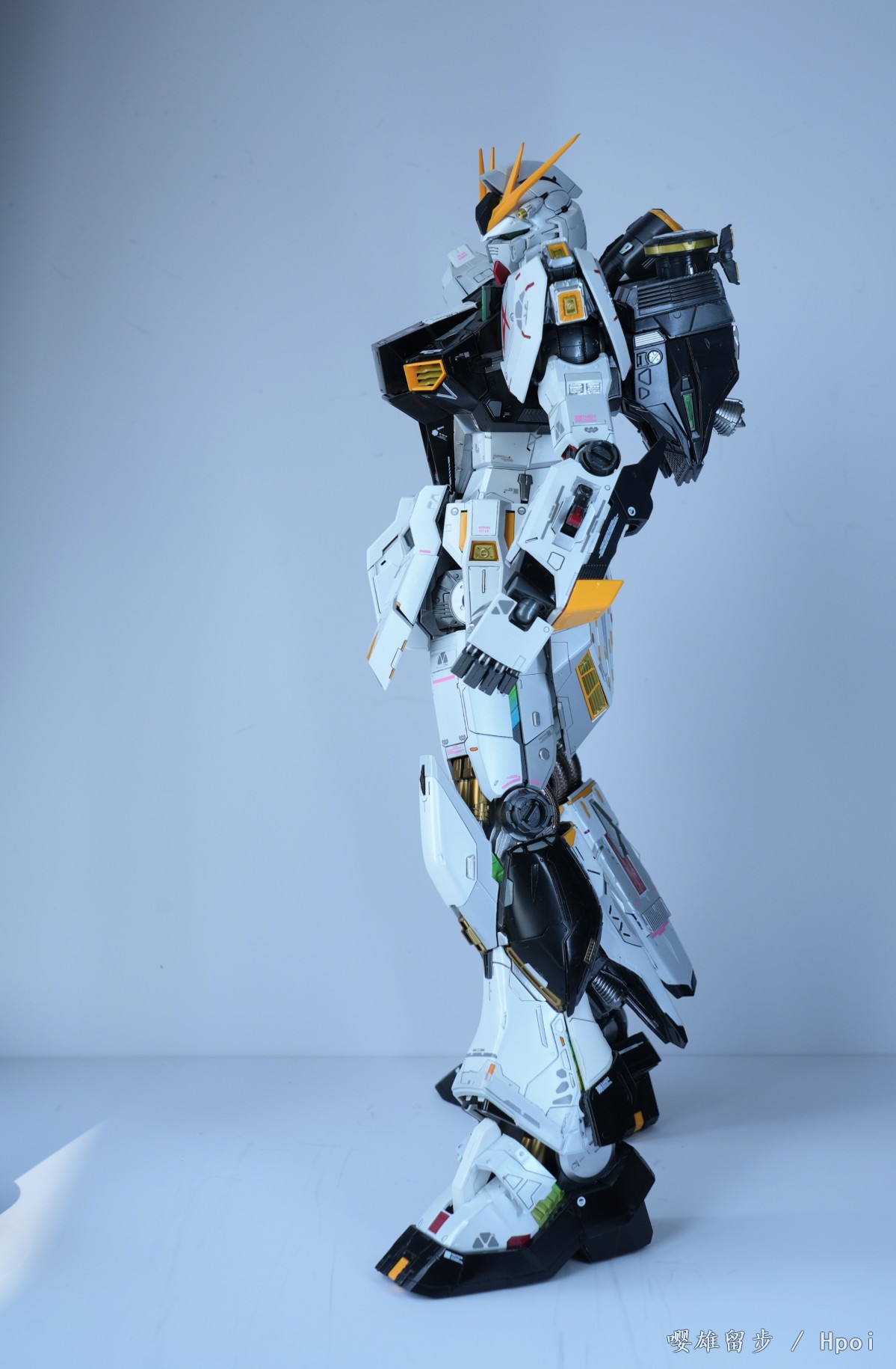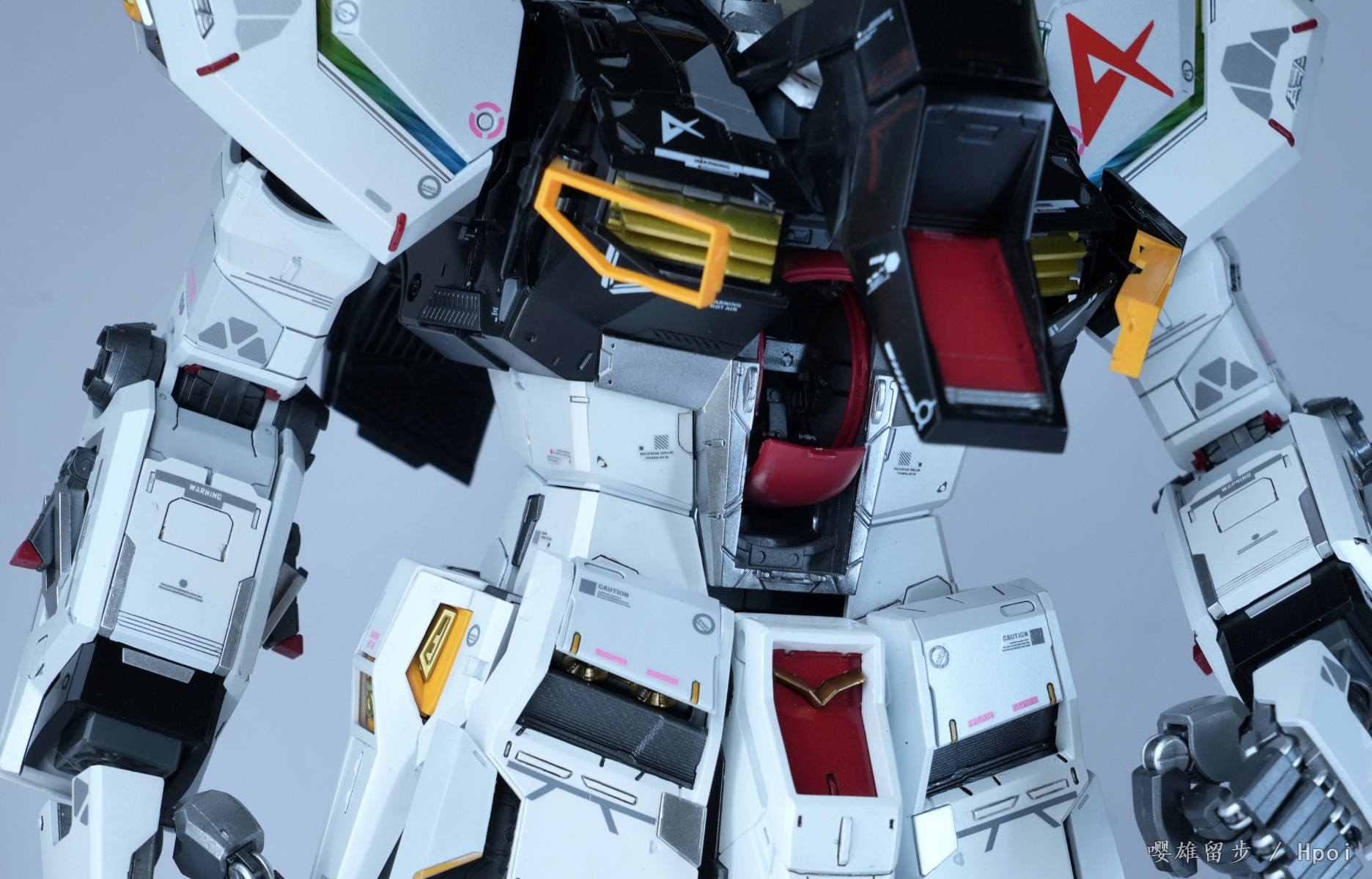 从24年10月底陆陆续续催到25年4月底。第一次见面就说了这是我的心愿希望找同城的认真对待,对方也说一定会好好做还给我看了作品,聊得也很投缘。在当天付了2千代工费后,因为考虑以后不太会喷涂了,把价值两三千的漆料喷漆工具直接送给了对方,还把所有其他存的打磨钻孔推刀攒的水贴给对方用,只是希望能帮我完成这个做了一半的半成品,主体除了脚部和背包没有喷,其他都是一水的光泽漆面,所有能走线分色的我都做了,剩余大的工作量应该是在浮游炮和地台。算下来我给了5千左右的成本应该会好好做吧。