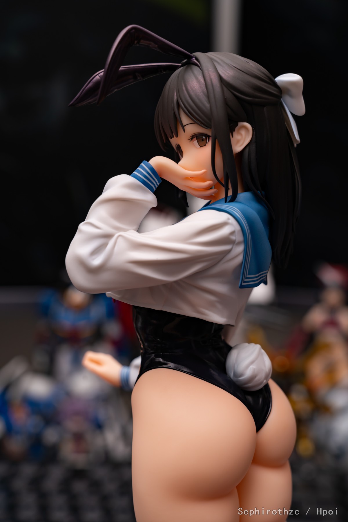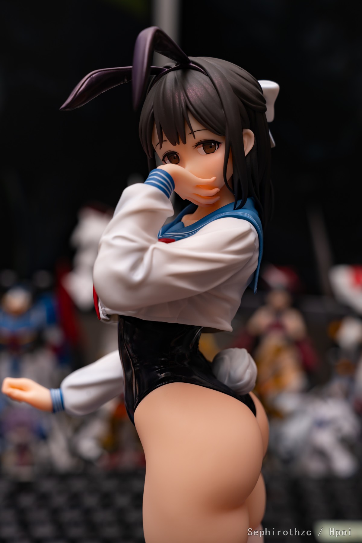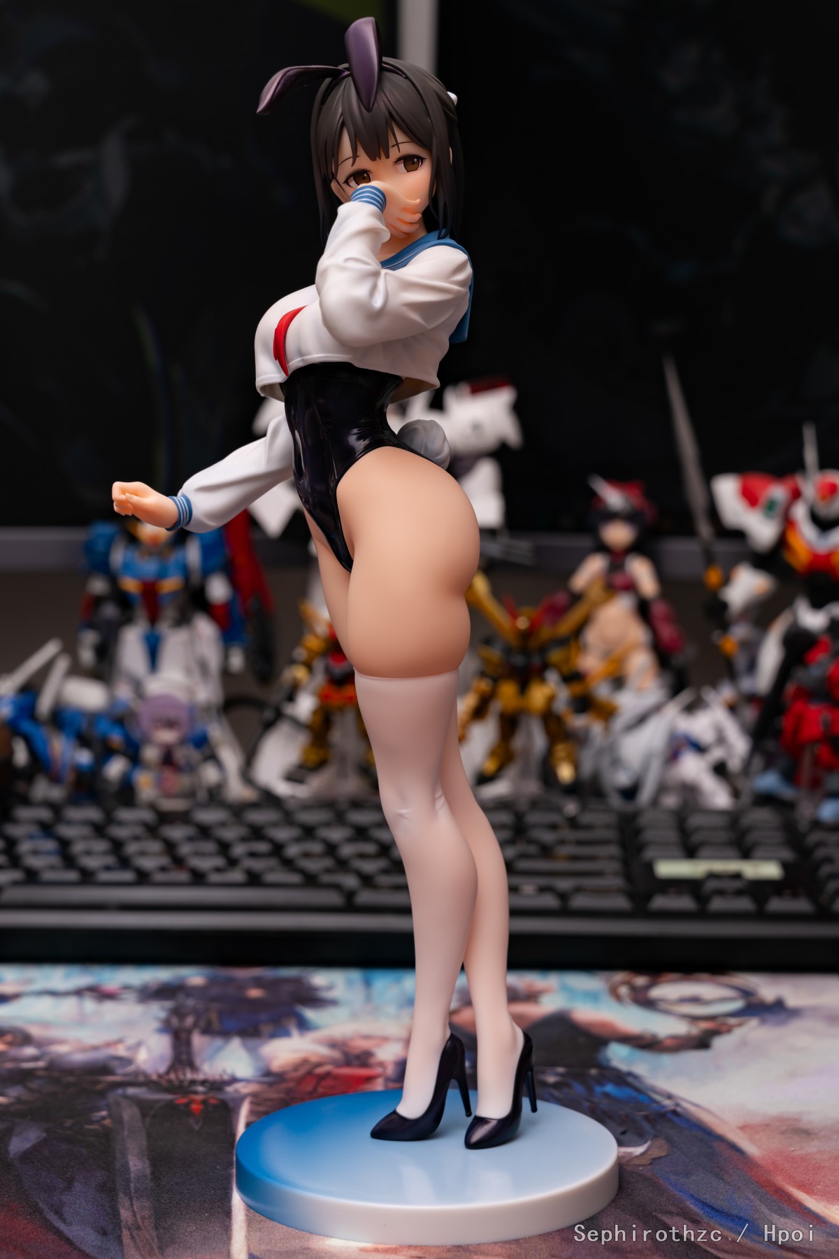 期待了很久的这只水手服兔女郎终于到手了!pp太肥美了,舔舔! 这只脸非常可爱,虽然用手挡住了不过嘴巴的刻画也一点都不含糊(可惜照片不太好拍出来)。最让人印象深刻的是这只兔女郎的涂装质量离谱的好,在市场上别家都在阉割涂装细节卷低价,把手办做成景品的现在,这只在保持低价的同时涂装质量居然完全没有阉割的迹象。身体各个部位都有高光和阴影涂装,而且头发和兔女郎衣服处还使用了一层珠光色来提高质感,丝袜和上衣甚至有涂出透肉感,效果非常好(隔壁那个把丝袜涂成秋裤的好好学学),总之非常推荐入手!
