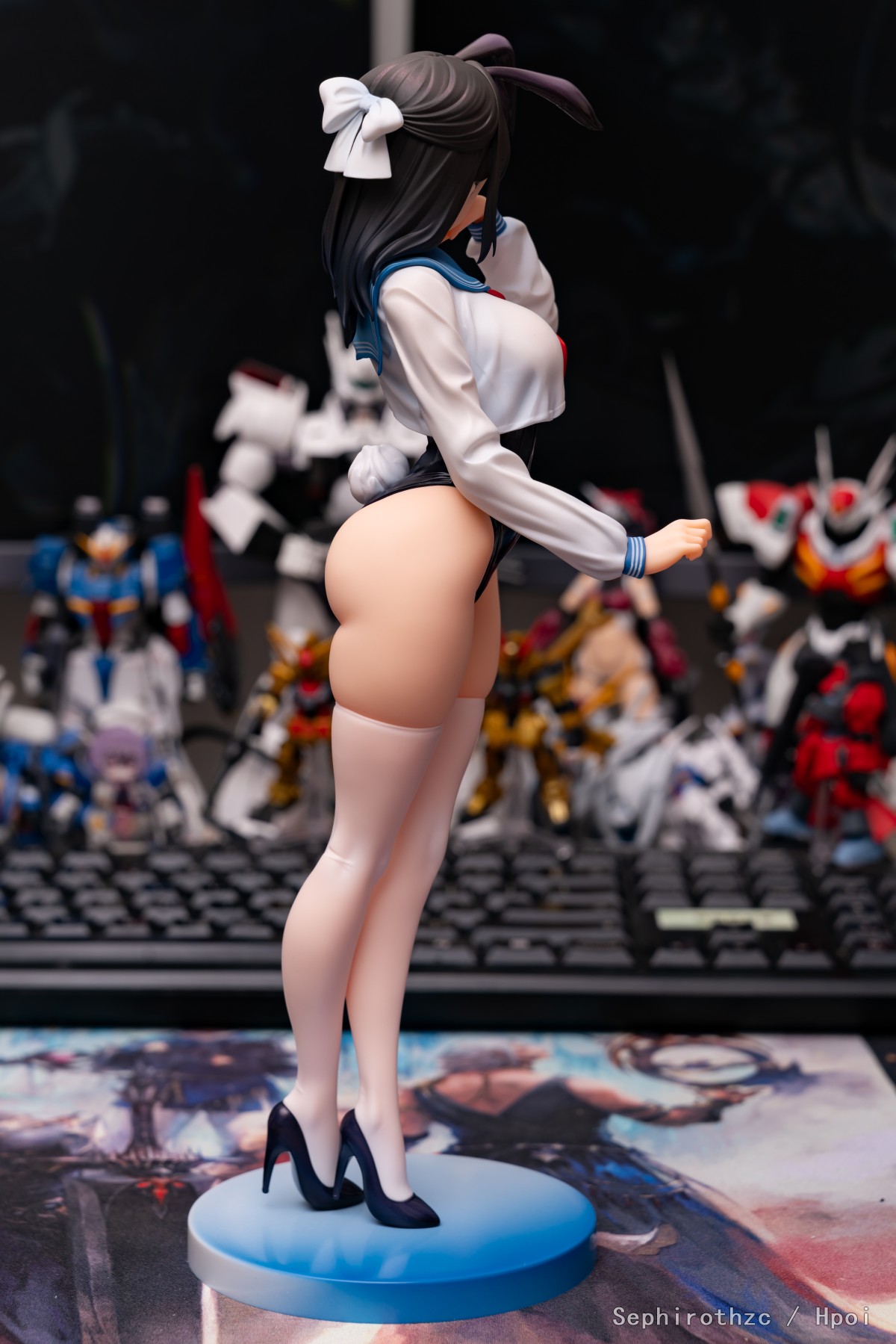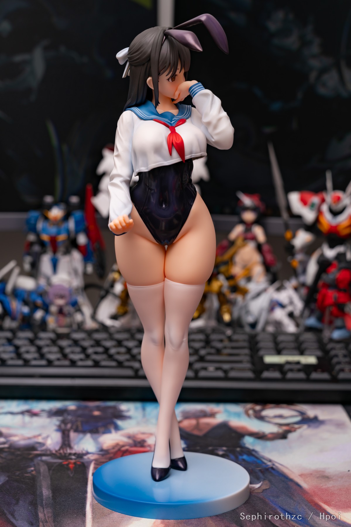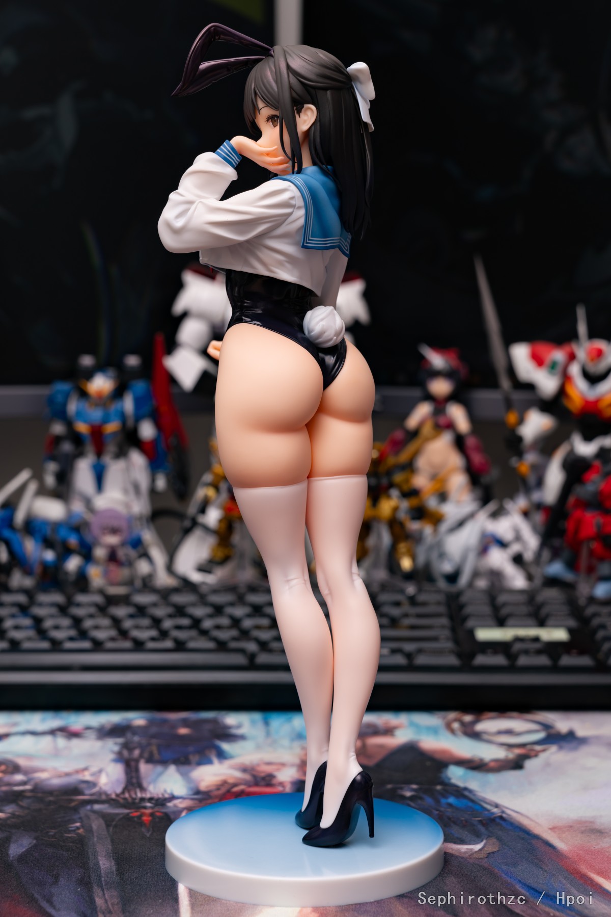期待了很久的这只水手服兔女郎终于到手了!pp太肥美了,舔舔! 这只脸非常可爱,虽然用手挡住了不过嘴巴的刻画也一点都不含糊(可惜照片不太好拍出来)。最让人印象深刻的是这只兔女郎的涂装质量离谱的好,在市场上别家都在阉割涂装细节卷低价,把手办做成景品的现在,这只在保持低价的同时涂装质量居然完全没有阉割的迹象。身体各个部位都有高光和阴影涂装,而且头发和兔女郎衣服处还使用了一层珠光色来提高质感,丝袜和上衣甚至有涂出透肉感,效果非常好(隔壁那个把丝袜涂成秋裤的好好学学),总之非常推荐入手!