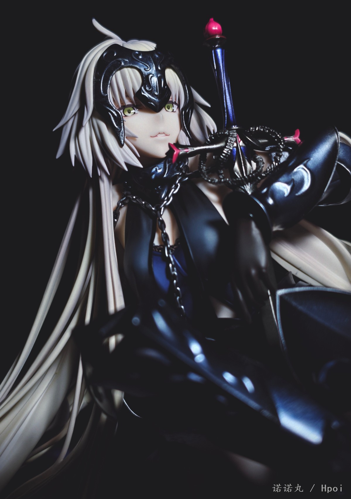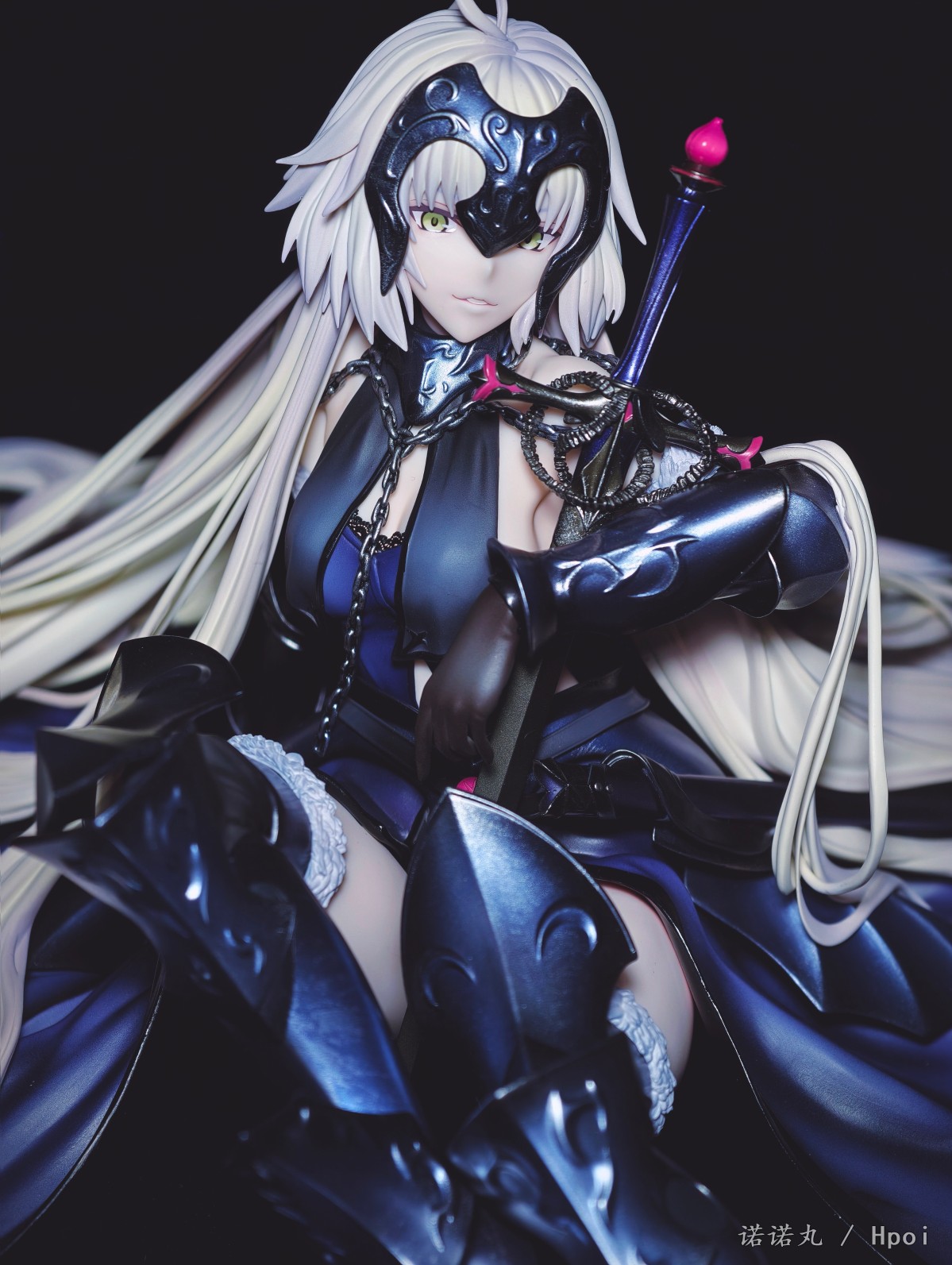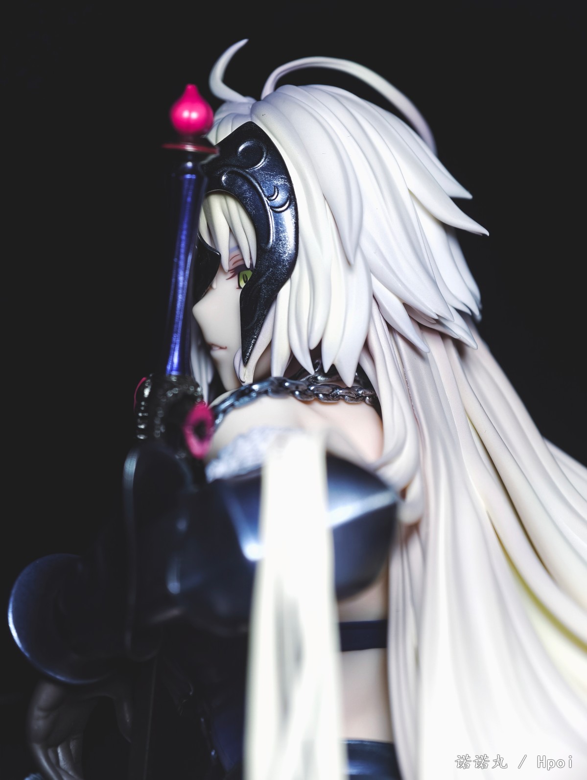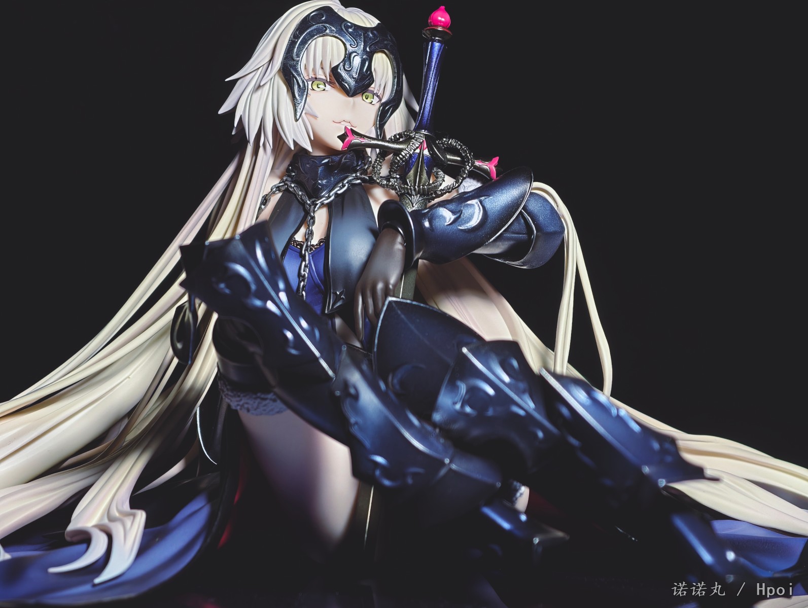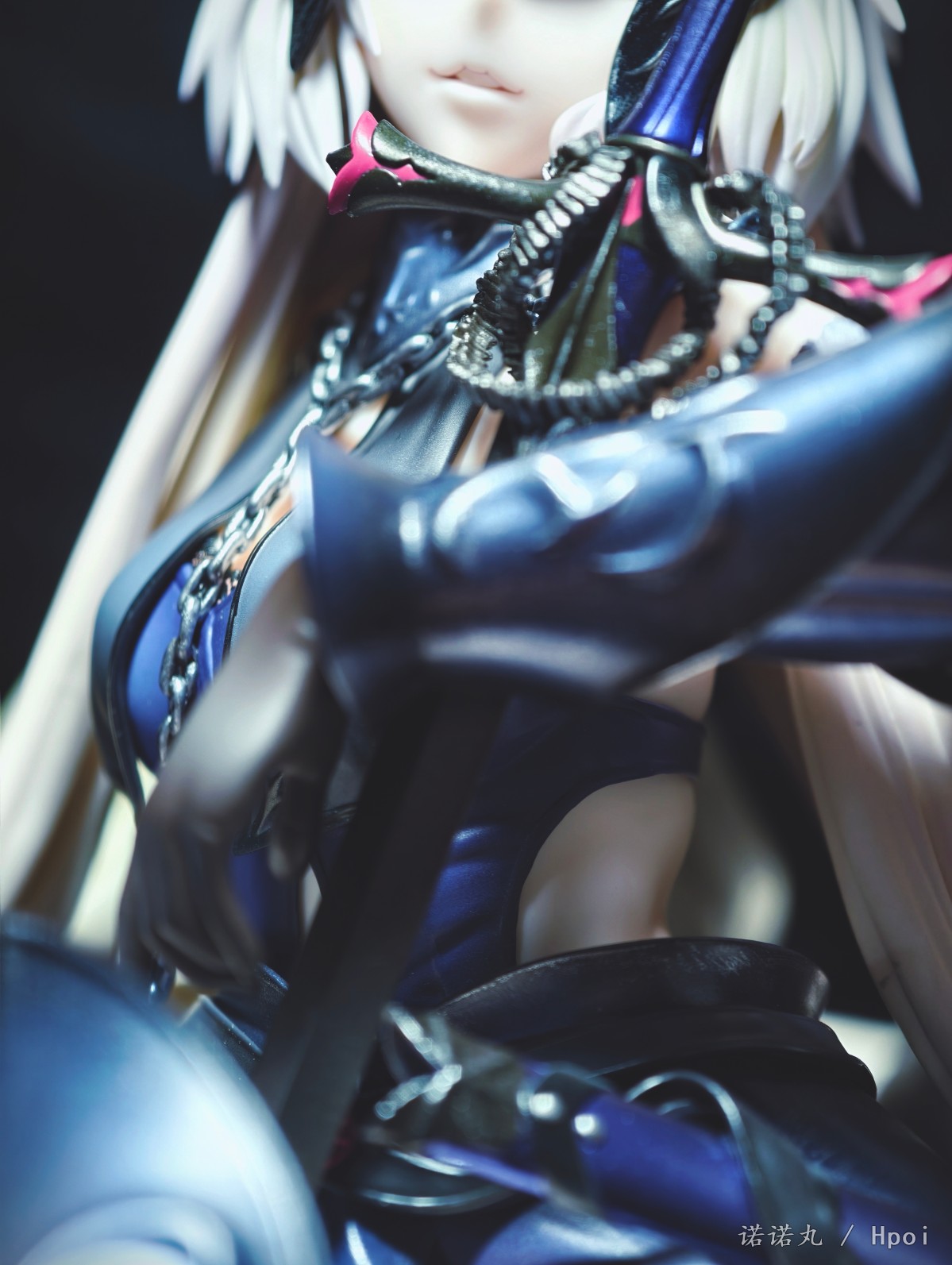 这次的坐姿黑贞作为三破状态,摊开在地上可以说确实是好大一盘。我也按照满破图的配色调了下色,黑贞三破状态下整体突出的邪魅风格被Alter拿捏的很好,礼服和装甲的涂装相得益彰,整体也透出一种淡淡的慵懒感,长嘴角一开始看有些奇怪,但最后还是看顺眼了,并且在看侧脸的时候有奇妙加成。而三破最为性感的地方其实是裸背,Alter做出了非常漂亮的后背,但因为设计,整个黑贞的背部和上次的大凤一样被挡了个严严实实,欣赏且不说,拍照几乎是难于登天,不过这一次在背后一束头发给了一个较大的活动范围,让人可以通过掀窗帘一样掰开来欣赏一下,不过最好还是不要经常这么做。