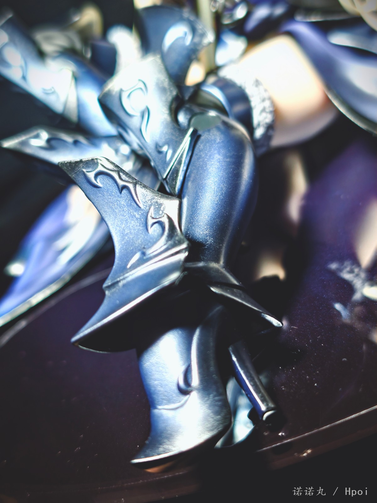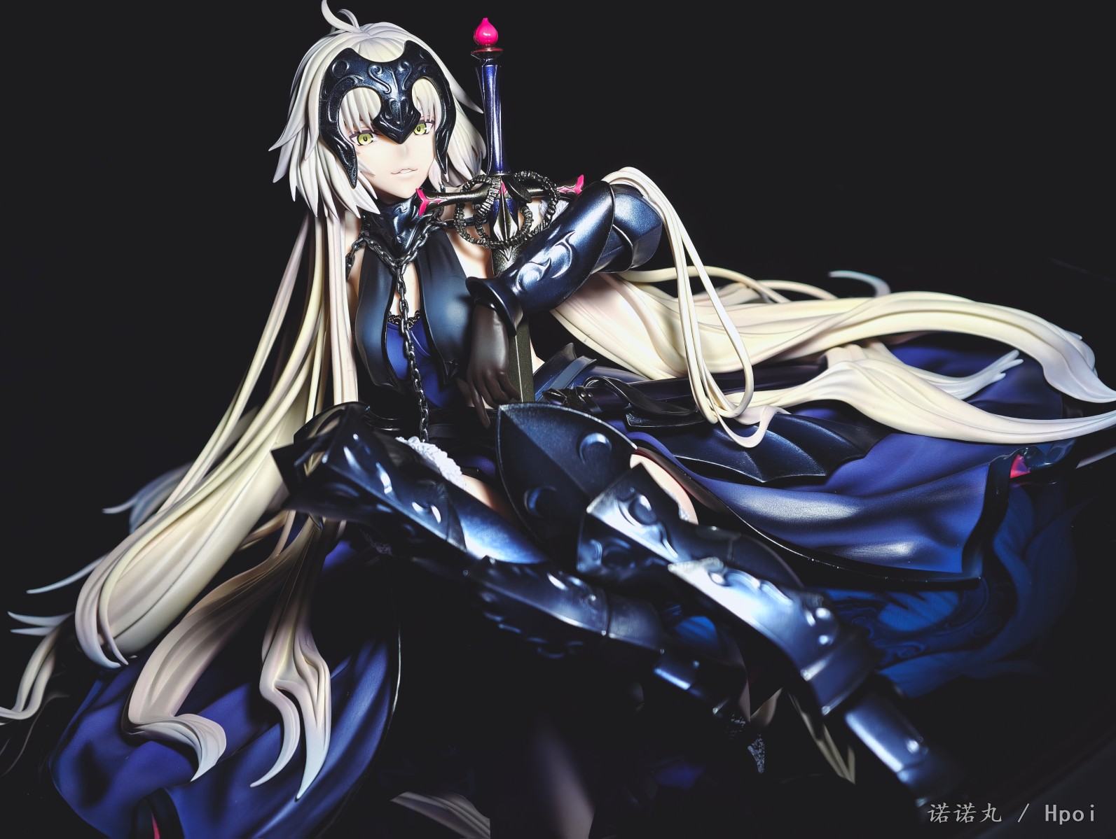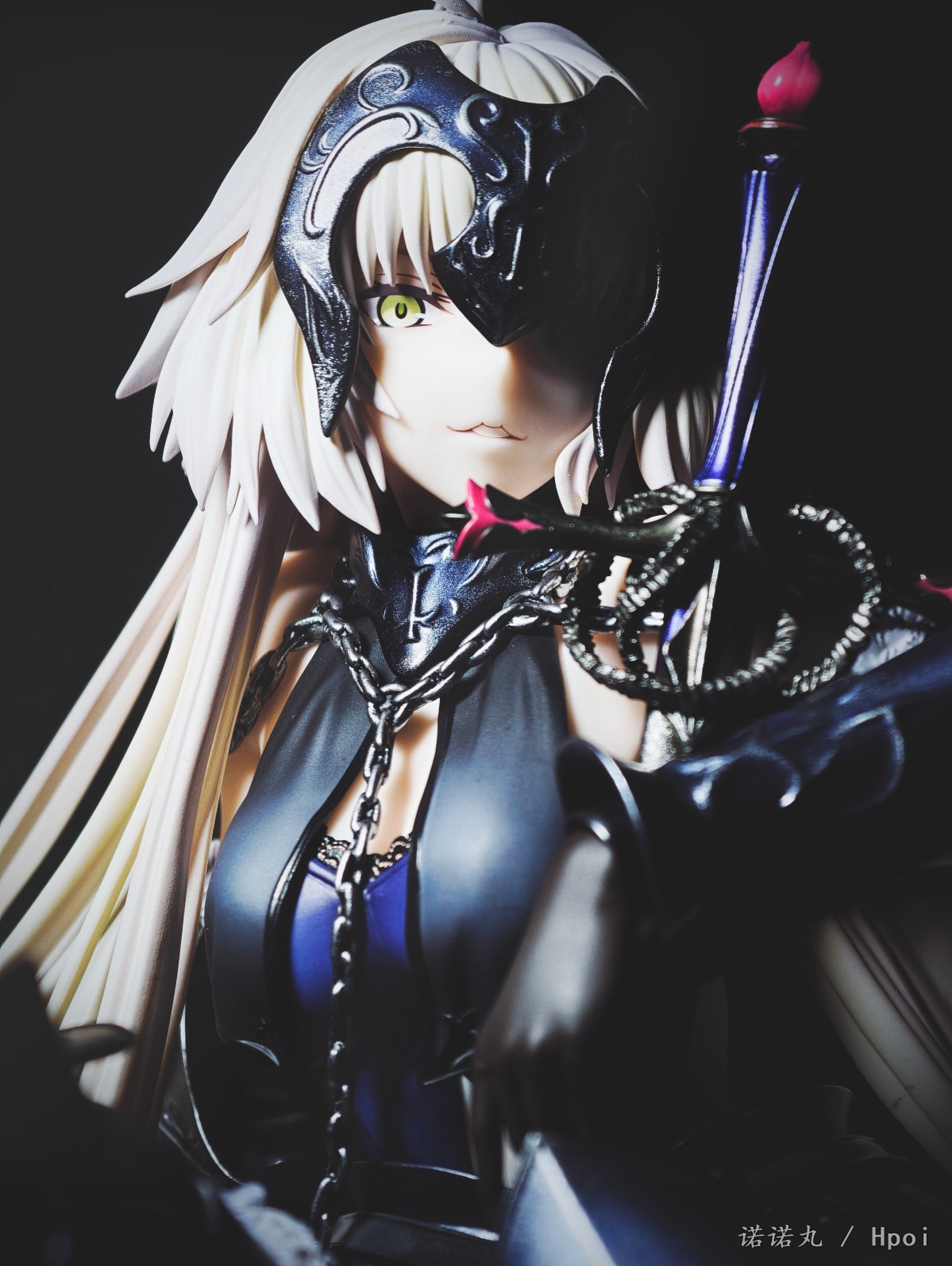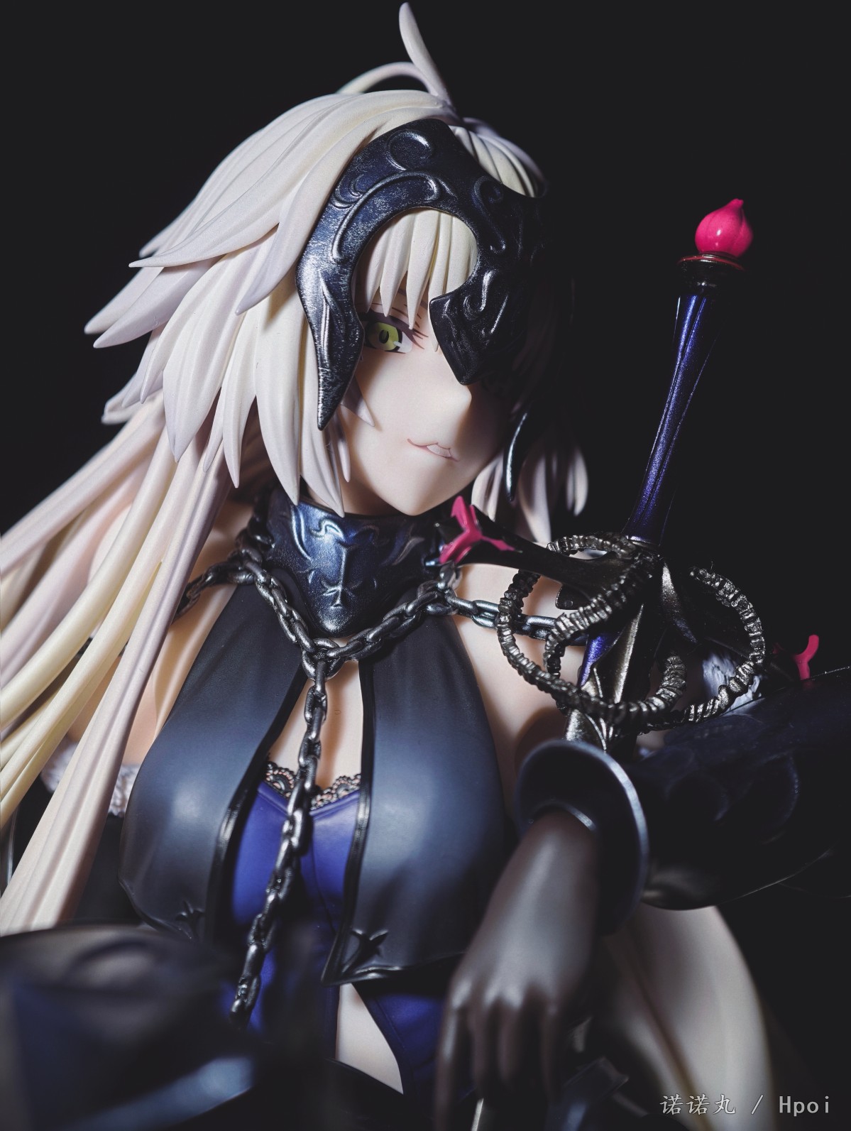 这次的坐姿黑贞作为三破状态,摊开在地上可以说确实是好大一盘。我也按照满破图的配色调了下色,黑贞三破状态下整体突出的邪魅风格被Alter拿捏的很好,礼服和装甲的涂装相得益彰,整体也透出一种淡淡的慵懒感,长嘴角一开始看有些奇怪,但最后还是看顺眼了,并且在看侧脸的时候有奇妙加成。而三破最为性感的地方其实是裸背,Alter做出了非常漂亮的后背,但因为设计,整个黑贞的背部和上次的大凤一样被挡了个严严实实,欣赏且不说,拍照几乎是难于登天,不过这一次在背后一束头发给了一个较大的活动范围,让人可以通过掀窗帘一样掰开来欣赏一下,不过最好还是不要经常这么做。