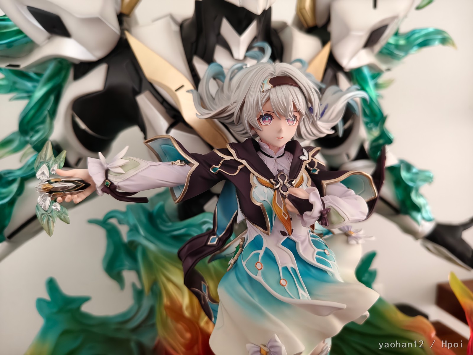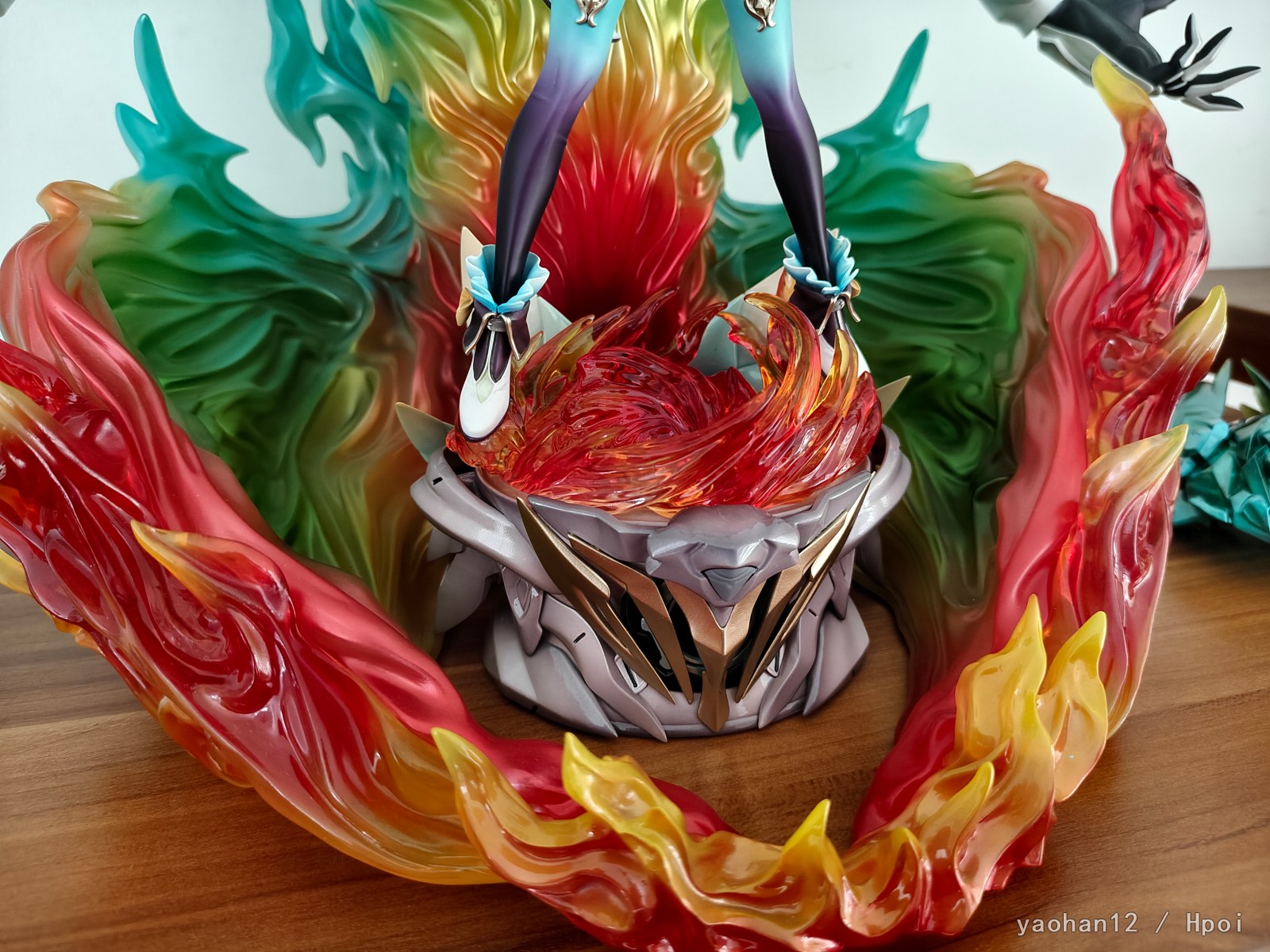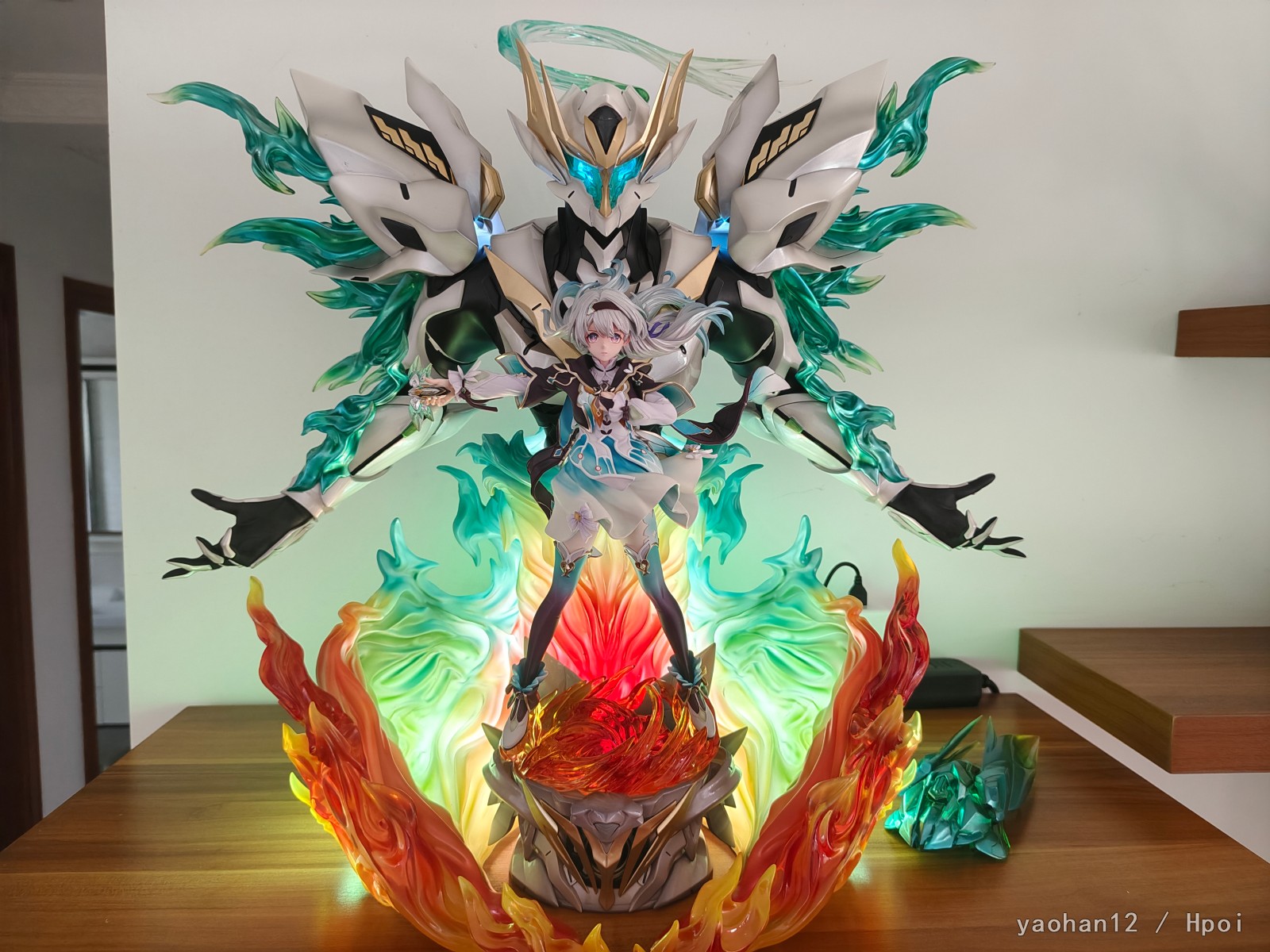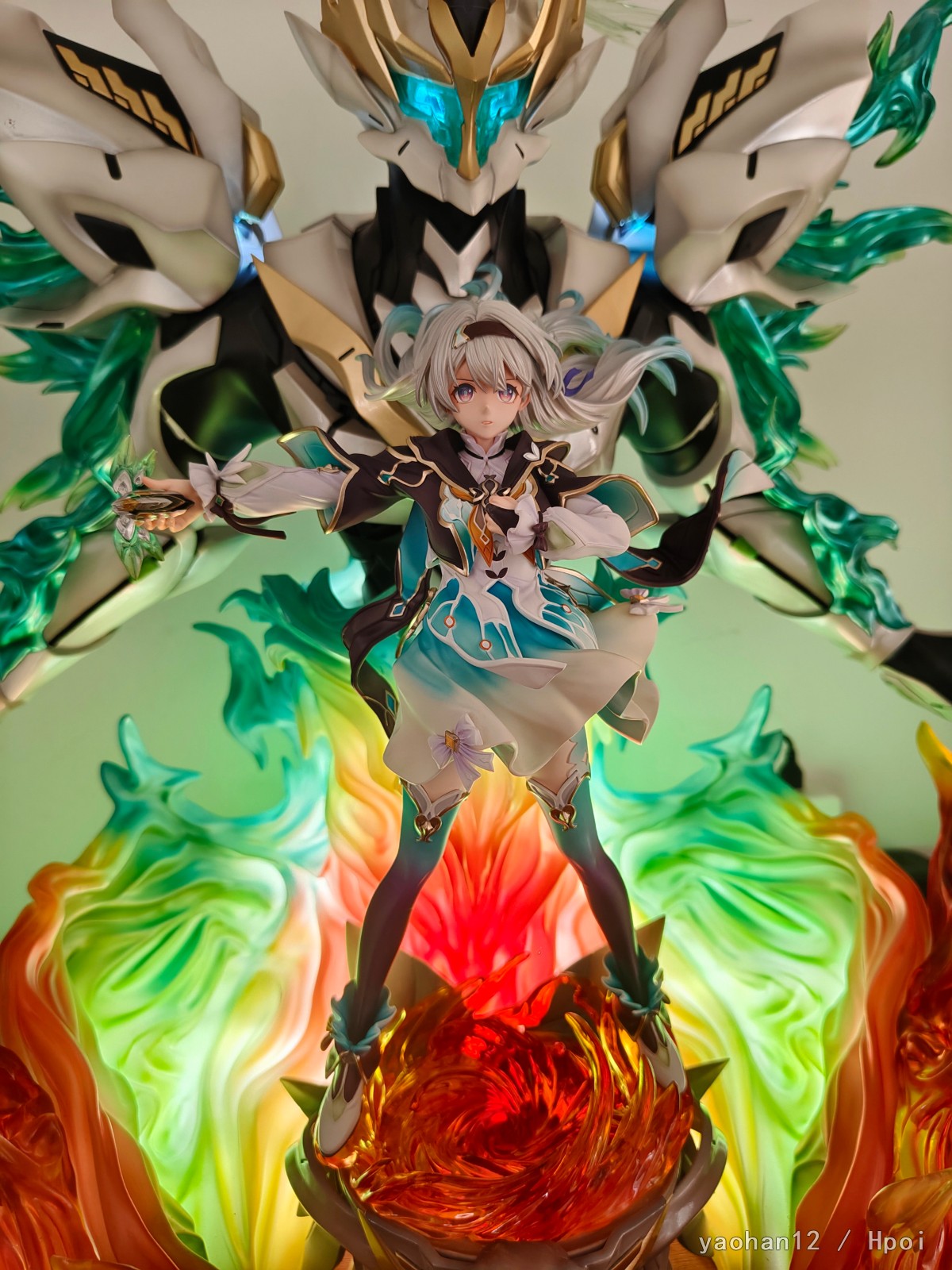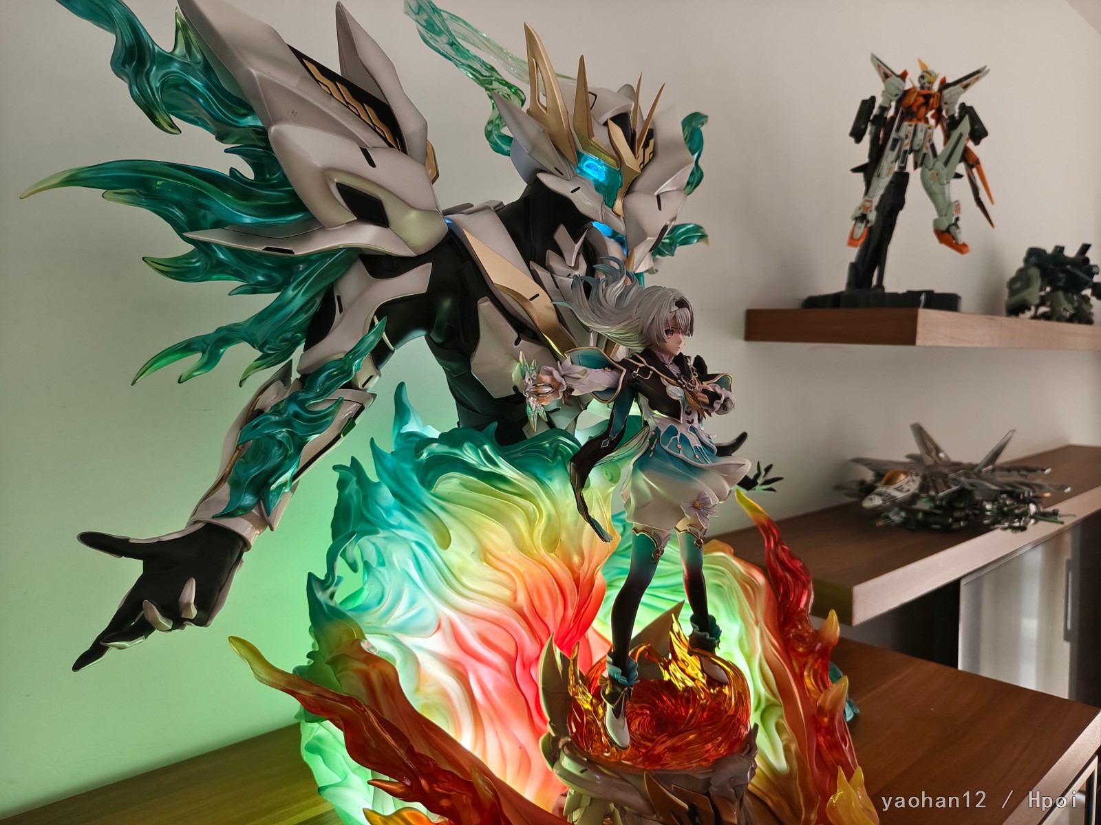 米一直不给流萤出手办我也不知道是怎么回事,只有一个企划还一直拖着多半是凉了。而且带萨姆的基本上是不可能见到了,只能转望GK。YY这家的基本上是市面上质量最高的双人GK了,虽然我不太喜欢这个魔改的萨姆造型但涂装确实还不错,另一家笠升的我也定了但是大货质量有点拉跨最后还是退了。整体体积相当大,很有魄力(运费也很有魄力),人脸是照着立绘做的所以跟建模有点区别但可以接受,有灯是加分项,人物地台是个亮点,是按照萨姆常态脑袋做的造型,挺好看的。虽然说近看还是有多多少少的问题,但这么大体积远看没毛病就完事了