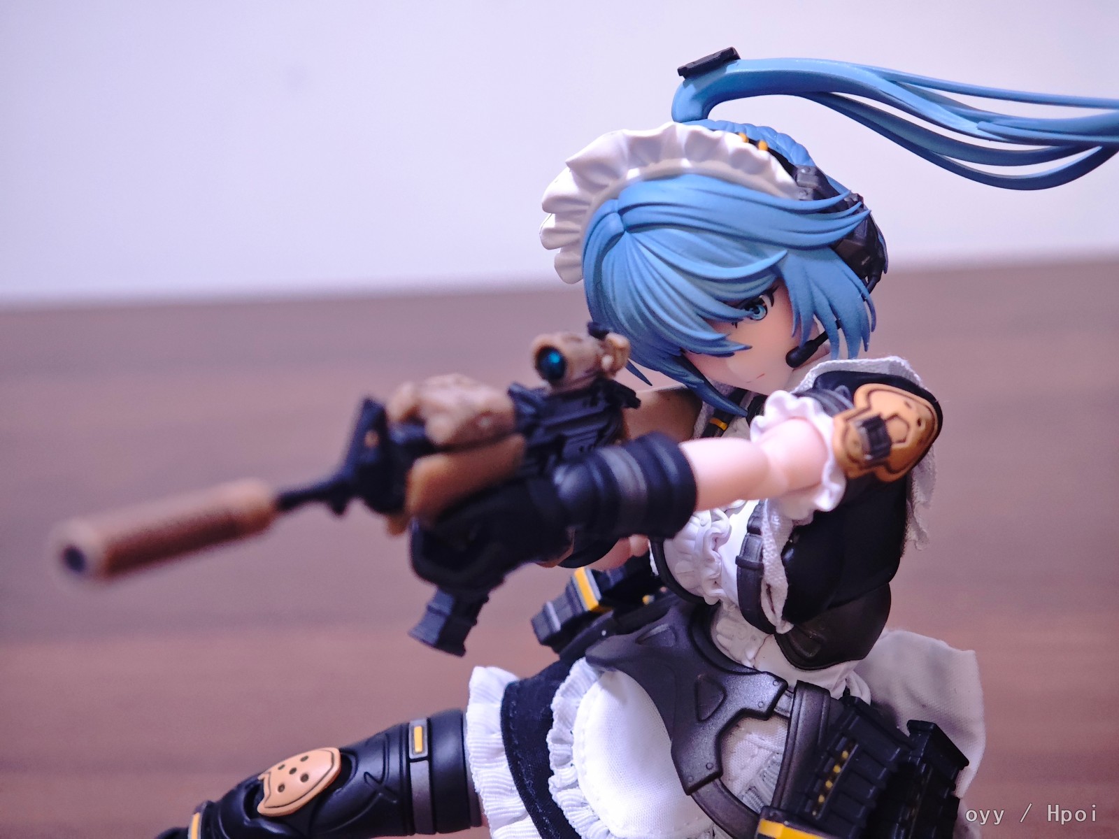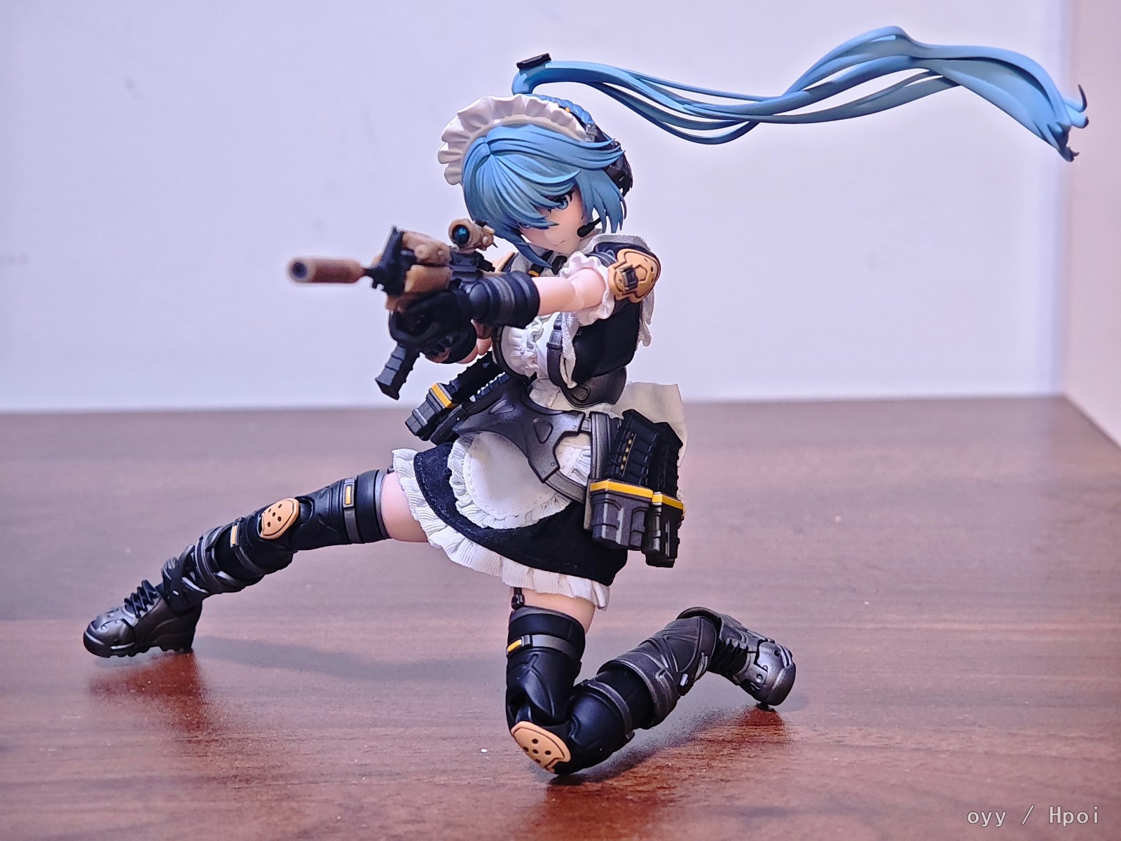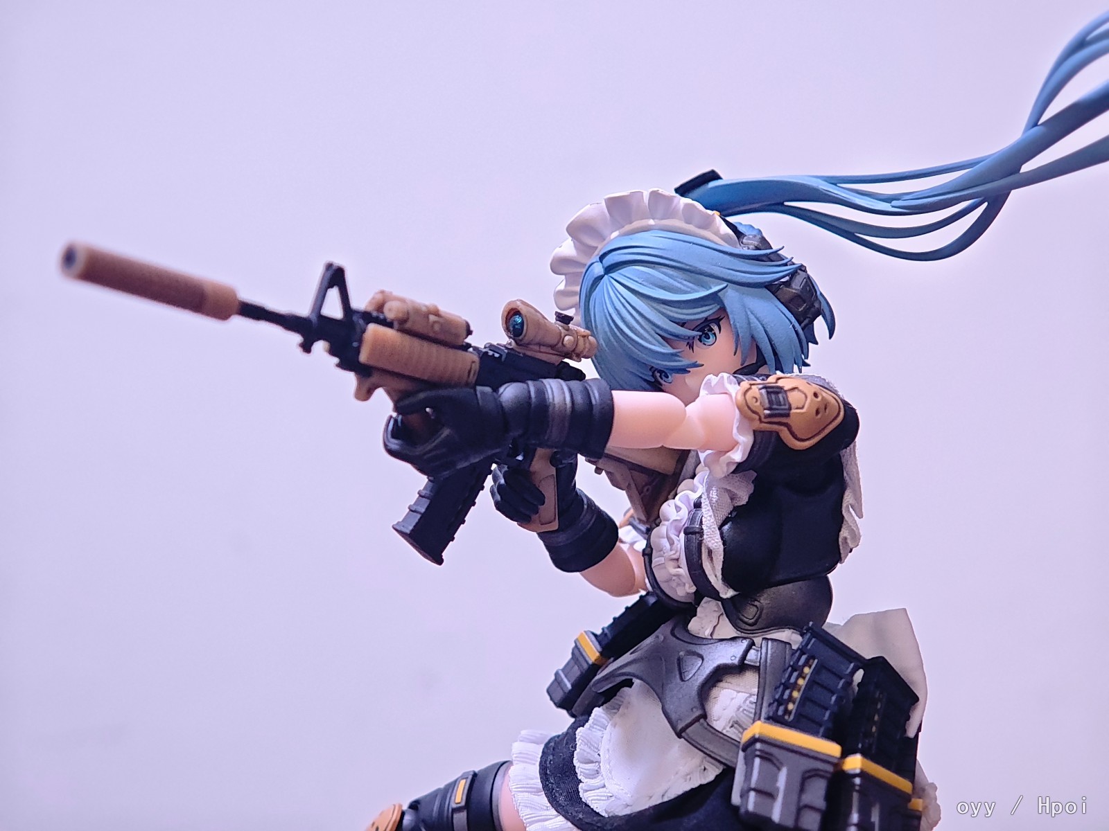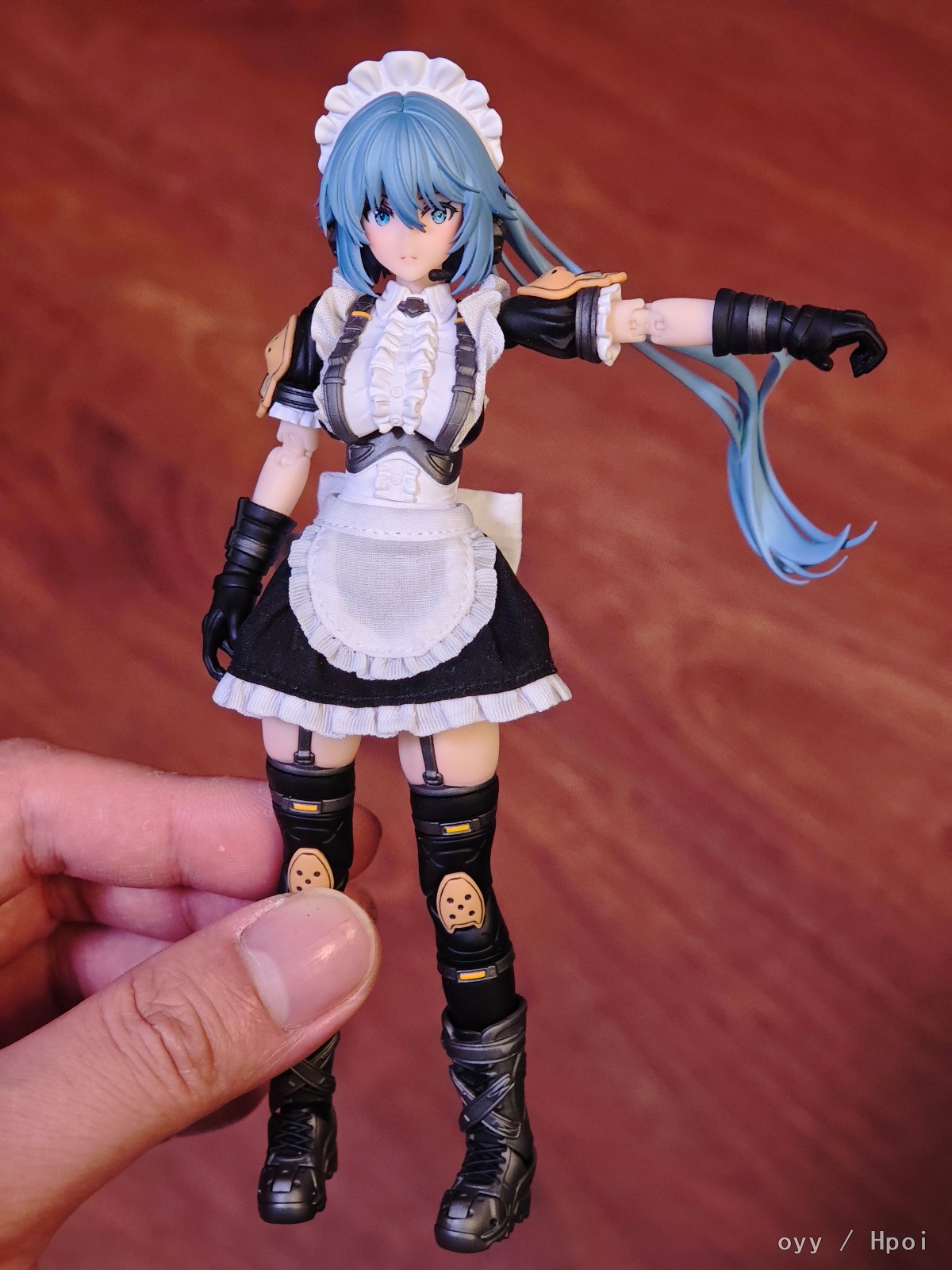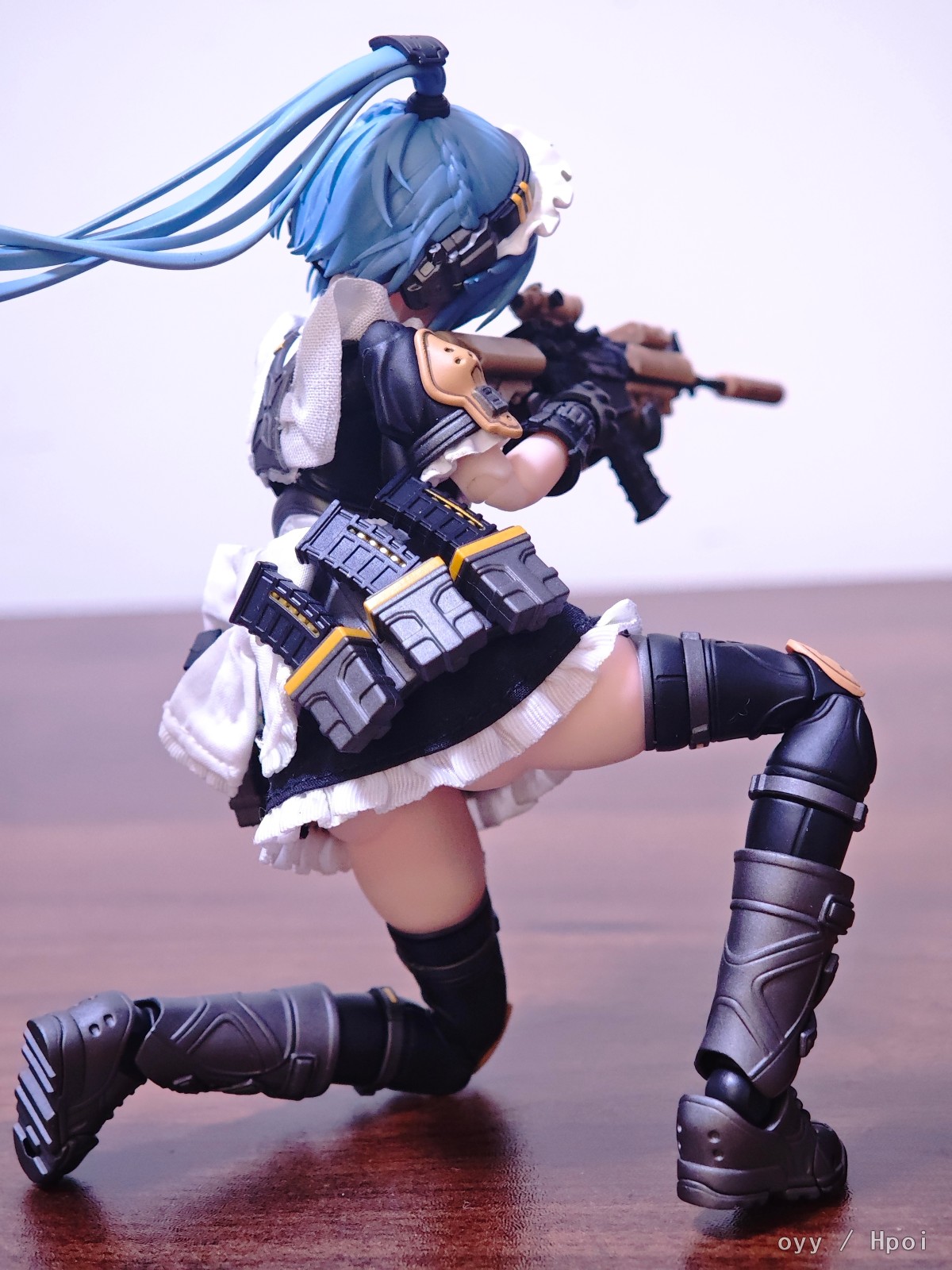 最后就是最妨碍可动的女仆服裙边了,我这里是直接做了切除自己粘布的,这个比较看个人手艺就没啥好说的了,最后是可动显示,差别可以自行对比。