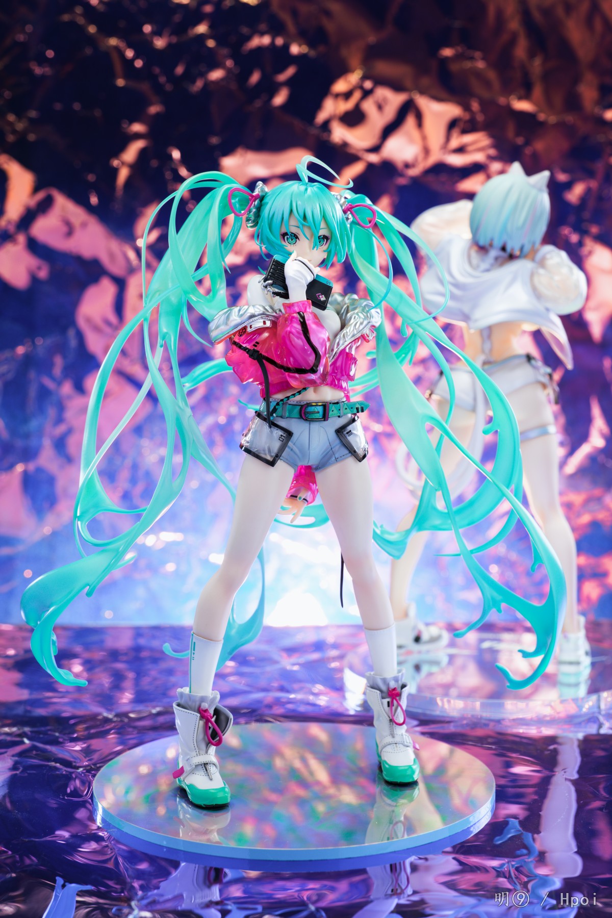 初音SOLWA 1/7 , 近未来猫又 1/6 .我给记错了,放一起拍才发现比例不一样