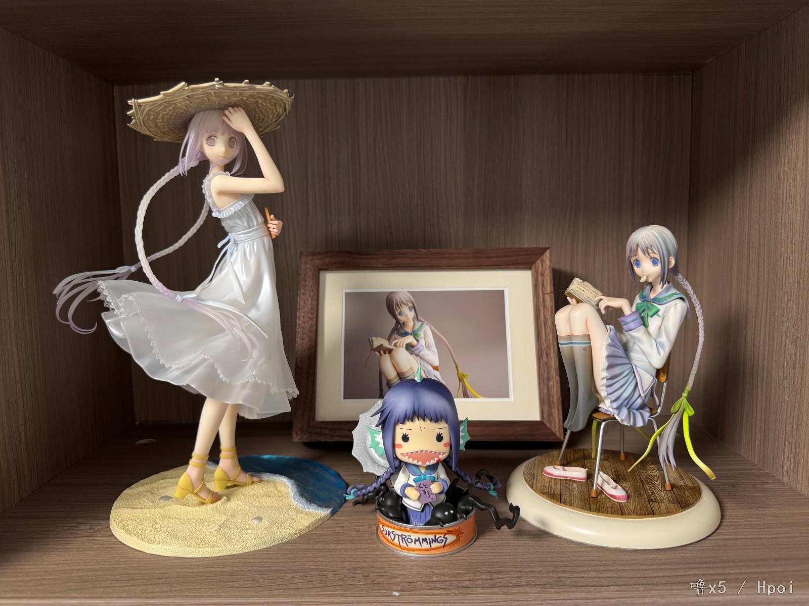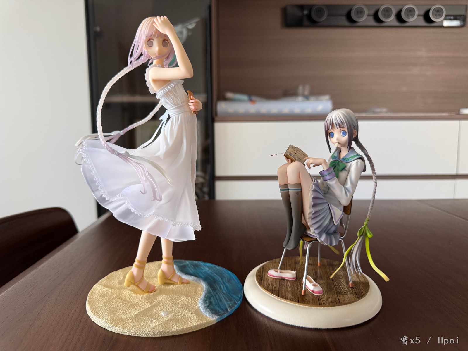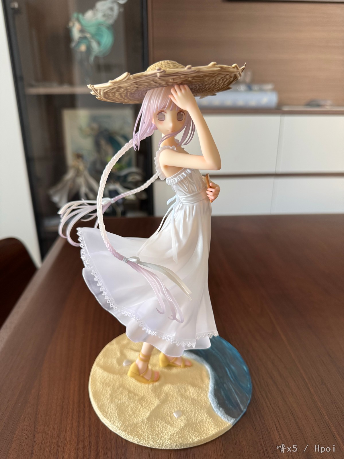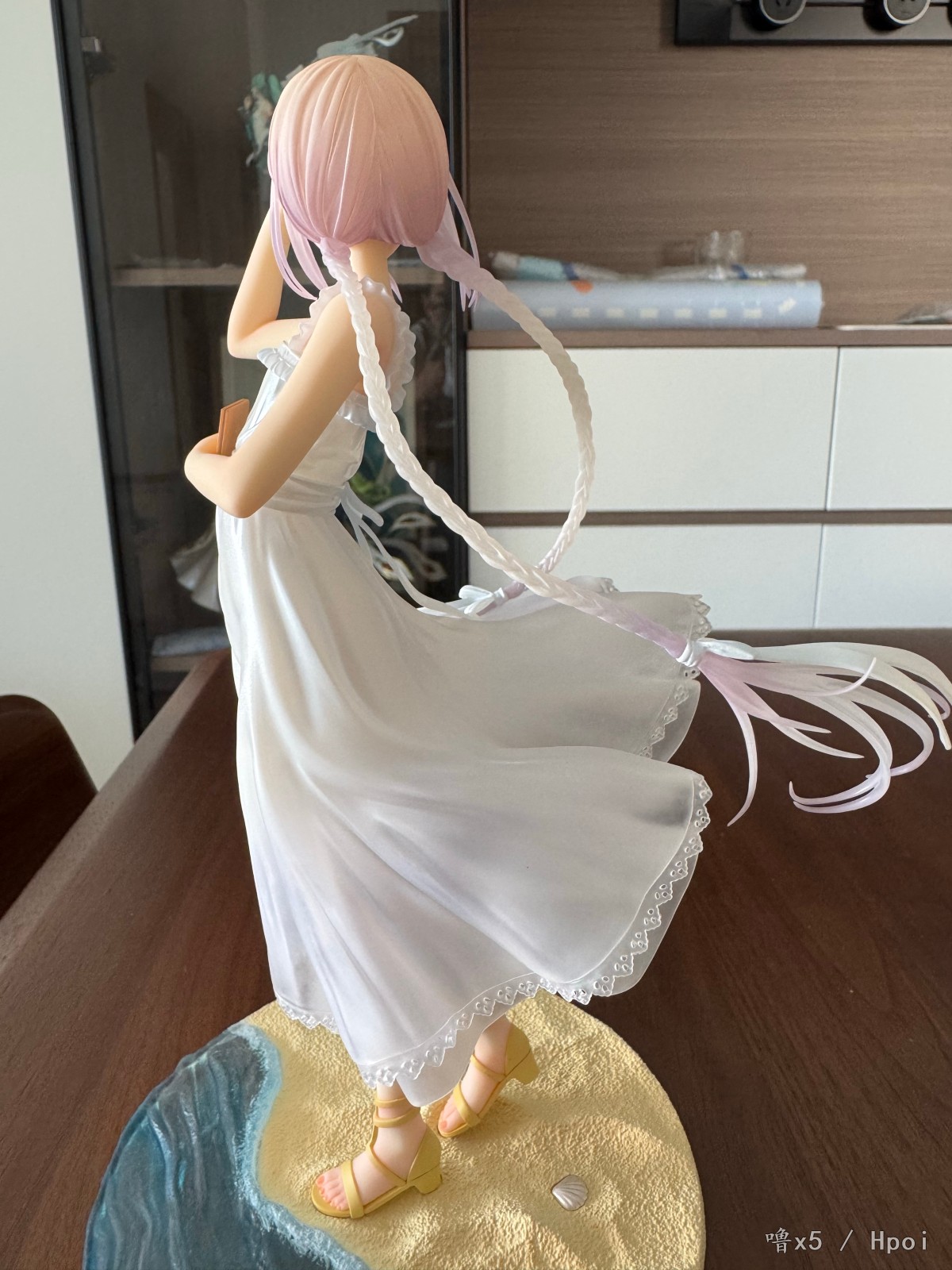有生之年能看到远子的手办,没有手办的角色遗憾又少一个,厂家做这种作品更多是圆梦和情怀,就这一点而言值得给厂家点个赞,我相信从再开始选图手办化就考虑了画师竹冈美穗水彩风格的原因,尽量选一个色彩不是特别多的原画进行手办化,不然涂装还原度绝对是最麻烦的地方,这款远子个人认为最出色的地方就是头发的过渡,头顶是浅黄色到发梢浅紫色的过渡,凸显海边阳光照下来那种感觉,拍照很上镜,而双马尾的部分则是白色往浅紫色进行过渡,与头部区分开来,而衣服则是很浅很浅的蓝色和紫色进行点缀,关节等地方的红温也不会涂的很突兀,至于很多人说的眼睛比官图要大,我个人认为是属实的,虽然不影响实物的可爱,但对喜欢官图那个大小的人来说,确实是很难受,最后附上入柜照!