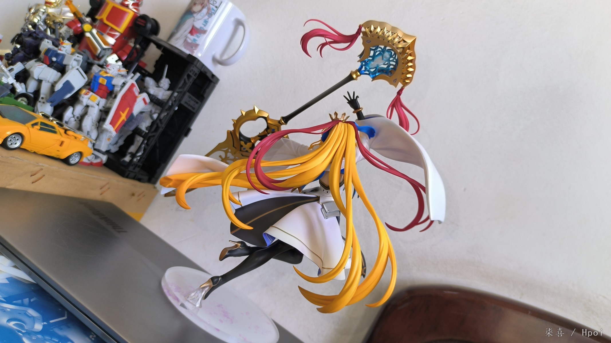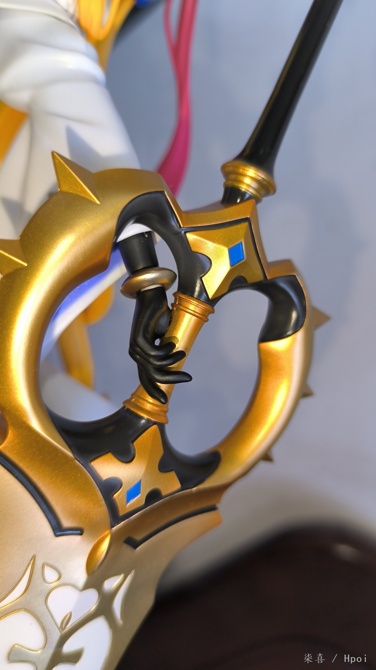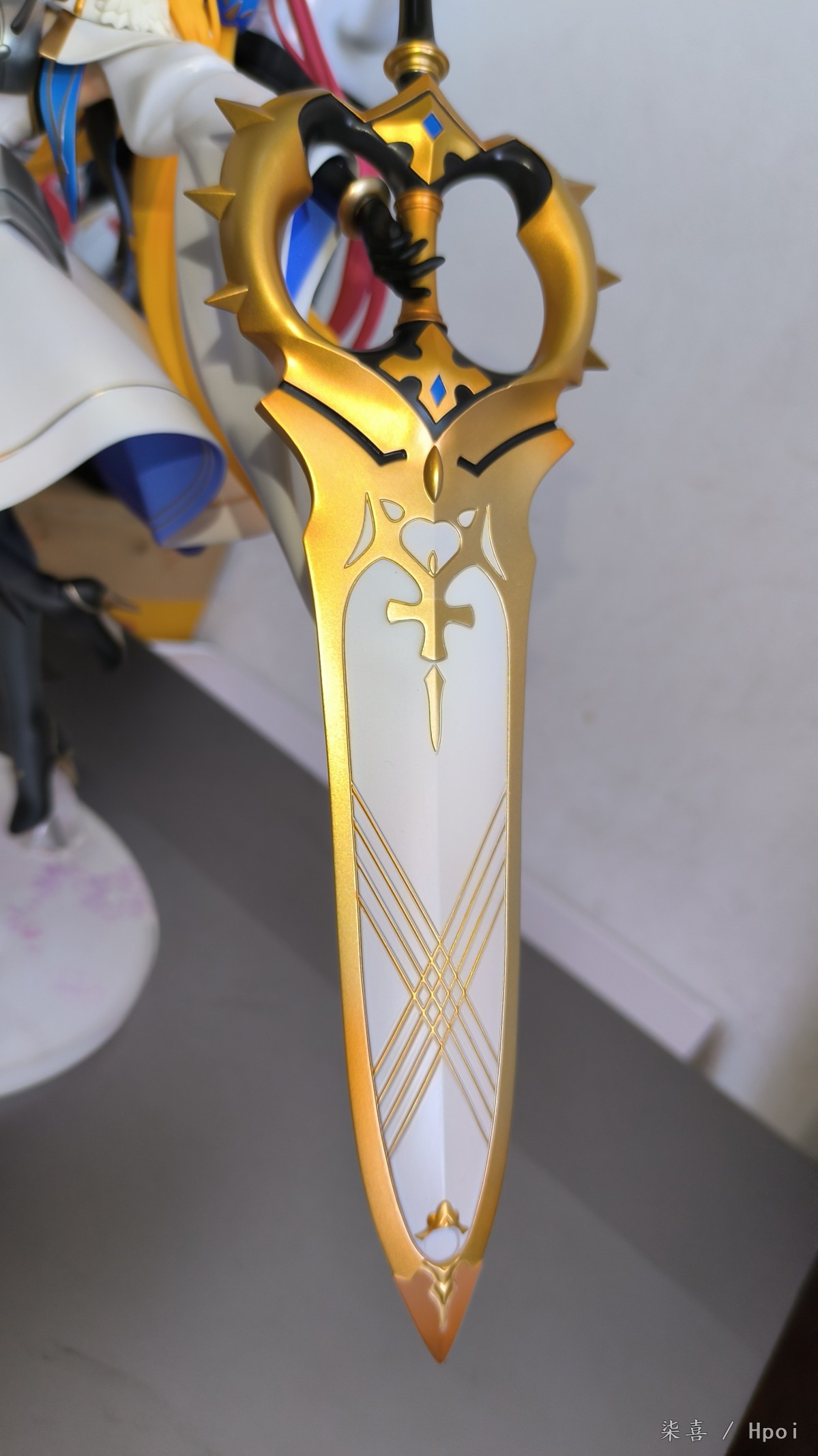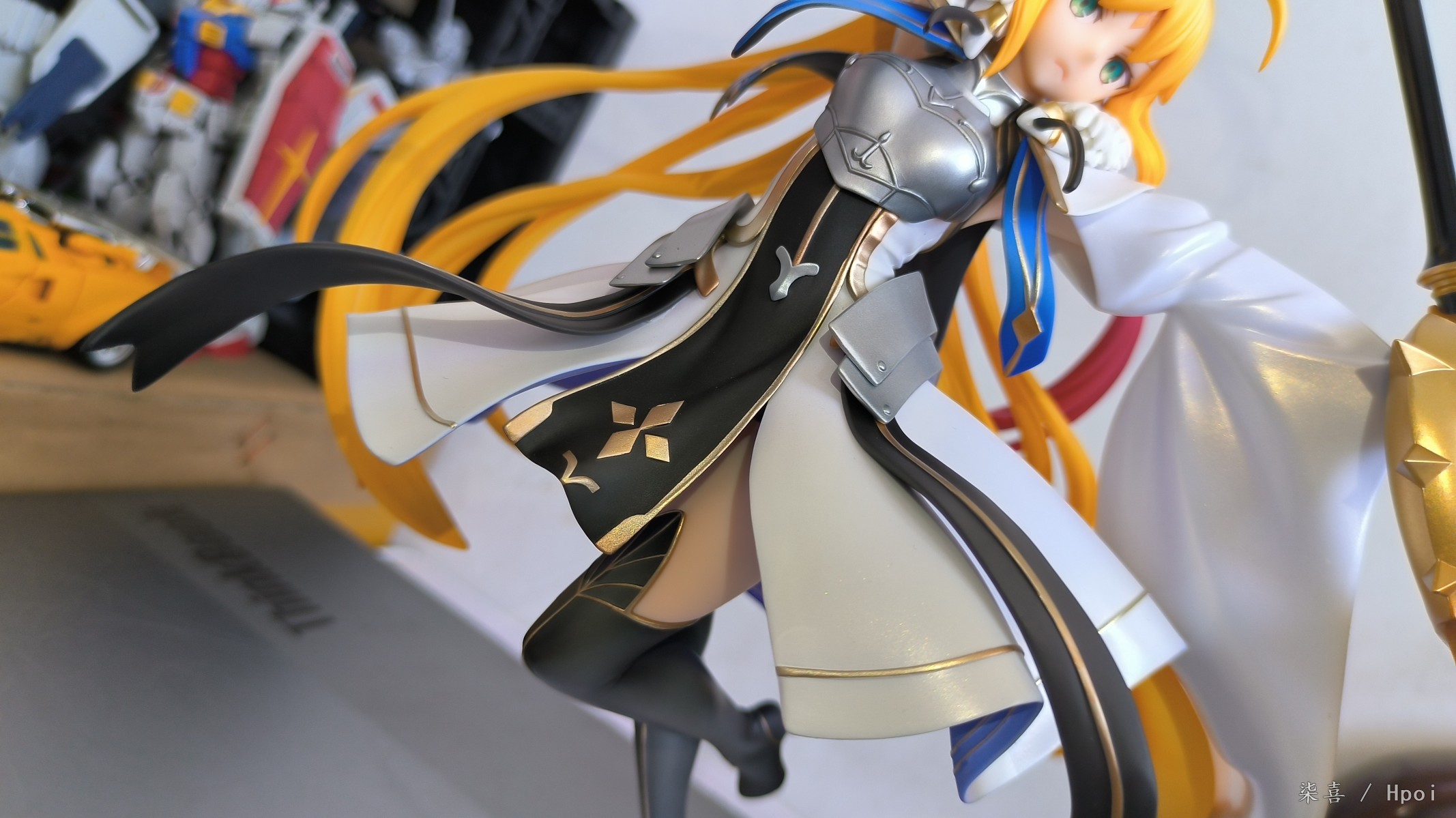 昨天晚上回去拆的光线不好拖到今天拍的,先说结论:总体比较满意。但是脚桩非常非常难插,开始插的时候顶的鞋底那一块都凸起来了,关键是插的时候不好受力,也可能是我手法越来越不行了ˊᵒ̴̶̷̤ꇴᵒ̴̶̷̤ˋ 。 左腿材质比右腿偏软,大腿露出部分不好界定,手感介于普通漆和大A强壮社那种手感漆之间,开盒有几处污渍还以为是发霉结果用克林擦蘸水擦掉了。其他面雕素质、涂装质量各方面总体来说还不错吧,握法杖的手暂时没发现有脱胶现象。本体插上脚桩会轻微向下,话说不带支撑是什么操作,时间久了必弯 ⁰̴̷̷ ˙̮ ⁰̴̷̷ 胸甲质感也还不错,圣剑法杖挺长一只~ 身边没尺子量就拿hg陆高来对比下身高吧