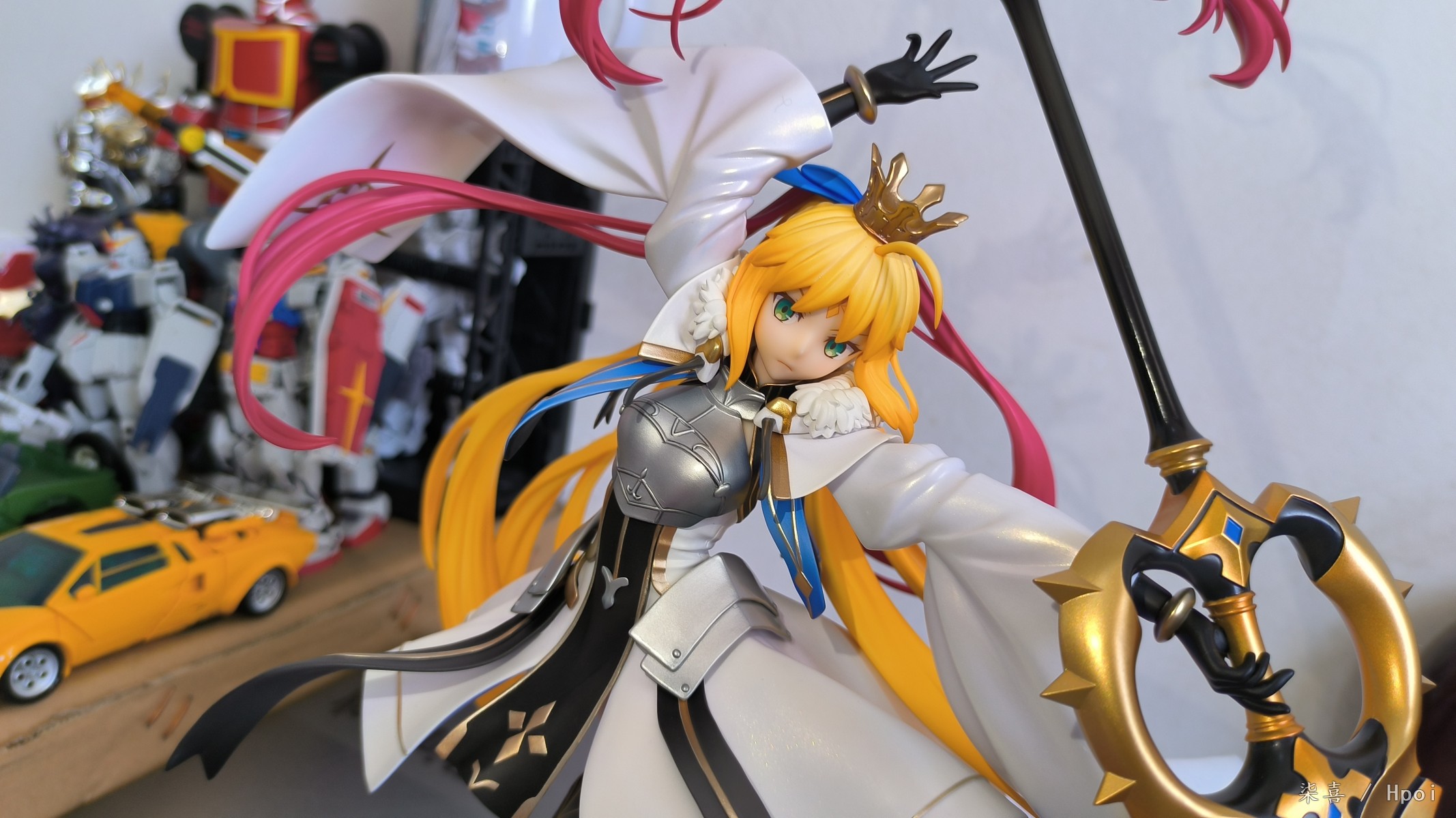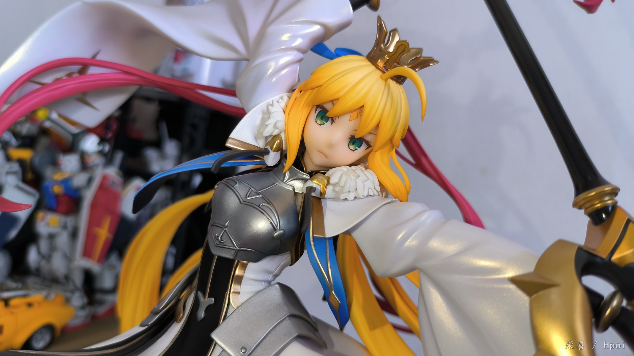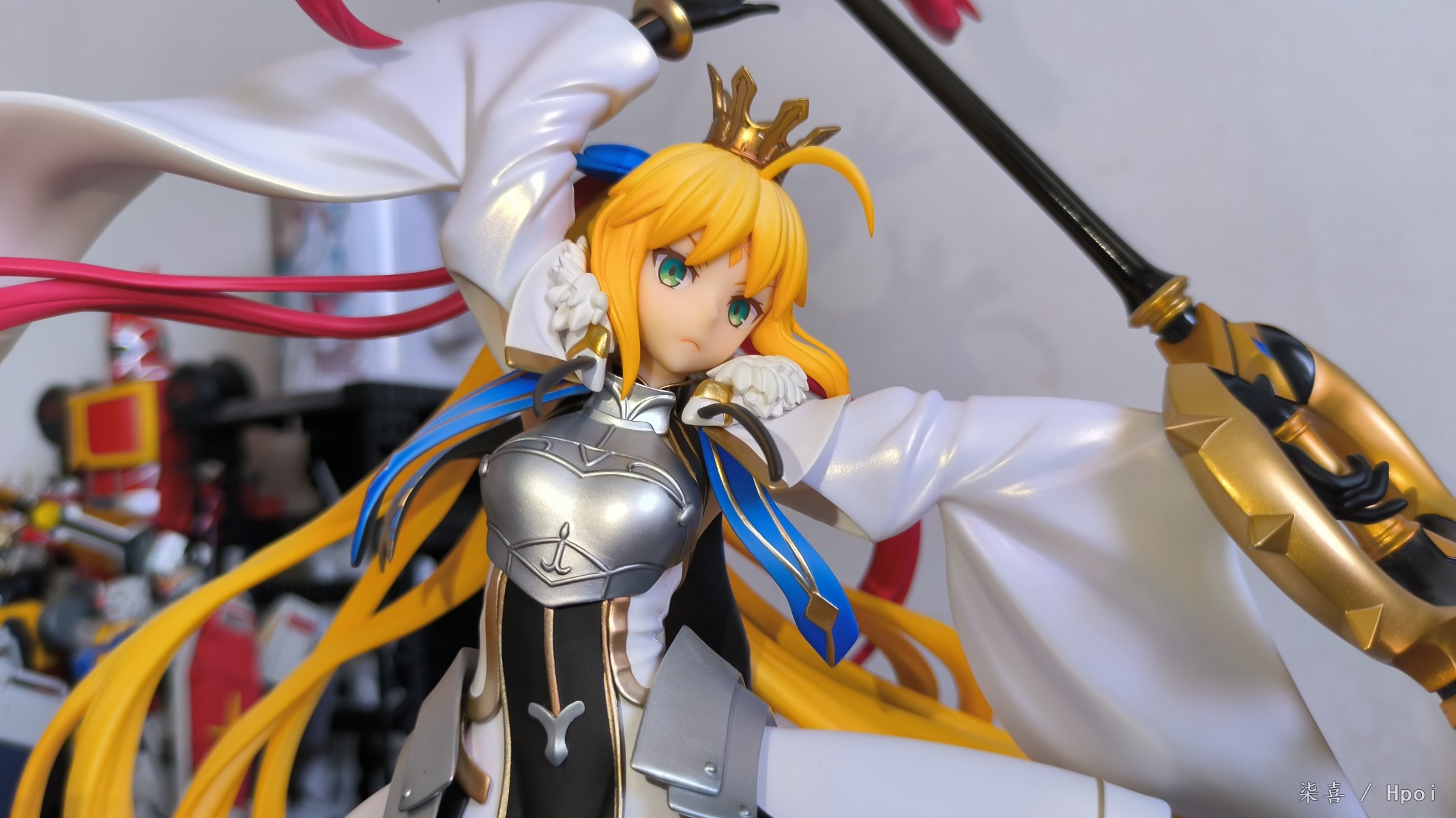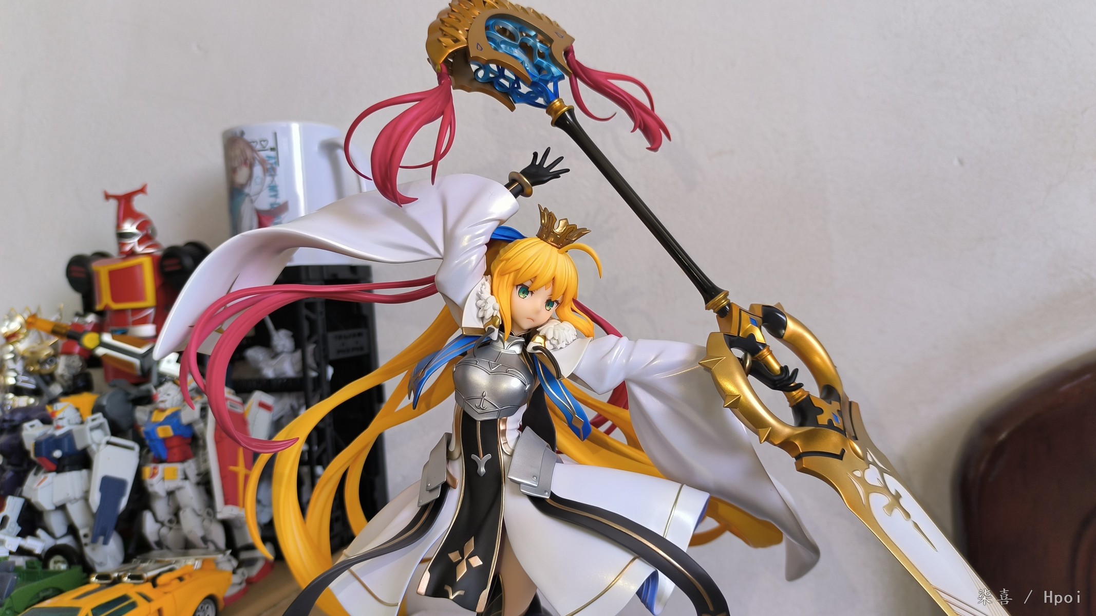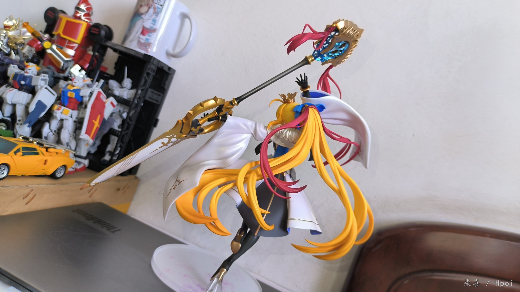 昨天晚上回去拆的光线不好拖到今天拍的,先说结论:总体比较满意。但是脚桩非常非常难插,开始插的时候顶的鞋底那一块都凸起来了,关键是插的时候不好受力,也可能是我手法越来越不行了ˊᵒ̴̶̷̤ꇴᵒ̴̶̷̤ˋ 。 左腿材质比右腿偏软,大腿露出部分不好界定,手感介于普通漆和大A强壮社那种手感漆之间,开盒有几处污渍还以为是发霉结果用克林擦蘸水擦掉了。其他面雕素质、涂装质量各方面总体来说还不错吧,握法杖的手暂时没发现有脱胶现象。本体插上脚桩会轻微向下,话说不带支撑是什么操作,时间久了必弯 ⁰̴̷̷ ˙̮ ⁰̴̷̷ 胸甲质感也还不错,圣剑法杖挺长一只~ 身边没尺子量就拿hg陆高来对比下身高吧