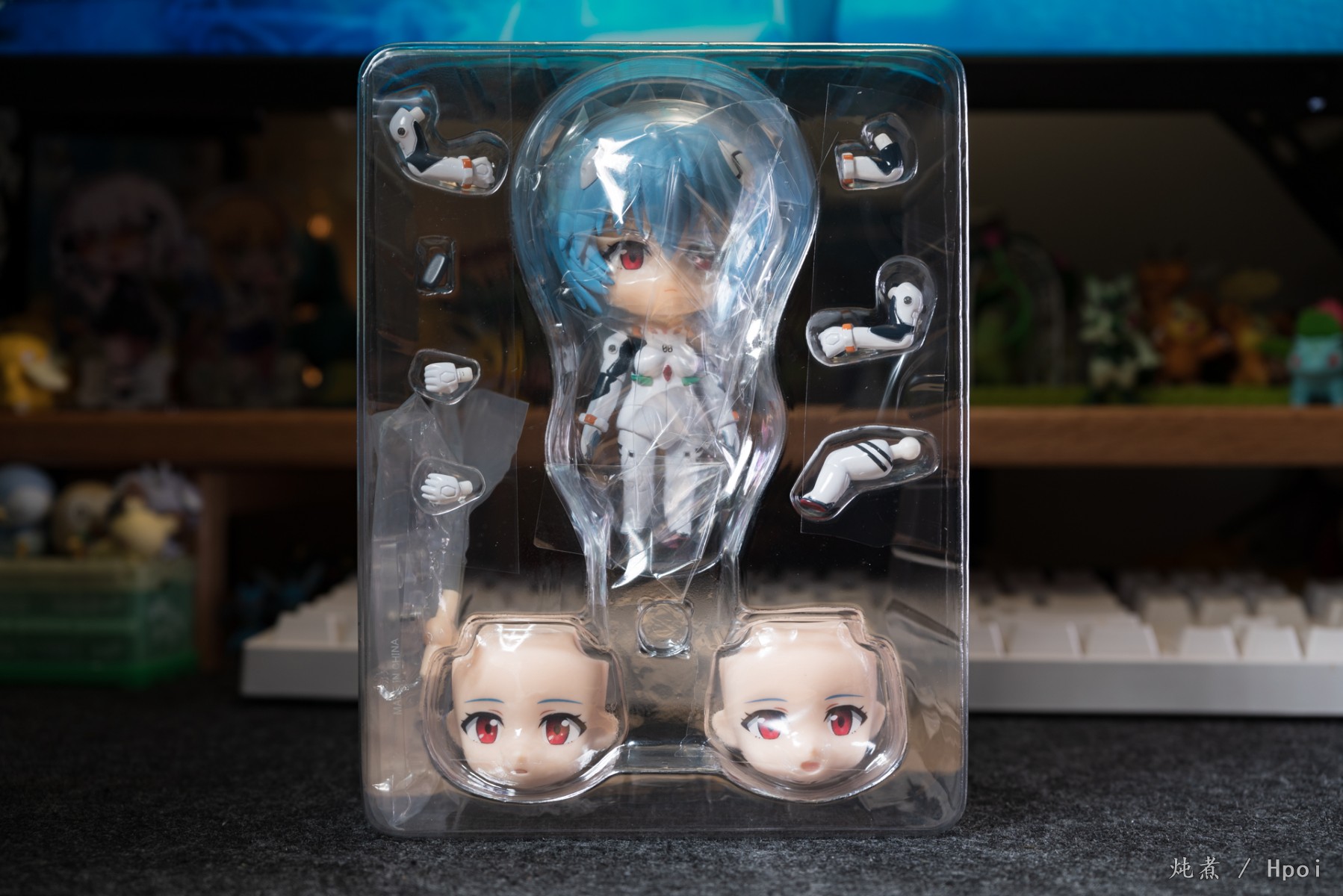 奸笑之前换包装的计划被劝退之后又整新活啦,这次用来包裹粘土人的大塑料纸和分隔头与身体的小塑料纸都变成了非常硬的新材料。底座虽然一如既往是用胶带粘在吸塑上的,但是贴的更潦草了,一度让人怀疑是回封盒(这点在外包装的封口贴上也有体现)。然后倒霉的是我这盒里面居然缺少了说明书,更过分的是两个弯曲的左右手臂上都装了左手掌。最后粘土人本身的素质来说都算中规中矩,绫波丽作为三无鼻祖,三张替换脸也跟前面几个一样区别不大。战斗服的亮面质感处理的是挺不错的,但是这个材料大概和平时的粘土人身体不太一样,各关节处的粘性非常强,第一次开盒或是长久没活动的情况下别太蛮干。