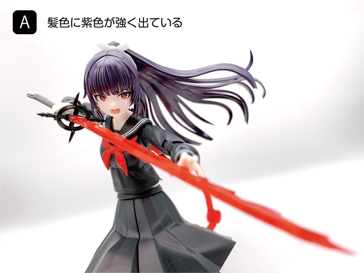 AはBに比べて髪色の紫味が強く出ています。