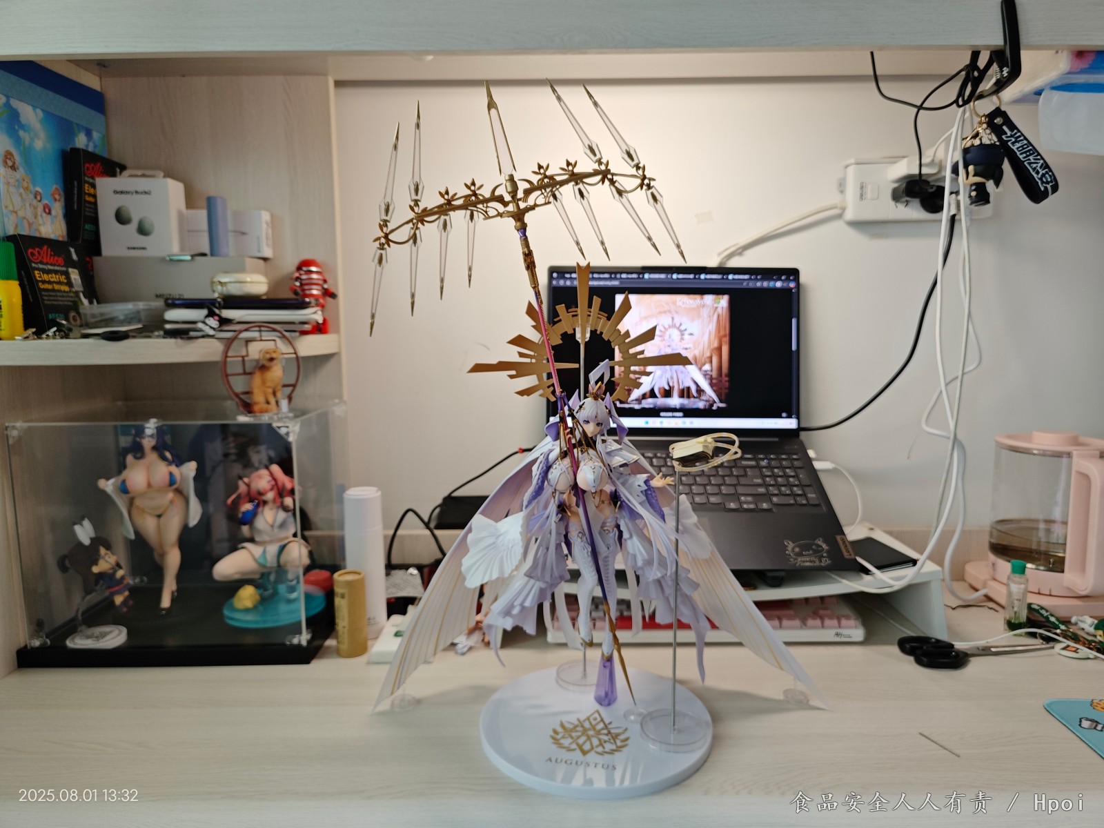 第一次买柜霸,没有漆面瑕疵,但是手位置不太对,吹了很久热风才把武器装上,武器支架起不到什么作用,完全是靠🐻和大腿夹持着。另外后面两个披风配的支架也起不到什么作用,太重了一压就溜😓