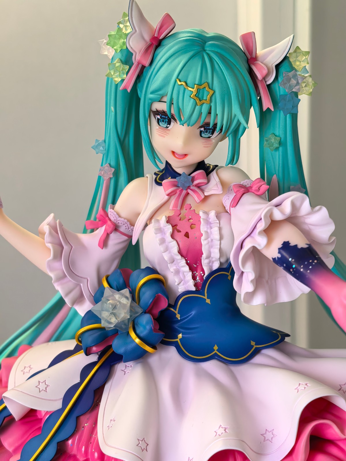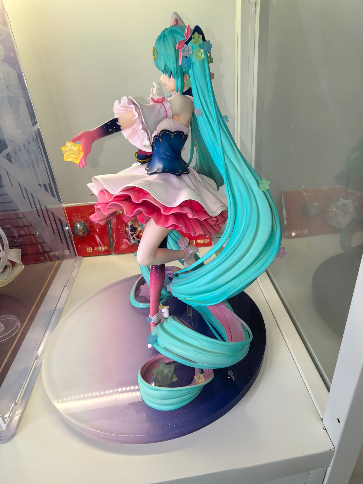 缺点:定价太高,1000出头的价格挺香,1400左右中规中矩,但定价1900就完全不值(对标隔壁gsc的🍓)。底座太大,虽然星空底座很好看,但是太大太占空间了。比较吃打光,没有打光左眼那一块太黑了。另外有点角度限定,吃观赏角度和拍摄角度。