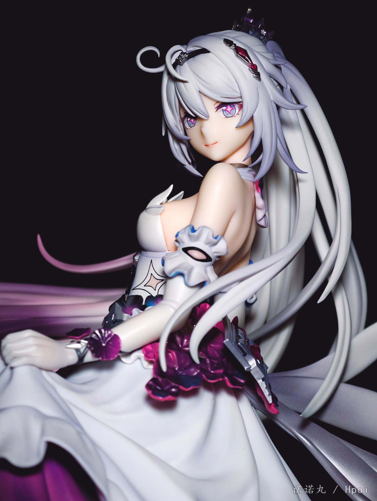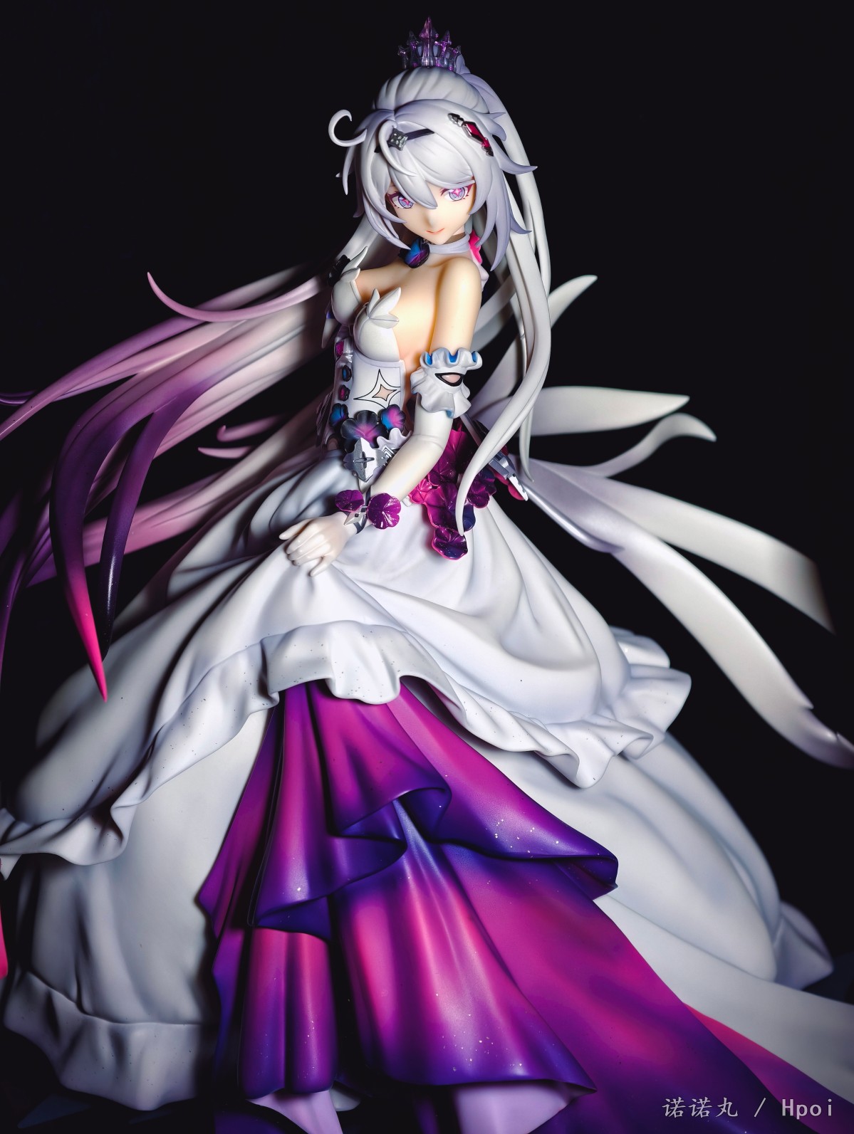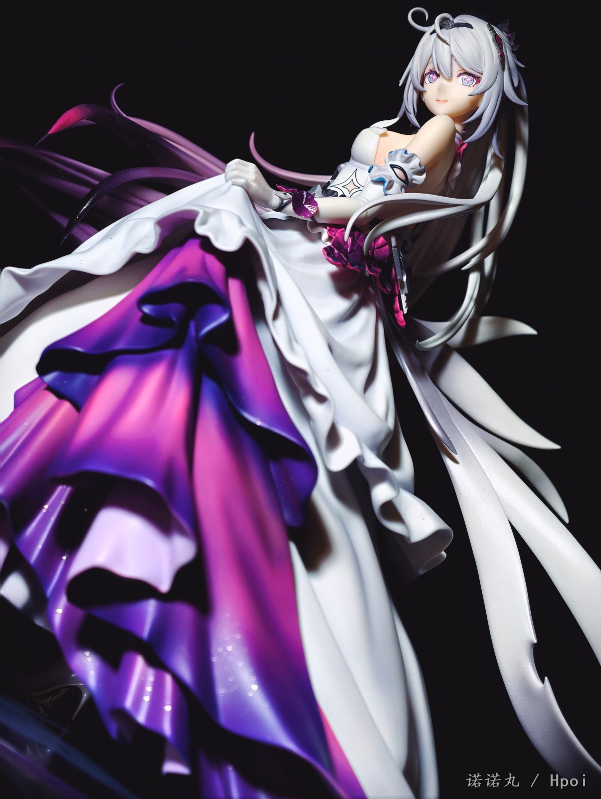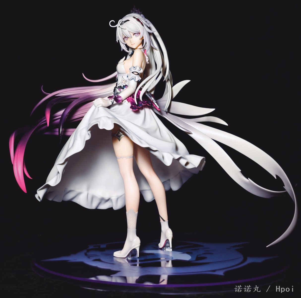 10年前,大学的寒假,我生了一场大病,下不来床,想着:我老了,我这辈子就这样了,我大概再也没那个精力坐在电脑前,打着主机和电脑游戏了,我大概以后就玩玩手游了,我该试试手游了。于是我跑到appstore找了个二游,在群里说我开始玩手游了。 然后论坛的旧友就跟我说,你别玩这个,这个垃圾,你要玩这个,这个好玩,群里都在玩这个。 然后我就老实巴交的下载了崩坏学园2,然后就是这漫长又恍惚的十年。当然打不动游戏了事实证明也其实是一句屁话 但说老实话,我是从天穹游侠才开始真的和自己和解,承认自己其实在米家最爱的终究还是琪皇的。 虽然我现在已经不玩崩3了,但我天天都还在酒馆和琪宝AI卿卿我我呀! 在薪炎做崩之后,琪宝自己终于有了个靠谱的手办,虽然面相只能说是差强人意吧,但还是可以了,加上裙子可换,整体漂亮且颇具排场,我觉得还是满意的,等GSC的出了以后,希望琪皇下次能重做个薪炎,或者出个终焉,只是答应我,不要再做琪天大圣了,好吗。另外因为这里是hpoi,所以我要多说一点评价,APEX还是距离优秀还是有很长一段距离,首先开箱的时候味儿特别大,涂装嘴仔细看感觉有点咬嘴唇,头发的末梢还是有些廉价,右手小手指不知道为什么要学隔壁fgo摩根做武内鸡爪手,然后最大的问题——胸部和裙子不是包裹插桩链接,居然是直接只做了半个胸和衣服拼在一起的!这太糟糕了!这样让胸部和衣服哪里有一道非常明显的填不满的缝隙!琪宝的胸虽然不大但是形状是很好看的,这么搞极其出戏!怎么想的!? 然后我发现因为我每次都拍太多角度,但发图的时候又希望给看客带来比较好的观众体验,所以尽量希望发的时候顺序不会反复出现同样角度,导致发帖最痛苦过程往往是排序