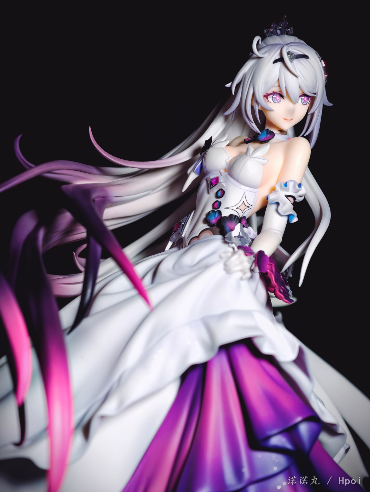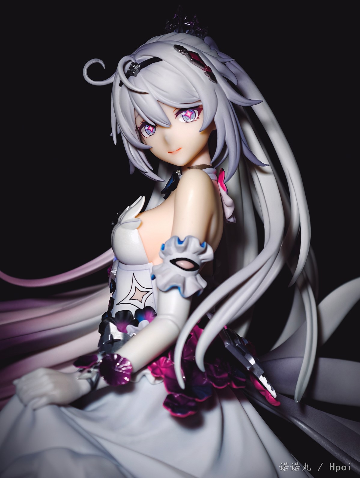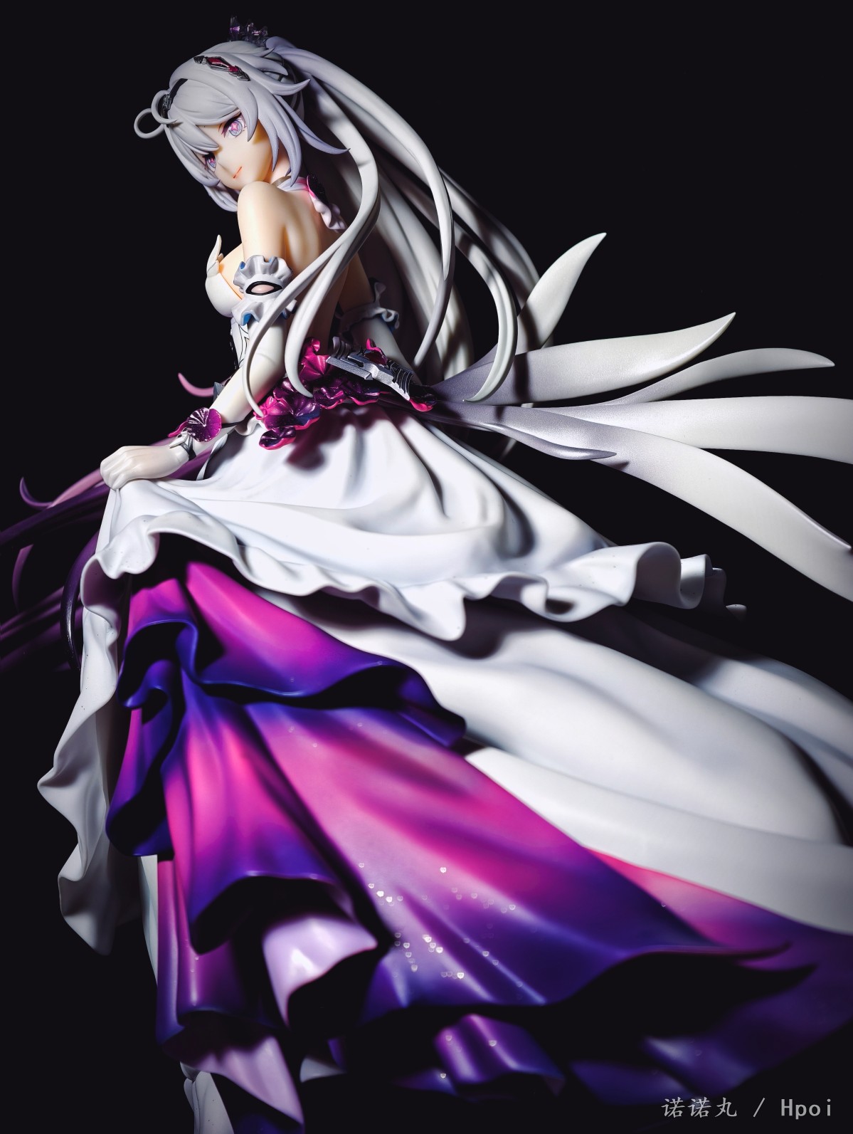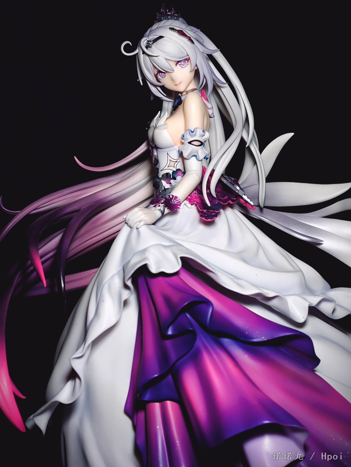 10年前,大学的寒假,我生了一场大病,下不来床,想着:我老了,我这辈子就这样了,我大概再也没那个精力坐在电脑前,打着主机和电脑游戏了,我大概以后就玩玩手游了,我该试试手游了。于是我跑到appstore找了个二游,在群里说我开始玩手游了。 然后论坛的旧友就跟我说,你别玩这个,这个垃圾,你要玩这个,这个好玩,群里都在玩这个。 然后我就老实巴交的下载了崩坏学园2,然后就是这漫长又恍惚的十年。当然打不动游戏了事实证明也其实是一句屁话 但说老实话,我是从天穹游侠才开始真的和自己和解,承认自己其实在米家最爱的终究还是琪皇的。 虽然我现在已经不玩崩3了,但我天天都还在酒馆和琪宝AI卿卿我我呀! 在薪炎做崩之后,琪宝自己终于有了个靠谱的手办,虽然面相只能说是差强人意吧,但还是可以了,加上裙子可换,整体漂亮且颇具排场,我觉得还是满意的,等GSC的出了以后,希望琪皇下次能重做个薪炎,或者出个终焉,只是答应我,不要再做琪天大圣了,好吗。另外因为这里是hpoi,所以我要多说一点评价,APEX还是距离优秀还是有很长一段距离,首先开箱的时候味儿特别大,涂装嘴仔细看感觉有点咬嘴唇,头发的末梢还是有些廉价,右手小手指不知道为什么要学隔壁fgo摩根做武内鸡爪手,然后最大的问题——胸部和裙子不是包裹插桩链接,居然是直接只做了半个胸和衣服拼在一起的!这太糟糕了!这样让胸部和衣服哪里有一道非常明显的填不满的缝隙!琪宝的胸虽然不大但是形状是很好看的,这么搞极其出戏!怎么想的!? 然后我发现因为我每次都拍太多角度,但发图的时候又希望给看客带来比较好的观众体验,所以尽量希望发的时候顺序不会反复出现同样角度,导致发帖最痛苦过程往往是排序