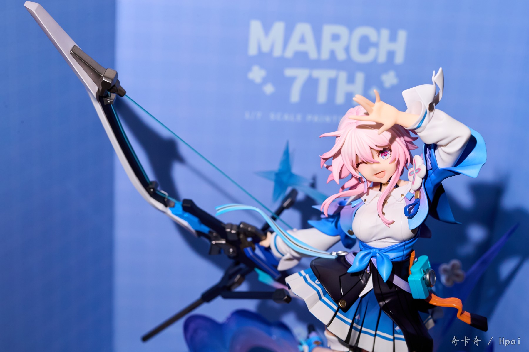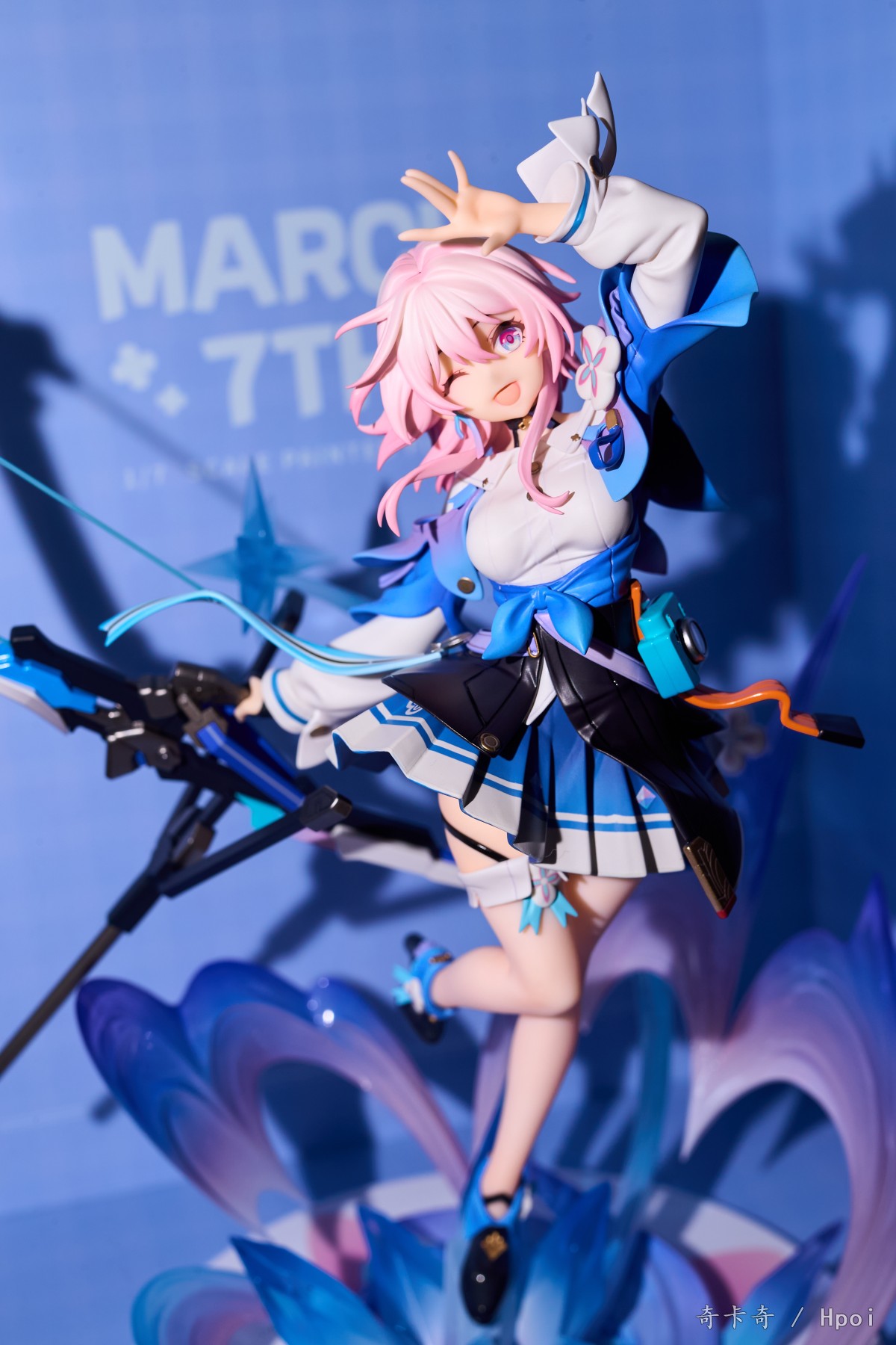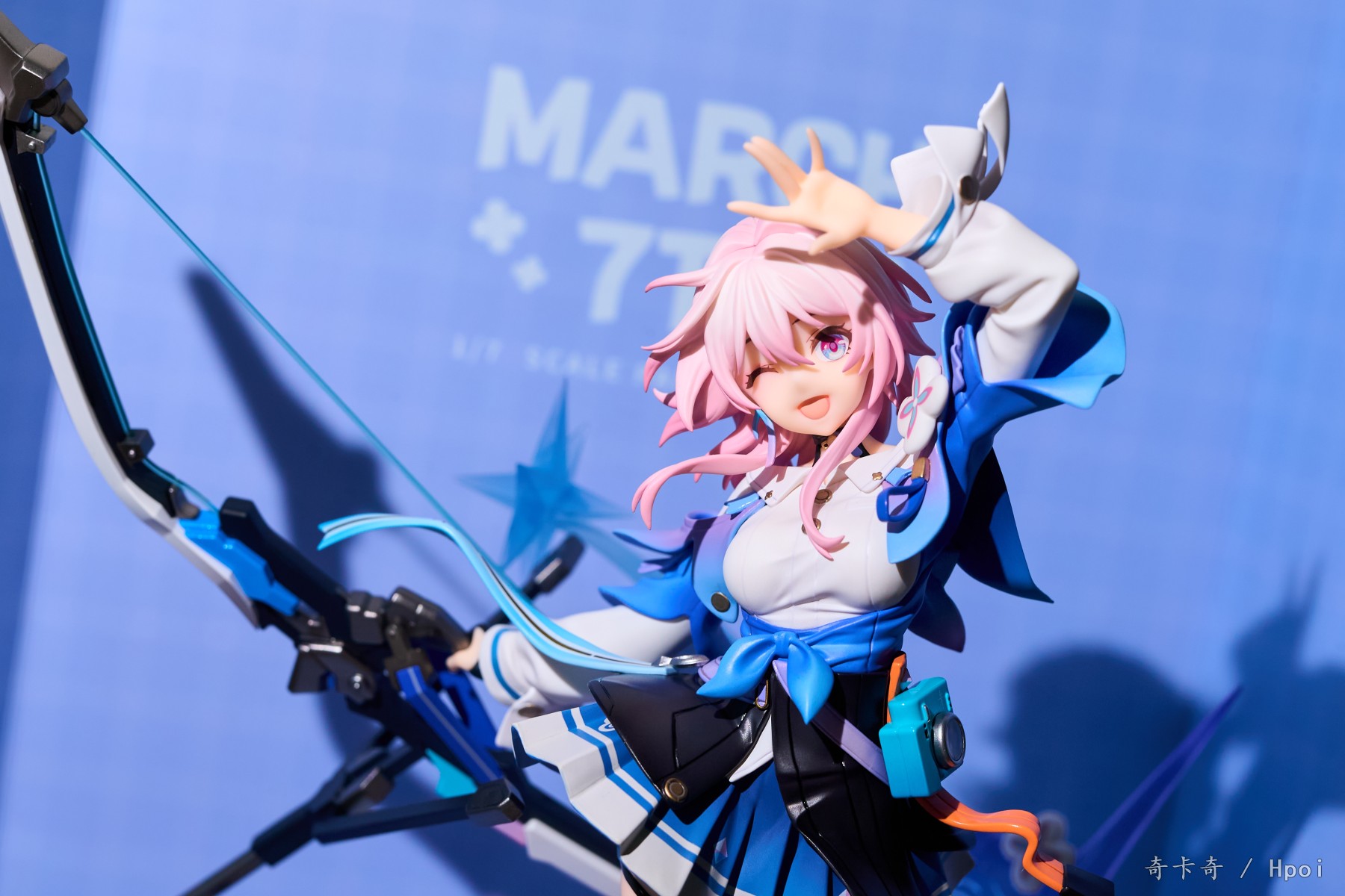 造型不错的,对比立绘来说很还原,为了方便做手办把姿势扭平了,特效件也安排上了,还有替换手,弓也是有单独包装的,大 a 你明知道一堆飘带很容易断的为啥不单盒子个包起来再发啊啊啊